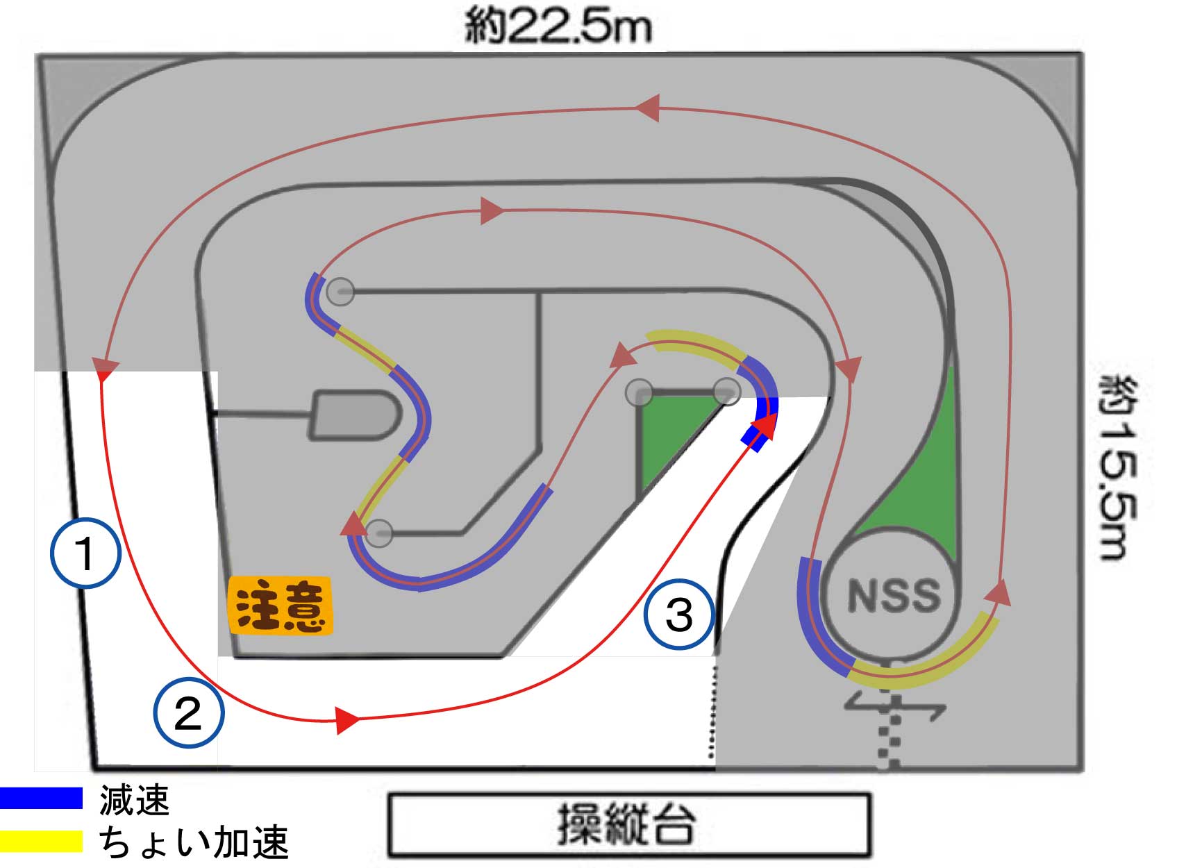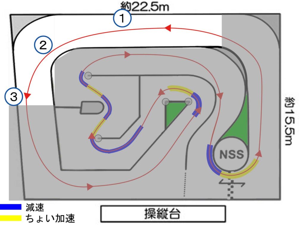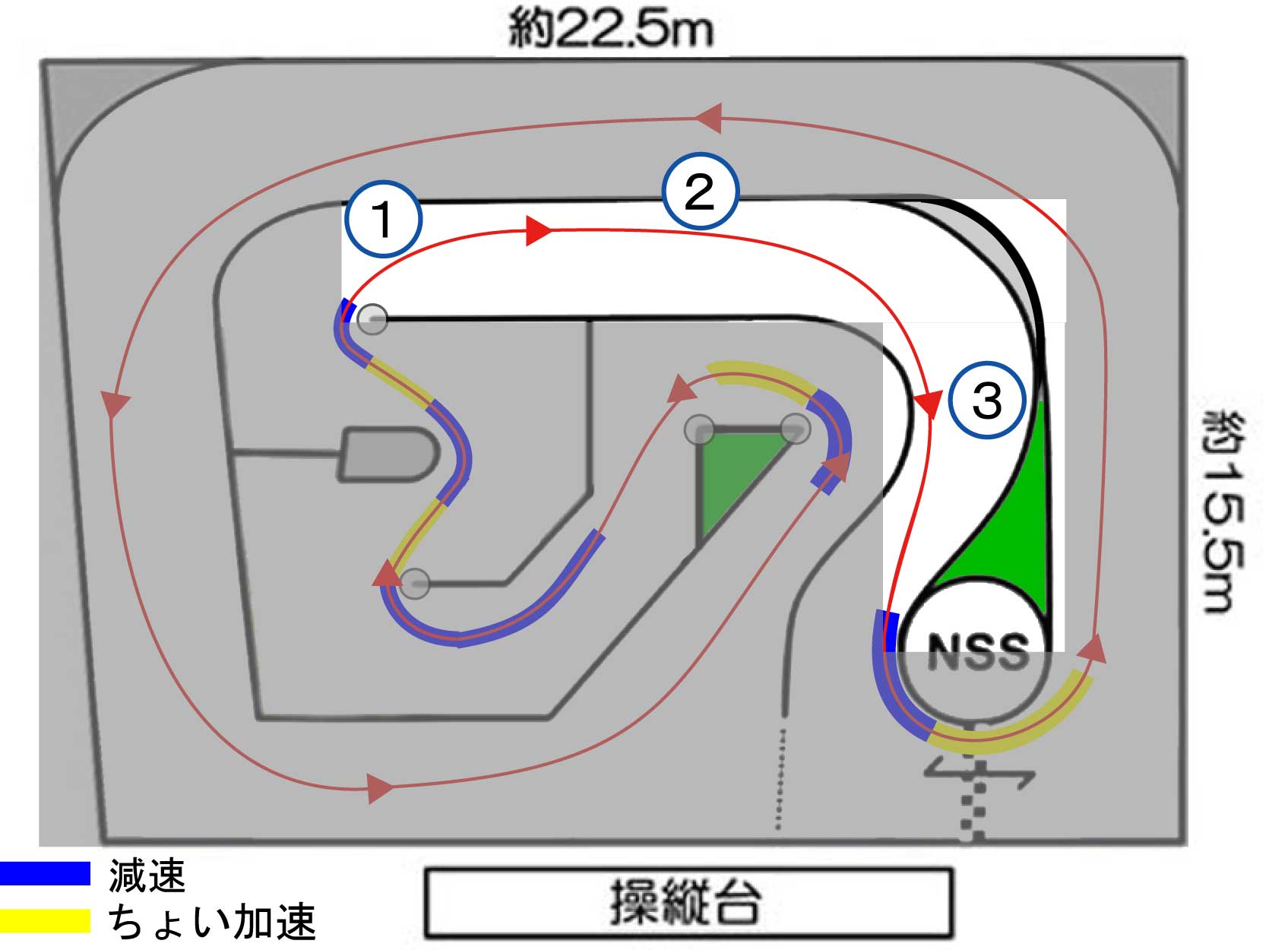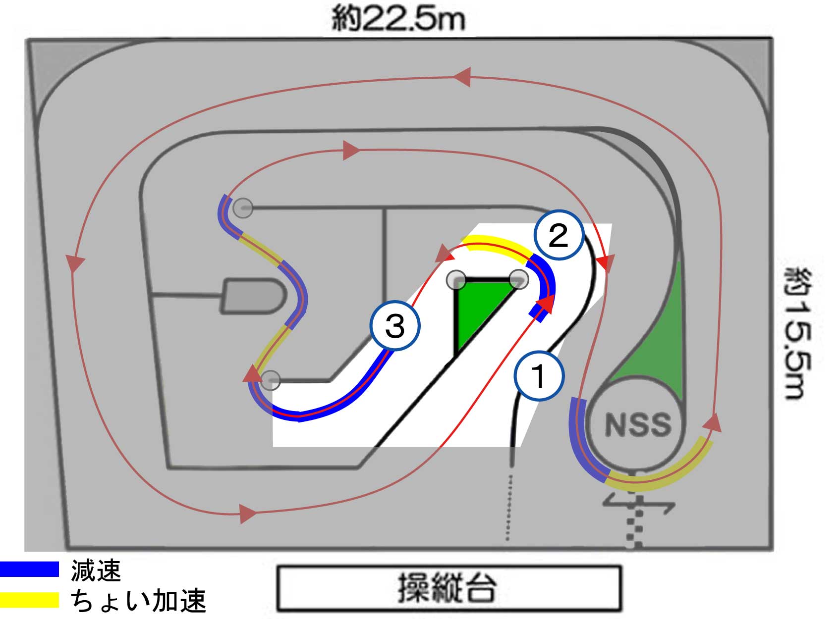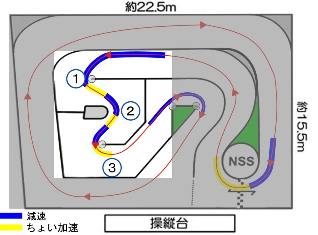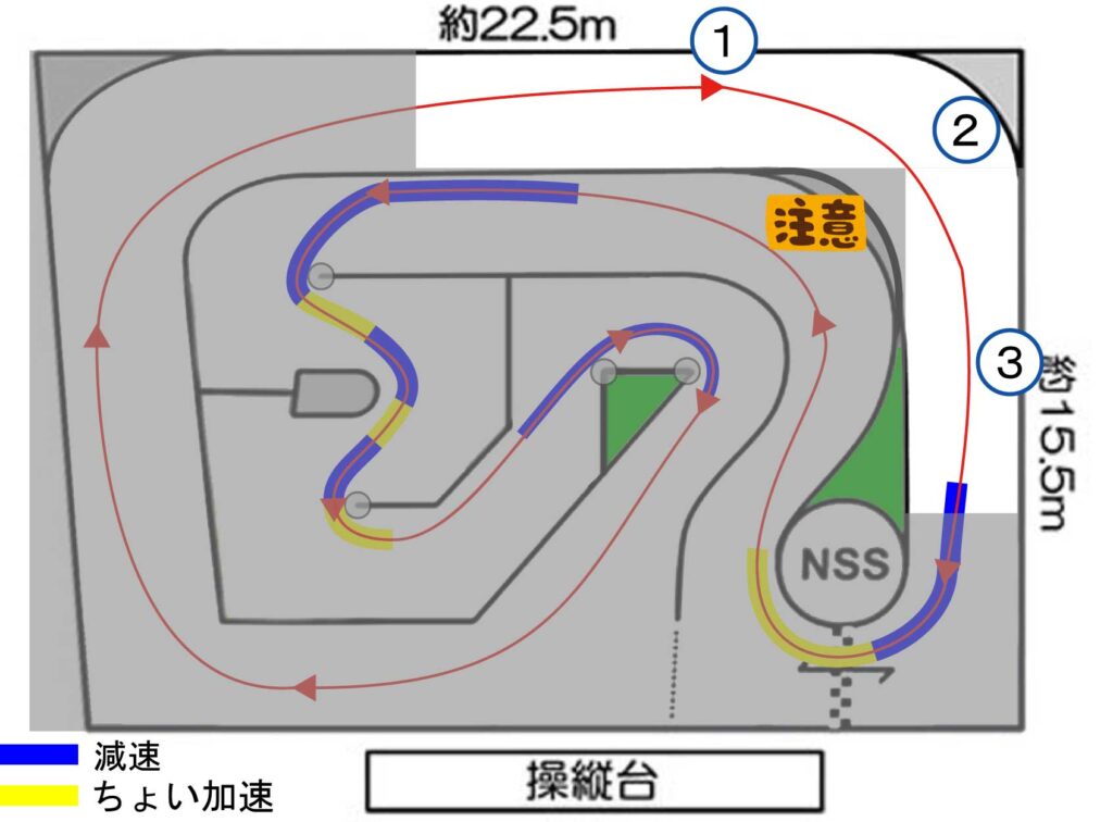 ①NSSコーナーの立ち上がりから右側に寄せる。