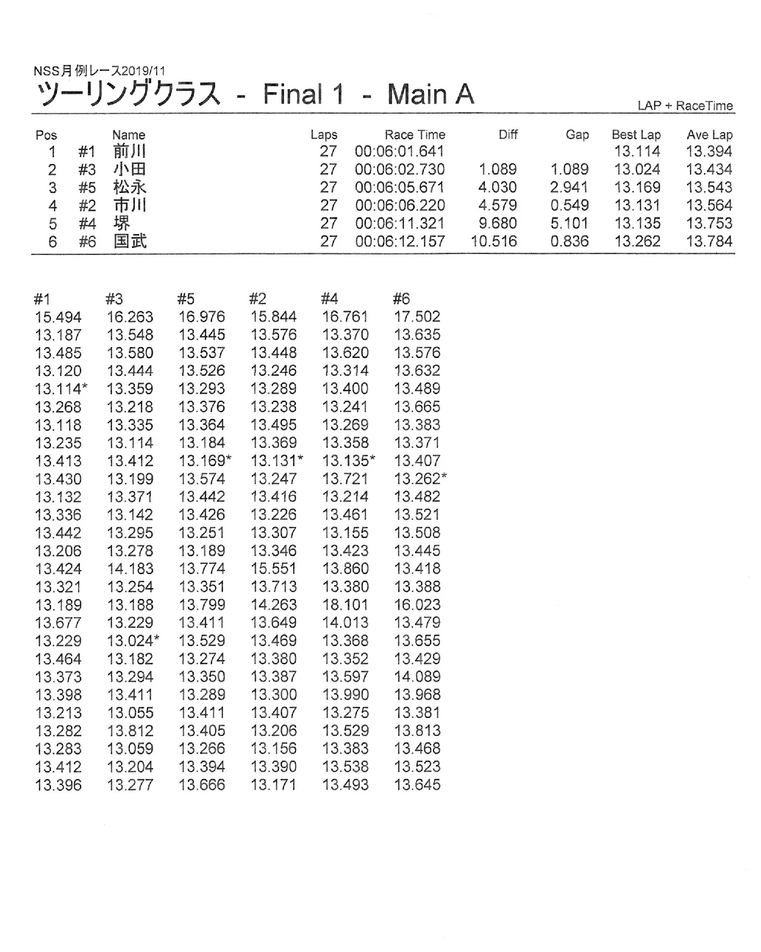 11月の月例レースの結果 更新日:2019年12月30日 公開日:2019年11月10日 レース結果 ミニクラス F-1クラス ツーリングクラス 関連記事 月例レース結果 ・動画 2024/06/021月・月例レース結果1月・月例レース結果&動画1月・月例レース結果・動画11月・月例レース結果&動画5月・月例レース結果&動画 投稿ナビゲーション 12月の月例レースの結果
