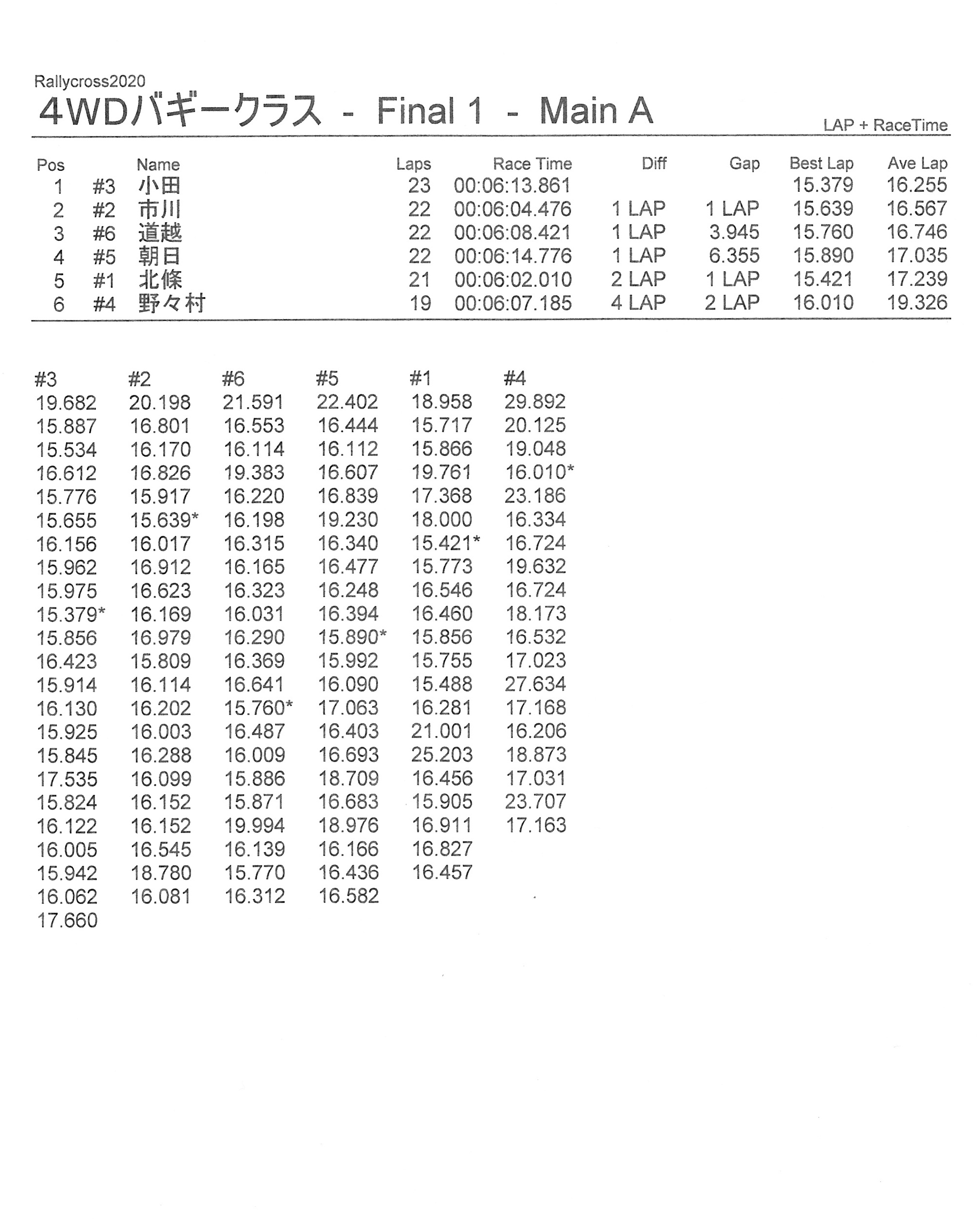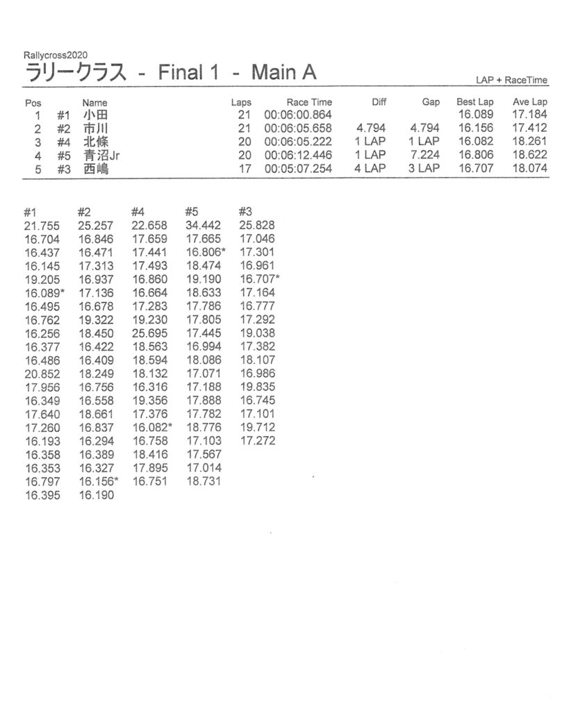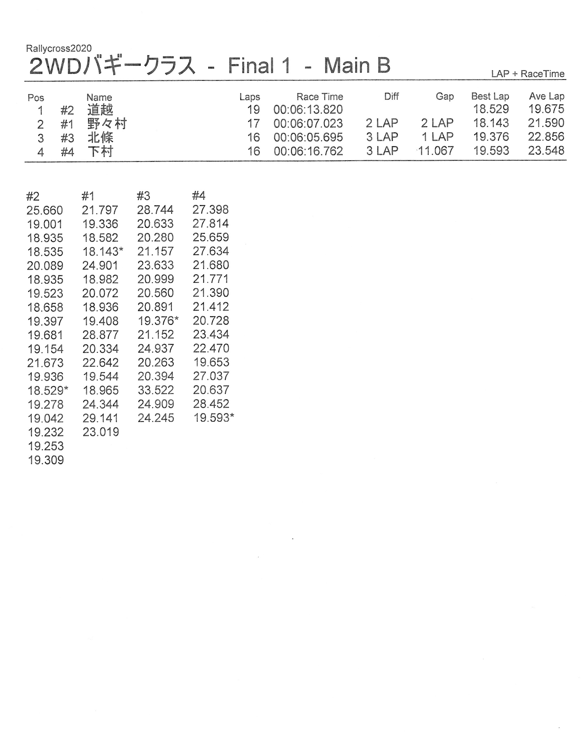 ラリークロス結果・動画 公開日:2020年3月29日 レース結果 ラリークラスBメイン ラリークラスAメイン 2WDバギークラスBメイン 2WDバギークラスAメイン 4WDバギークラスAメイン モンスタークラスAメイン おまけ(予選リザルト) ラリークラス 2WDバギークラス 4WDバギークラス モンスタークラス 関連記事 ラリークロスレース結果&動画 2022/2/272月・月例レース結果・動画9月の月例レース結果&動画12月・月例レース結果&動画10月・月例レース結果&動画9月・月例レース結果 投稿ナビゲーション 3月の月例レース結果・動画2020/3/154月の月例レース結果・動画 2020/4/26