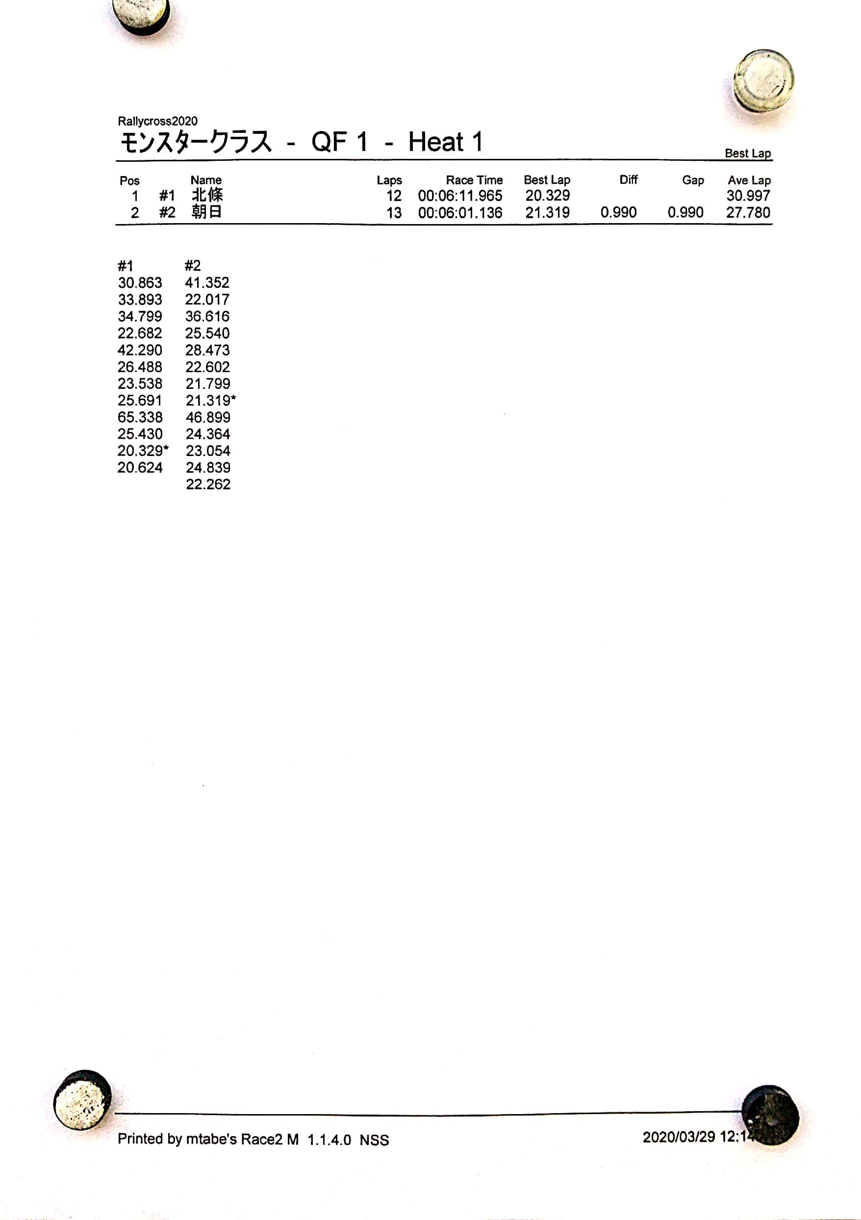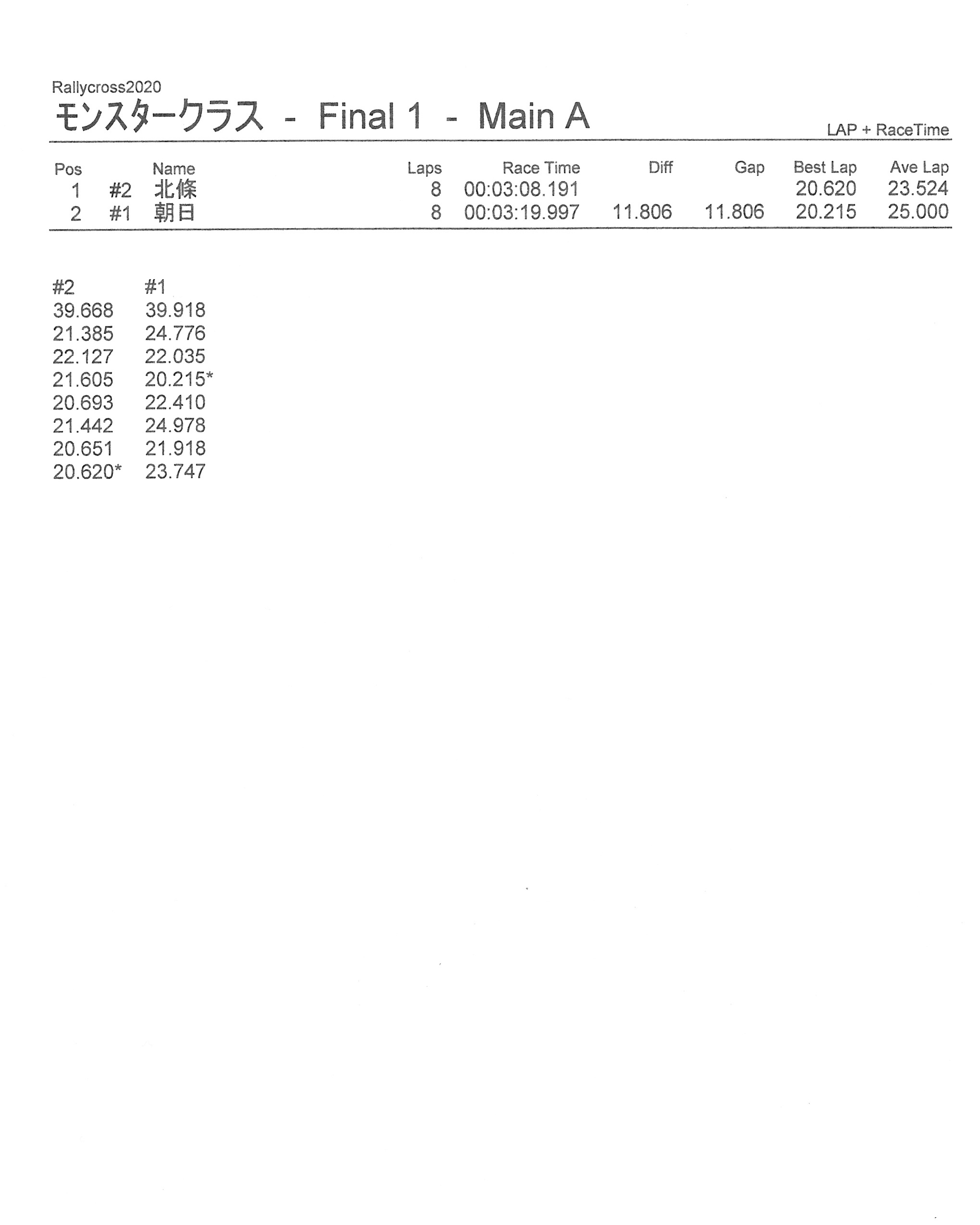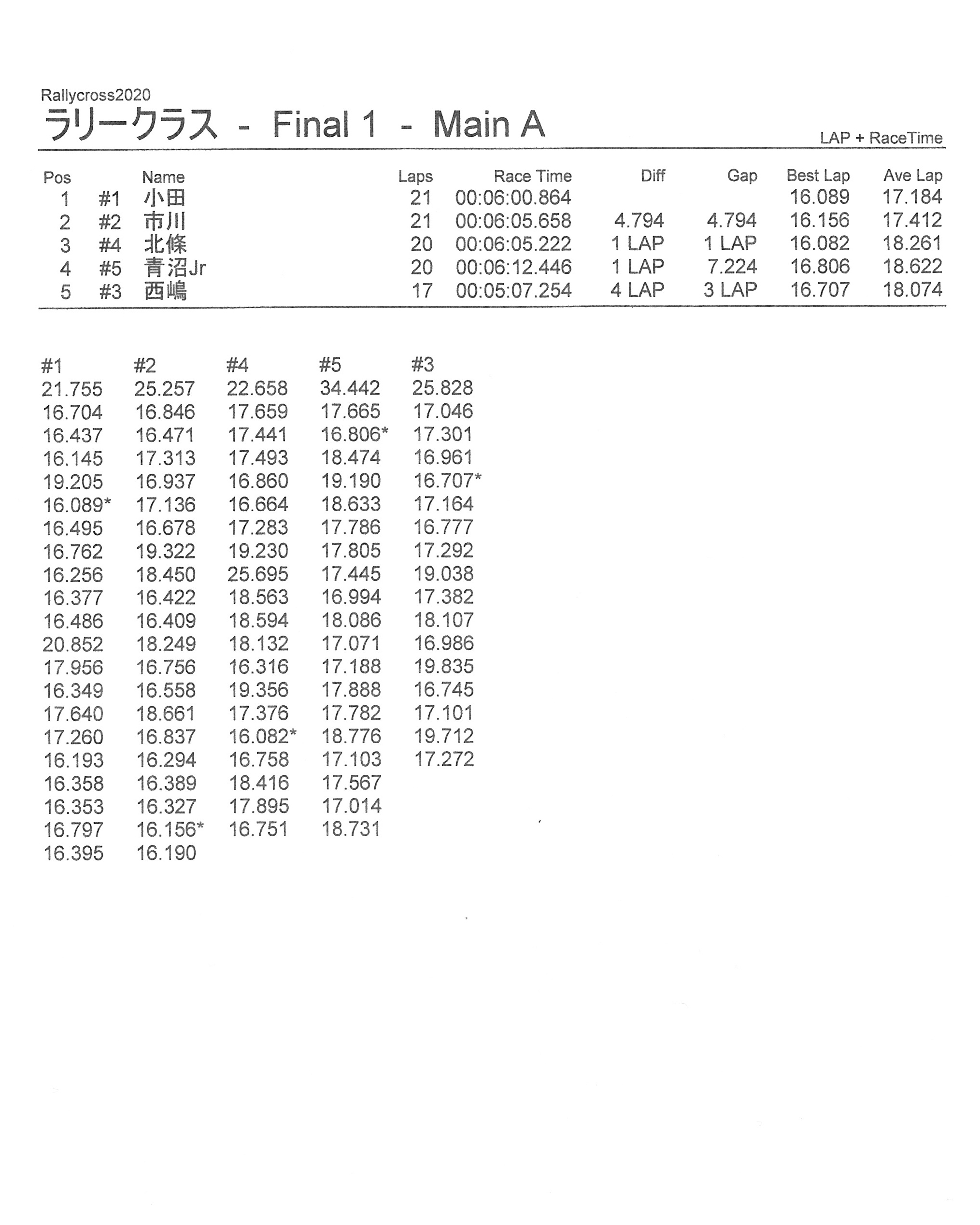 ラリークロス結果・動画 公開日:2020年3月29日 レース結果 ラリークラスBメイン ラリークラスAメイン 2WDバギークラスBメイン 2WDバギークラスAメイン 4WDバギークラスAメイン モンスタークラスAメイン おまけ(予選リザルト) ラリークラス 2WDバギークラス 4WDバギークラス モンスタークラス 関連記事 ラリークロスレース結果&動画 2022/2/272月・月例レース結果・動画9月の月例レース結果&動画12月・月例レース結果&動画10月・月例レース結果&動画9月・月例レース結果 投稿ナビゲーション 3月の月例レース結果・動画2020/3/154月の月例レース結果・動画 2020/4/26