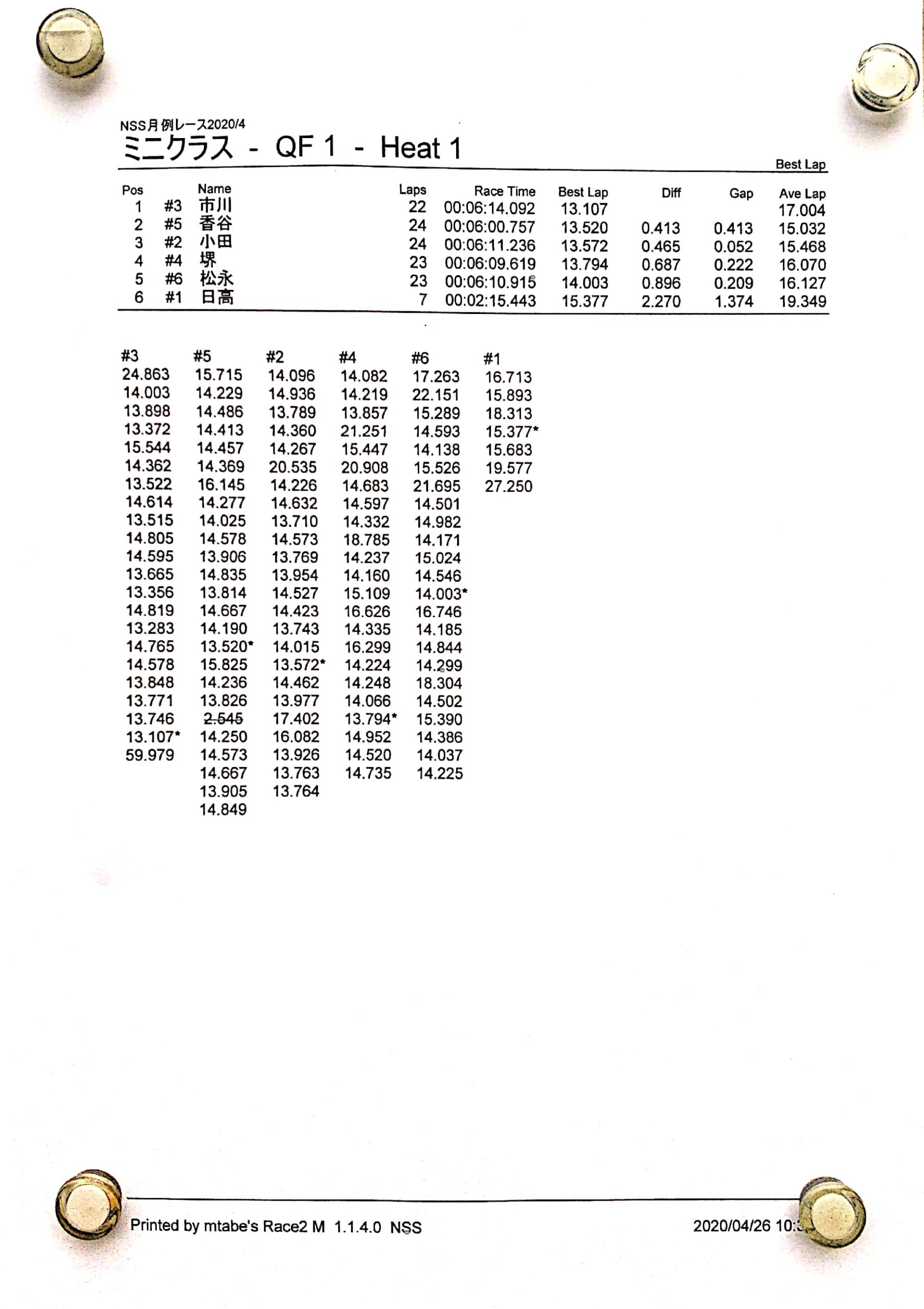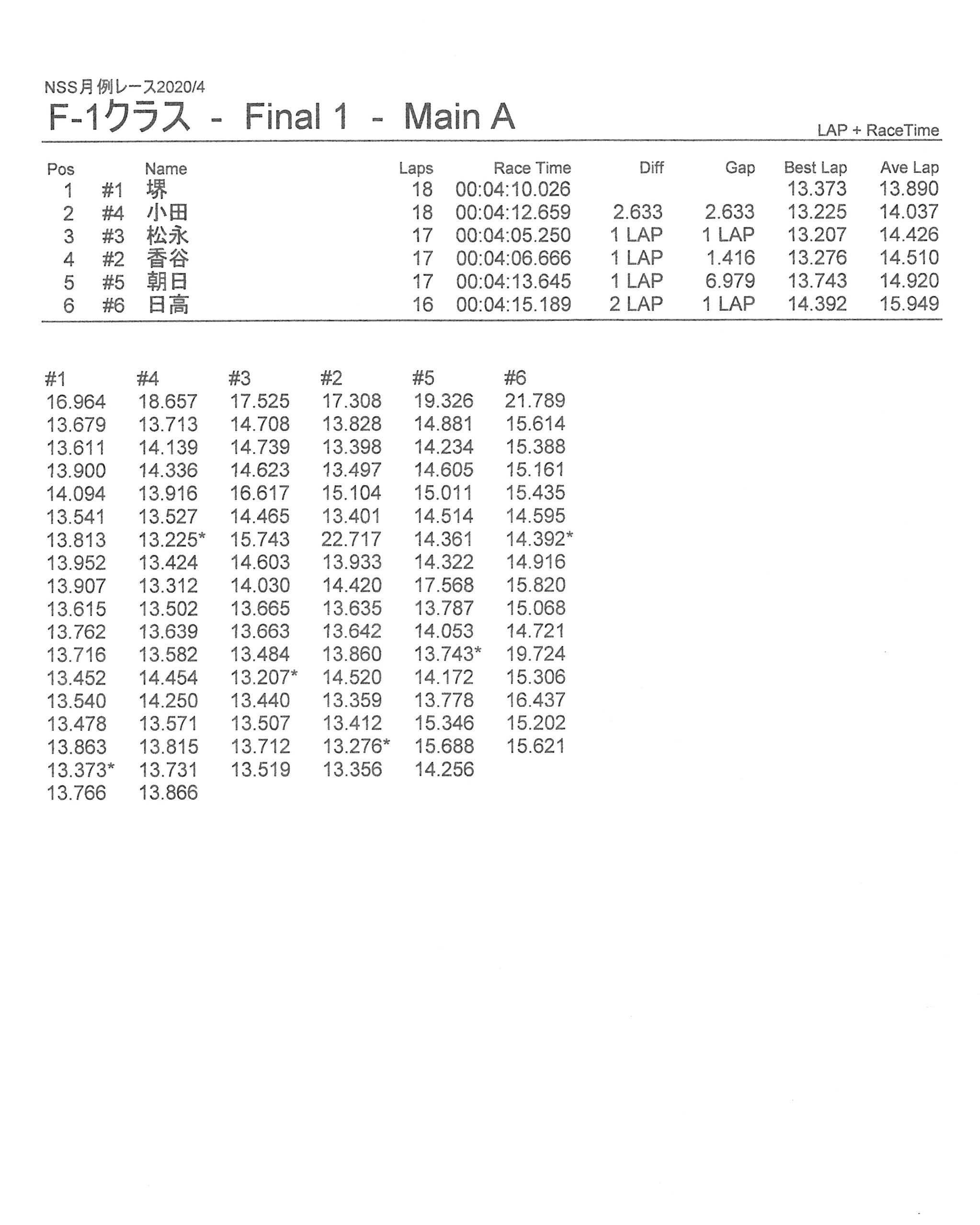 4月の月例レース結果・動画 2020/4/26 公開日:2020年4月26日 レース画像レース結果 ミニクラスAメイン F-1クラスAメイン ツーリングクラスAメイン おまけ(予選リザルト) ミニクラス F-1クラス ツーリングクラス 関連記事 フォーミュラ・グランプリ 結果&動画ラリークロスレース画像月例レース結果 ・動画 2024/06/025月・月例レース結果&動画月例レース結果 ・動画 2024/04/14ラリークロス結果 2025.04.29 投稿ナビゲーション ラリークロス結果・動画2020年5月ミニ3時間耐久レース結果