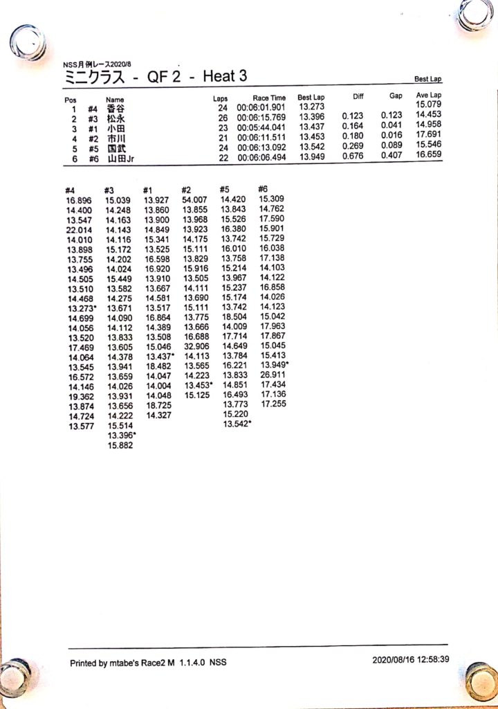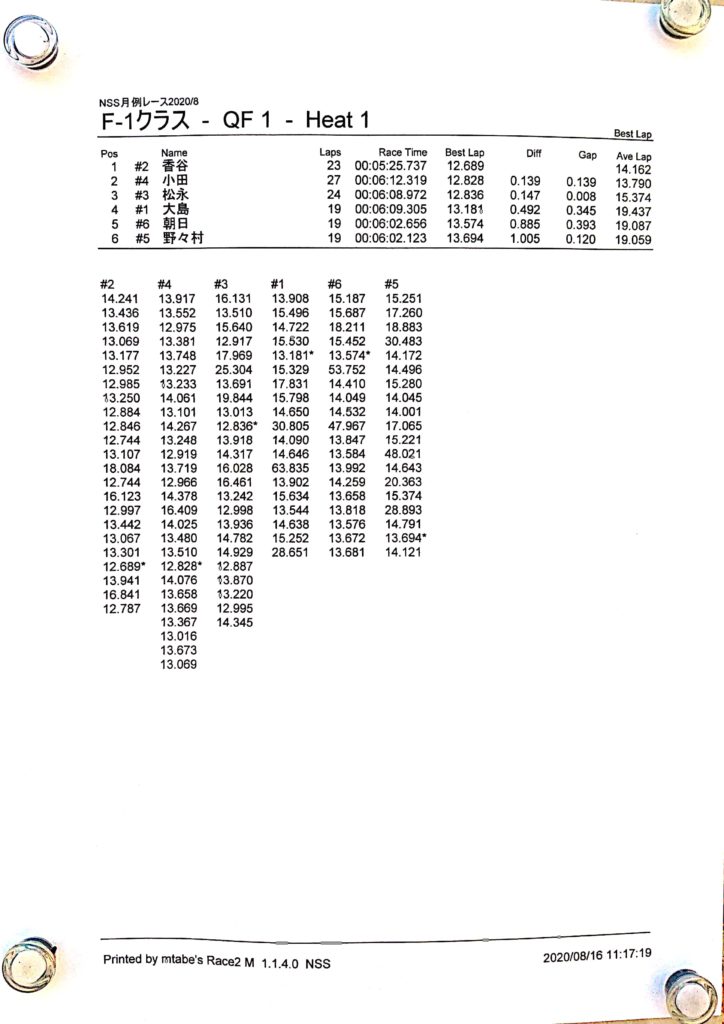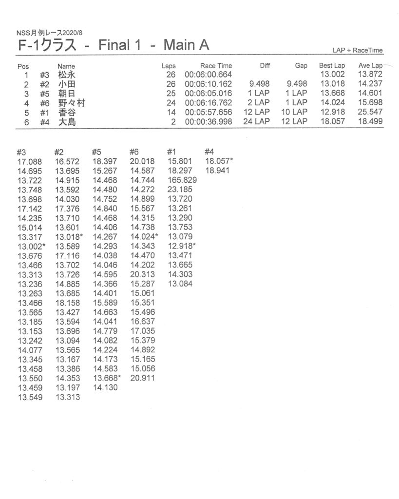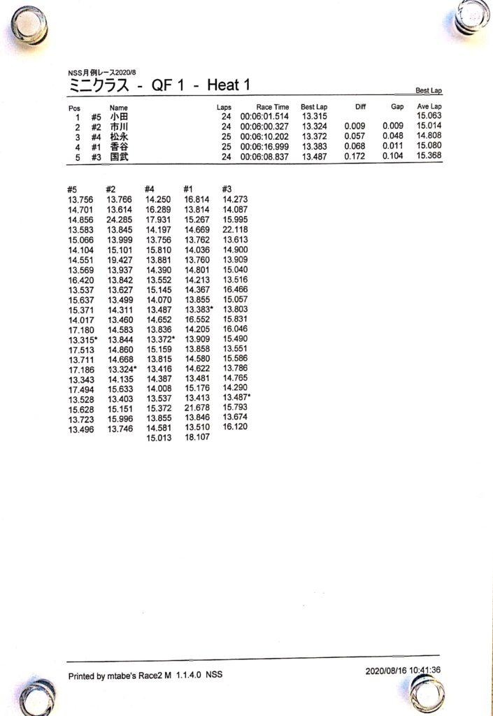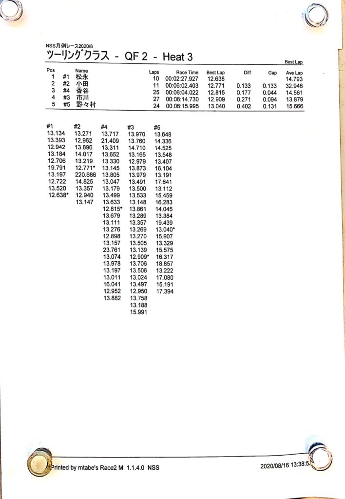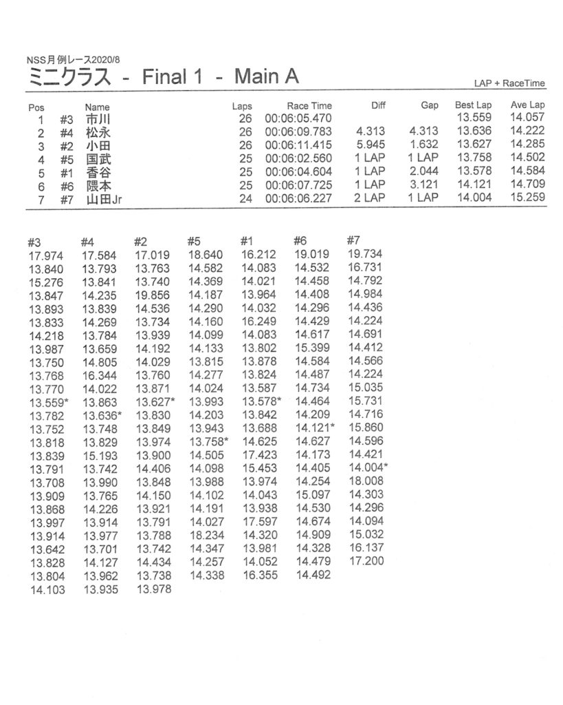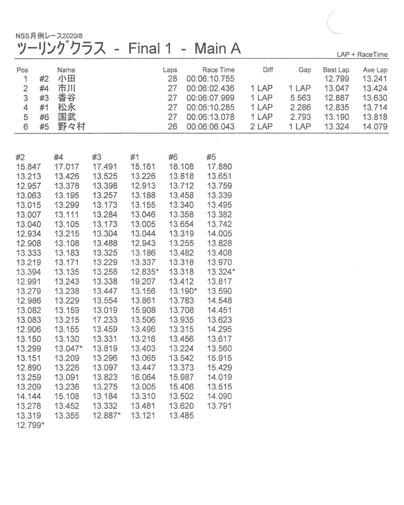 8月の月例レース結果&動画 更新日:2020年8月17日 公開日:2020年8月16日 レース結果 ミニクラスCメイン決勝 ビデオカメラ故障により前半のみ収録 ミニクラスBメイン決勝 ビデオカメラ故障により、スマホで撮影 ミニクラスAメイン決勝 F-1クラスAメイン決勝 ツーリングクラスCメイン決勝 ビデオカメラ故障により前半のみ収録 ツーリングクラスBメイン決勝 ツーリングクラスAメイン決勝 おまけ(予選リザルト) ミニクラス F-1クラス ツーリングクラス 関連記事 ラリークロスレース結果&動画2021/1月例レース結果・動画 2025/02/099月・月例レース結果ラリークロス結果&動画-2024-07-2811月の月例レースの結果ラリークロス結果&動画-2024-11-24 投稿ナビゲーション 7月の月例レース結果・動画9月の月例レース結果&動画