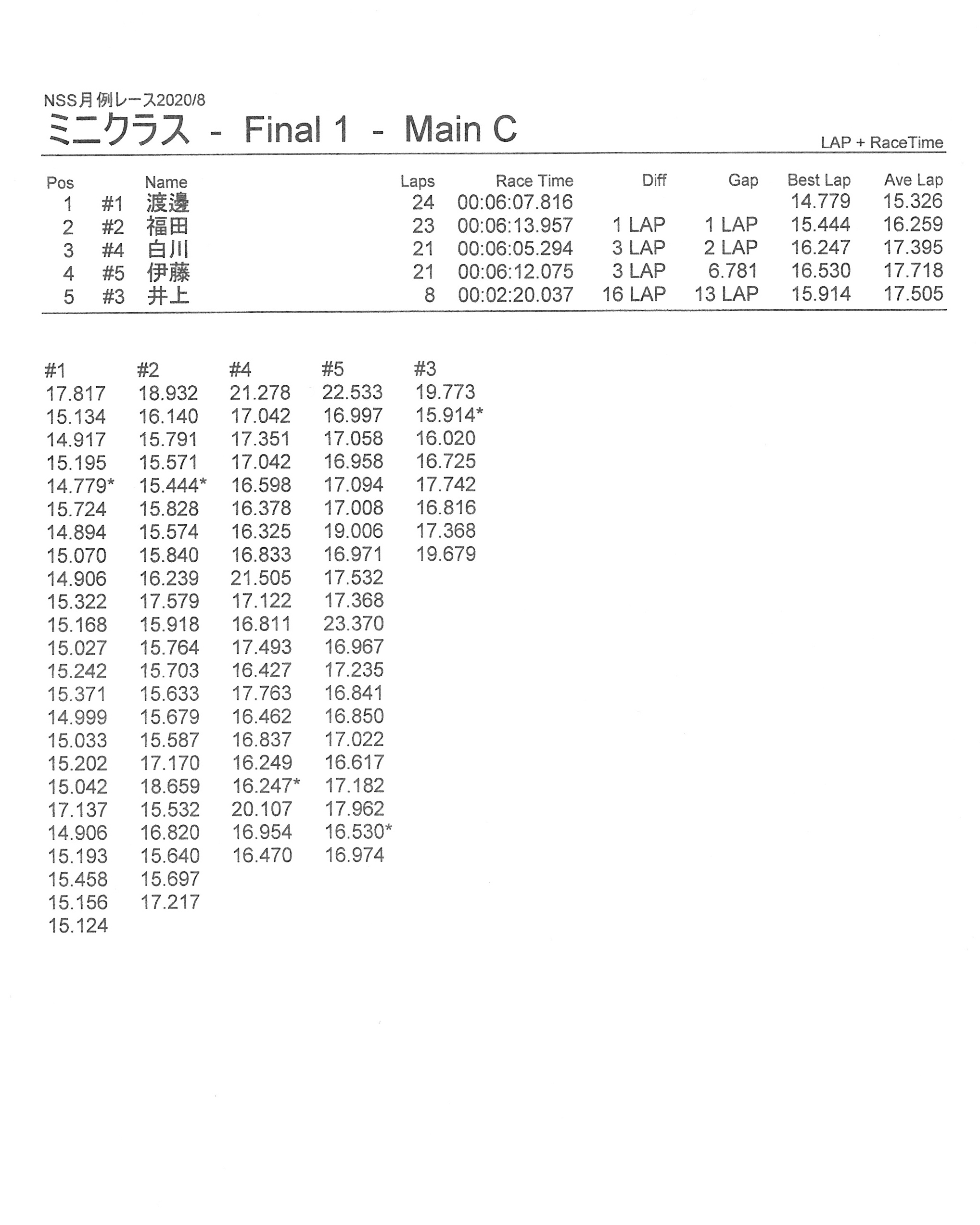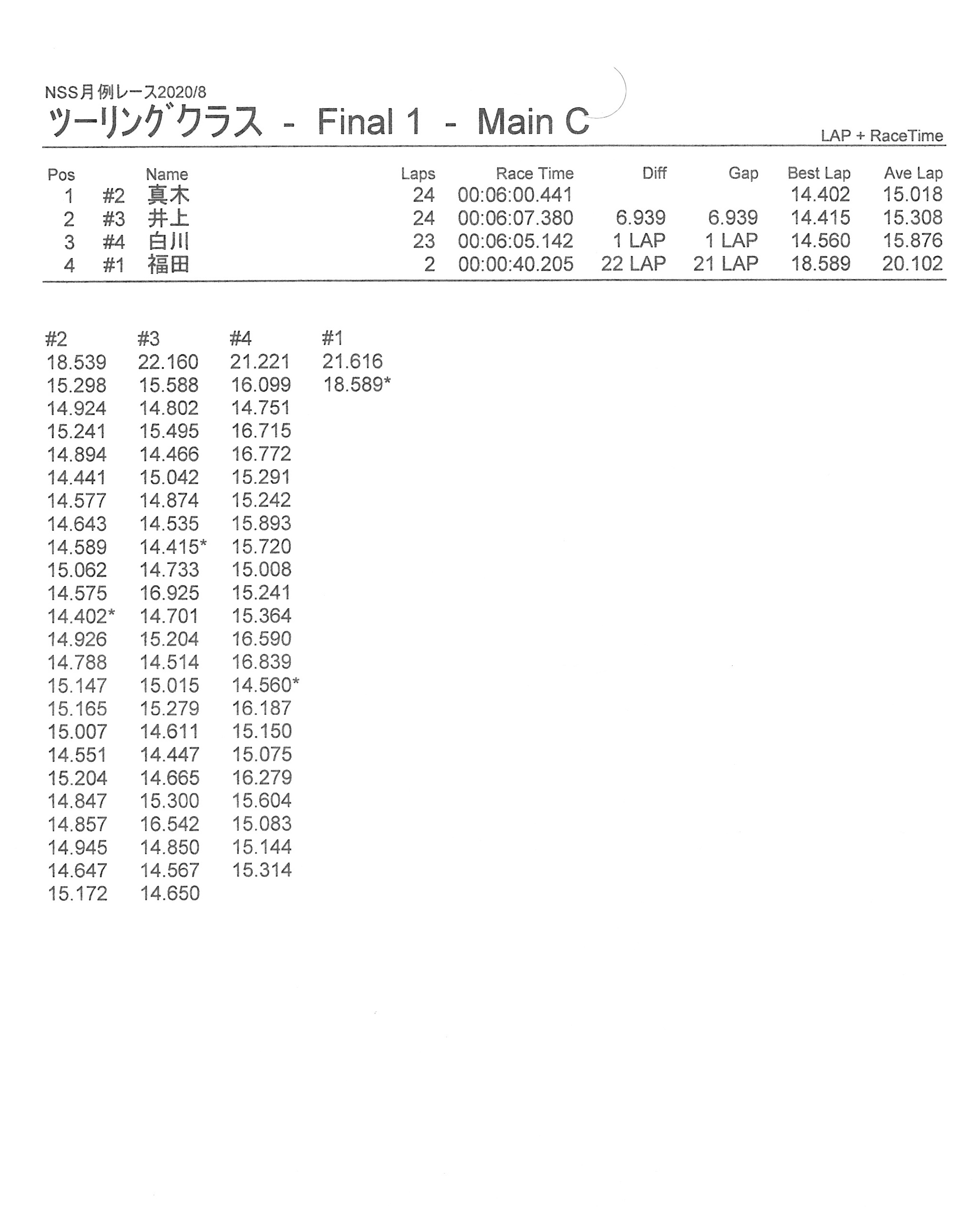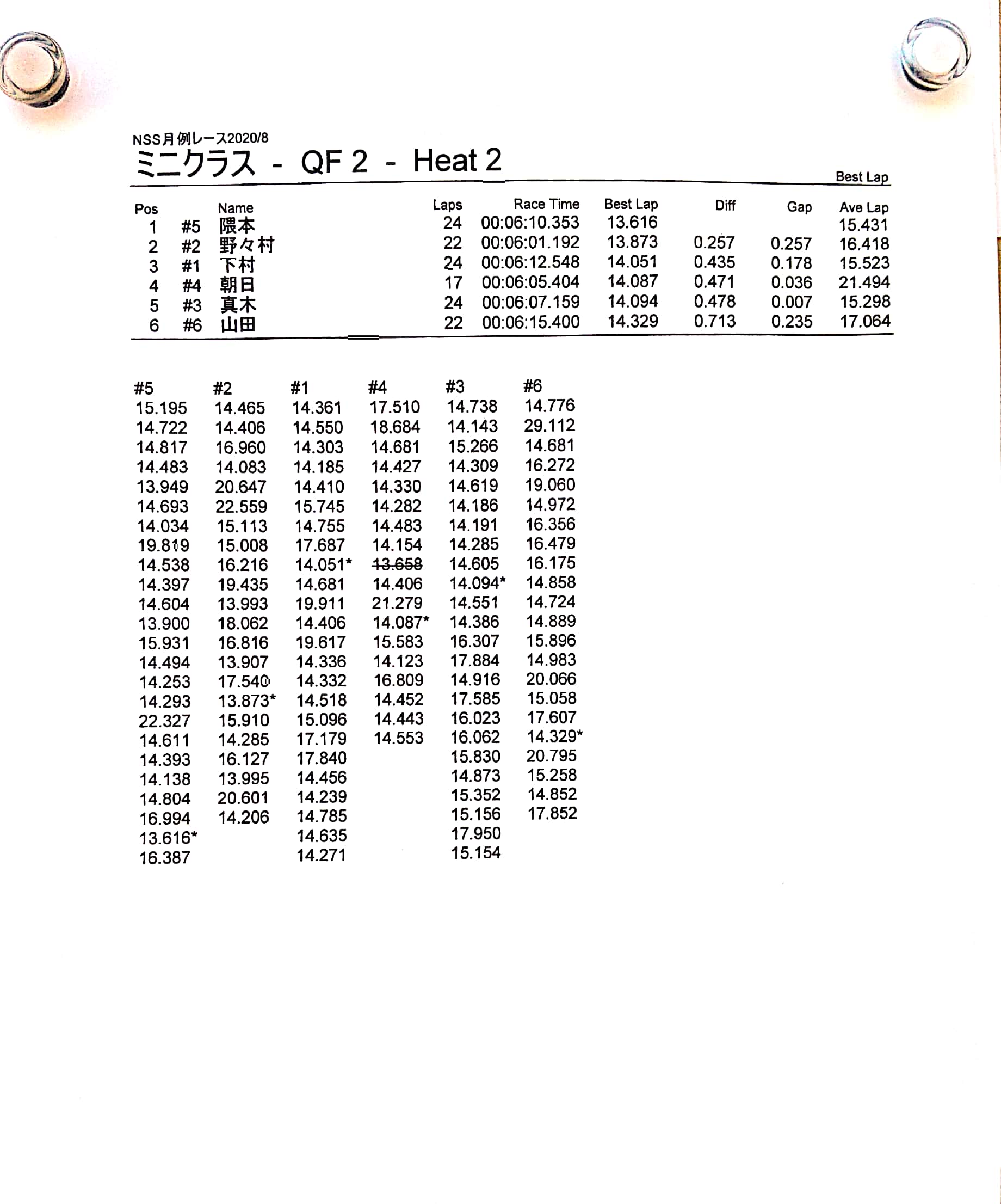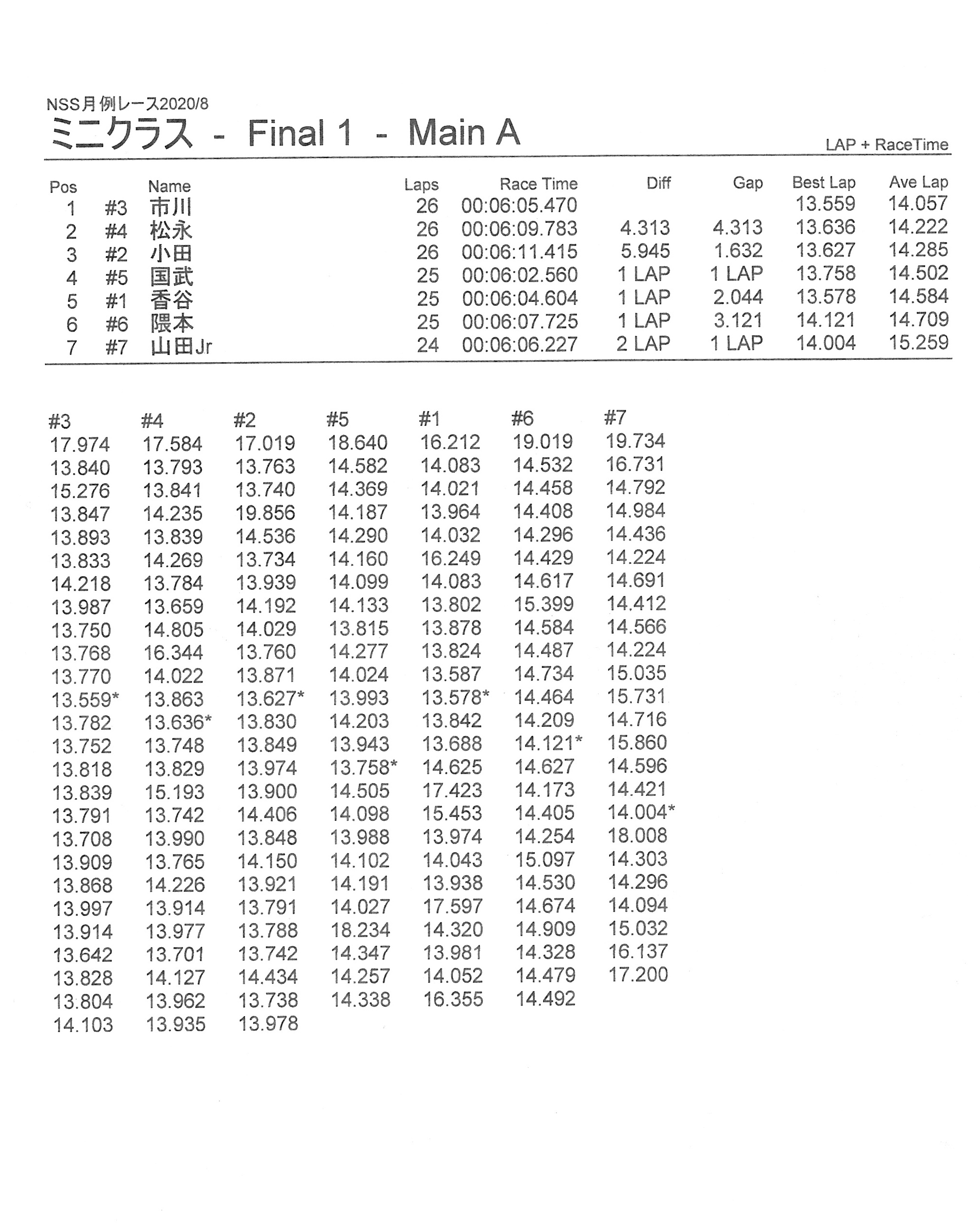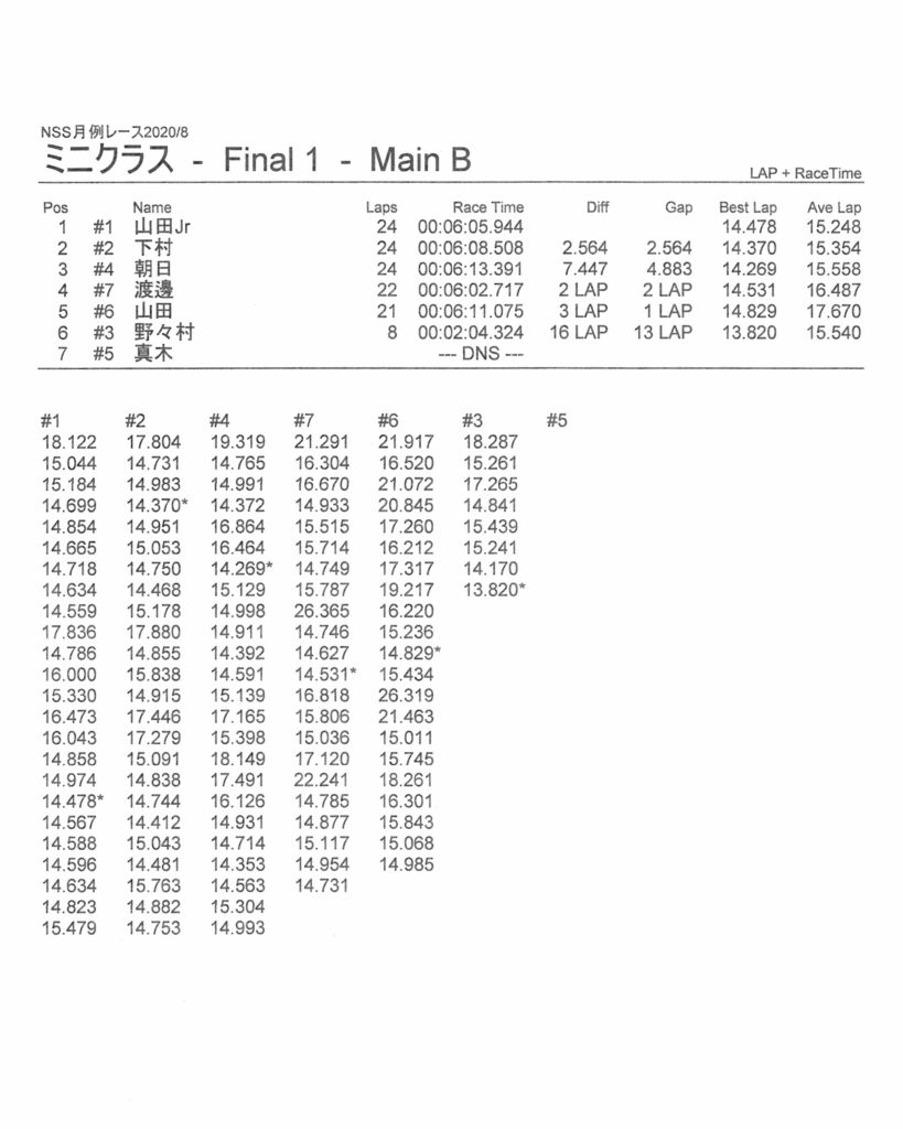 8月の月例レース結果&動画 更新日:2020年8月17日 公開日:2020年8月16日 レース結果 ミニクラスCメイン決勝 ビデオカメラ故障により前半のみ収録 ミニクラスBメイン決勝 ビデオカメラ故障により、スマホで撮影 ミニクラスAメイン決勝 F-1クラスAメイン決勝 ツーリングクラスCメイン決勝 ビデオカメラ故障により前半のみ収録 ツーリングクラスBメイン決勝 ツーリングクラスAメイン決勝 おまけ(予選リザルト) ミニクラス F-1クラス ツーリングクラス 関連記事 ラリークロスレース結果&動画2021/1月例レース結果・動画 2025/02/099月・月例レース結果ラリークロス結果&動画-2024-07-2811月の月例レースの結果ラリークロス結果&動画-2024-11-24 投稿ナビゲーション 7月の月例レース結果・動画9月の月例レース結果&動画