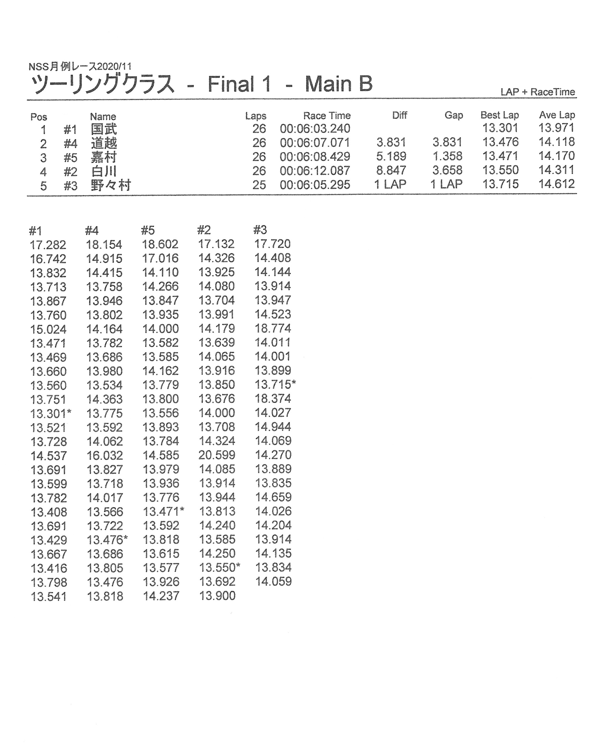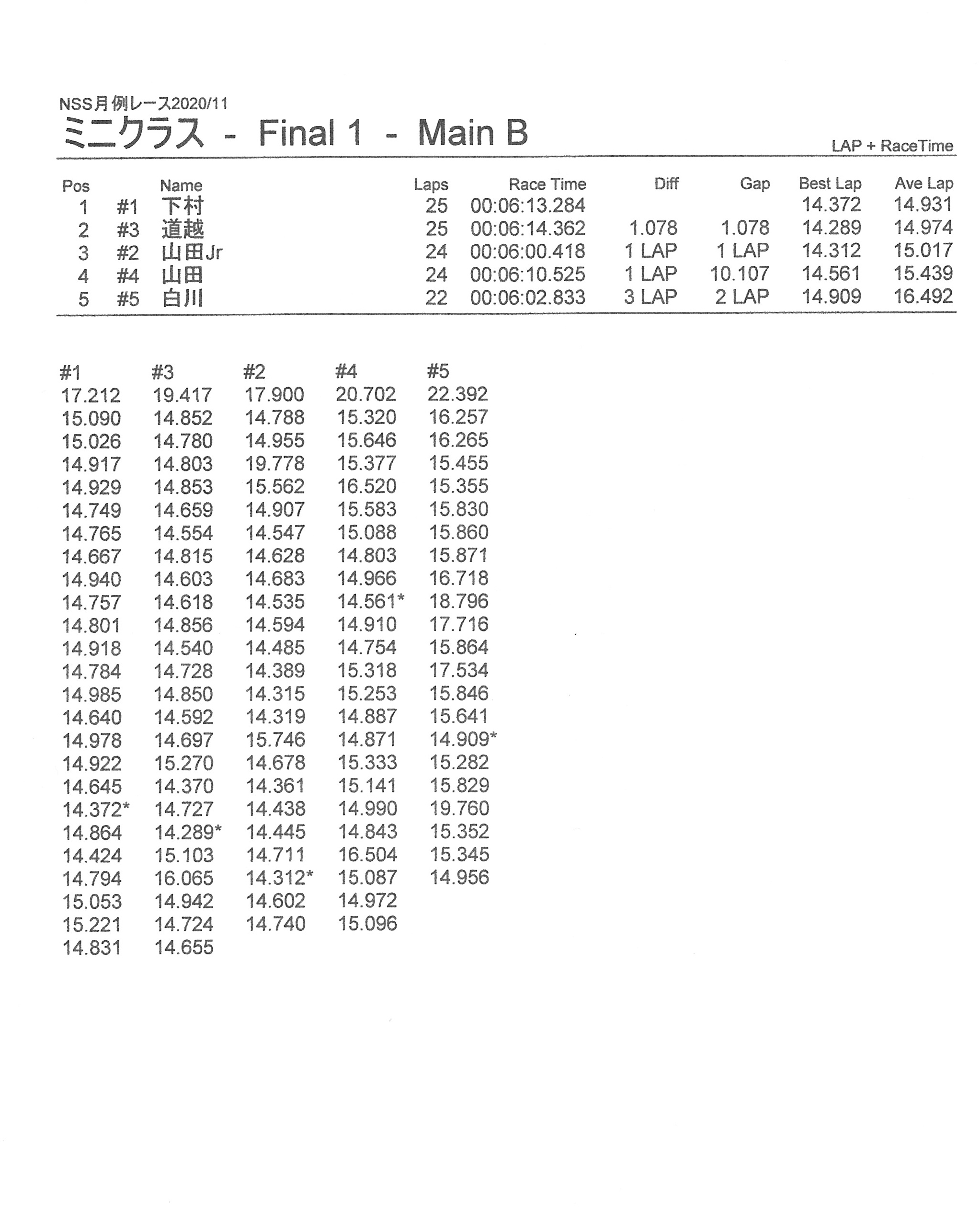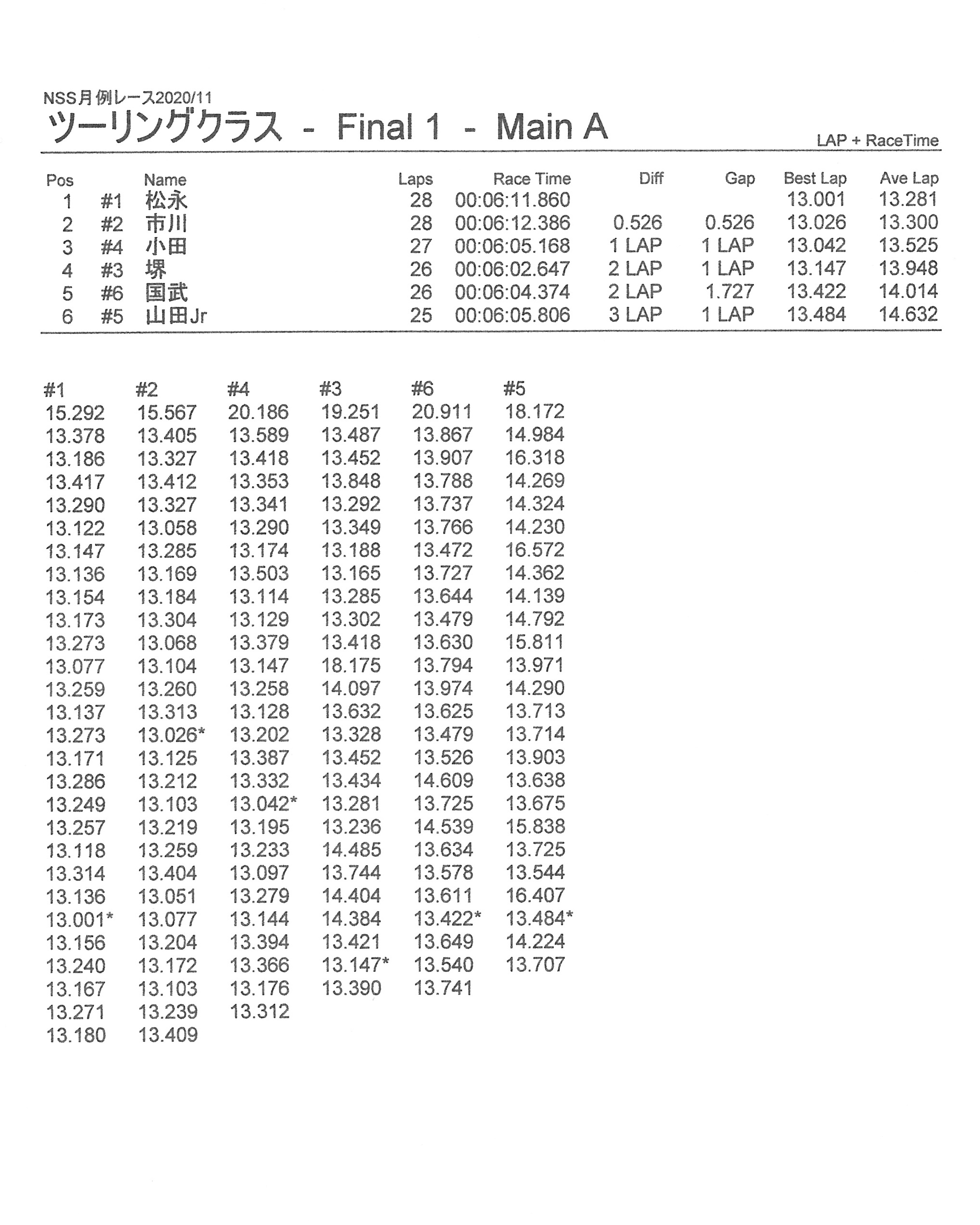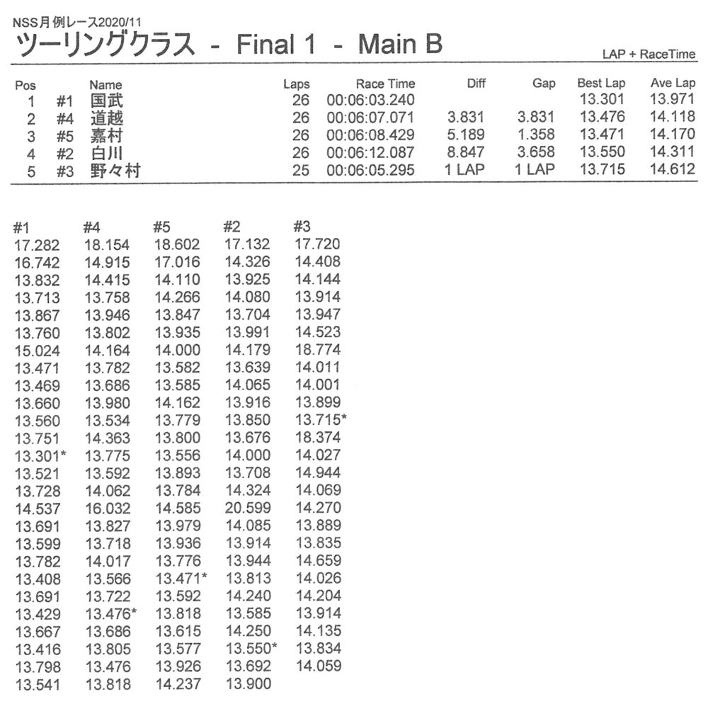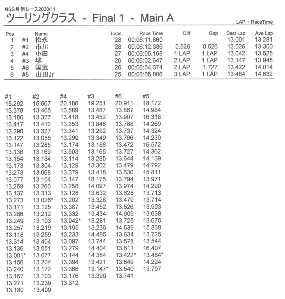11月の月例レース結果&動画 更新日:2020年11月9日 公開日:2020年11月8日 レース結果 ミニクラスBメイン ミニクラスAメイン F-1クラスAメイン ツーリングクラスBメイン ツーリングクラスAメイン フォーミュラEクラスAメイン おまけ(予選リザルト) ミニクラス F-1クラス ツーリングクラス フォーミュラEクラス 関連記事 10月の月例レース結果&動画8月の月例レース結果&動画月例レース結果・動画 2025/02/099月・月例レース結果ラリークロス結果&動画-2024-04-287月・月例レース結果&動画 投稿ナビゲーション フォーミュラ・グランプリ 結果&動画2020年11月ミニ3時間耐久レース結果