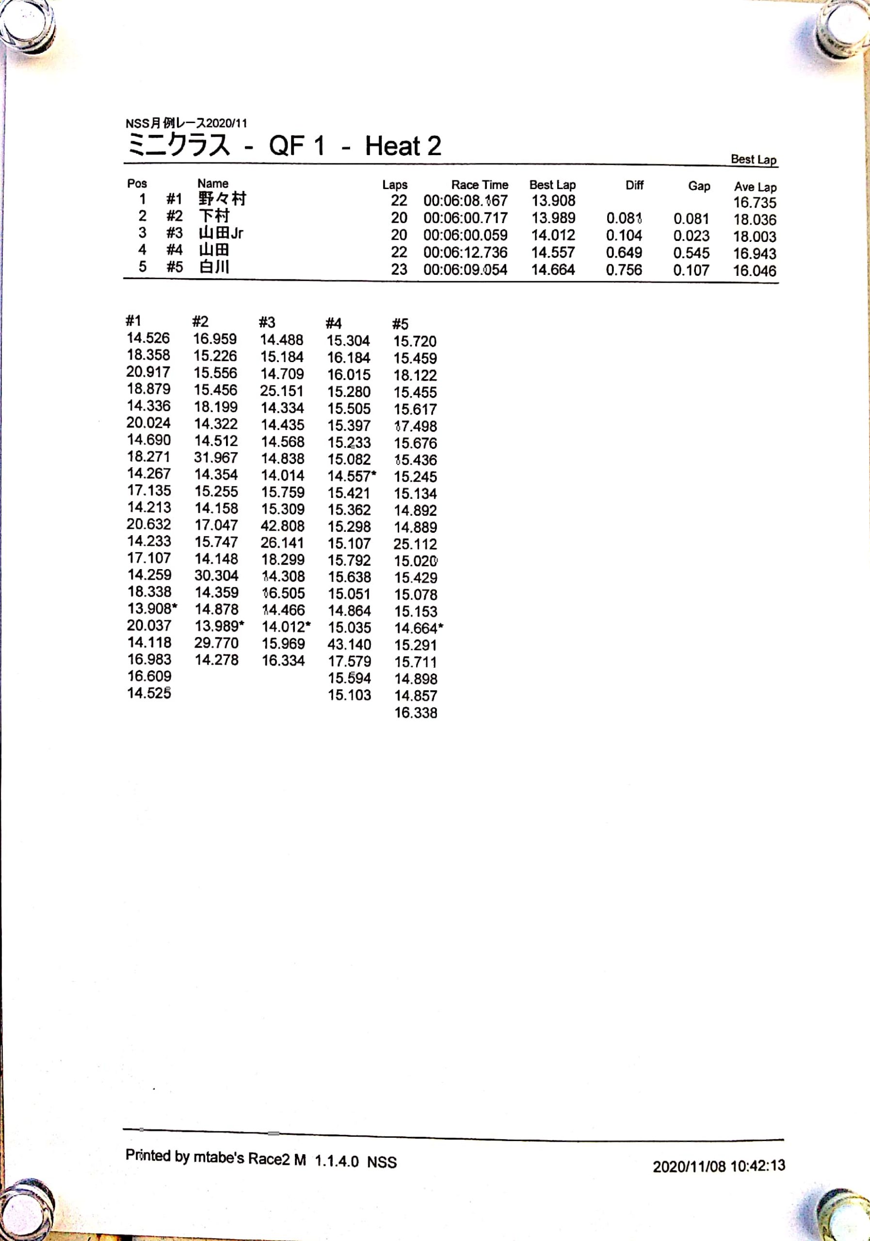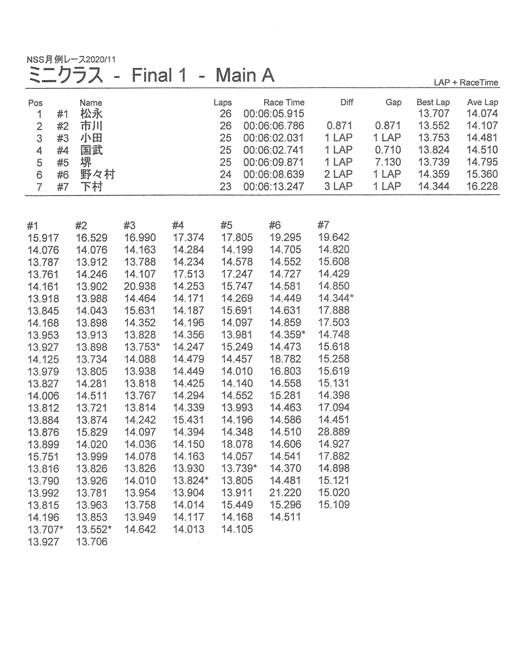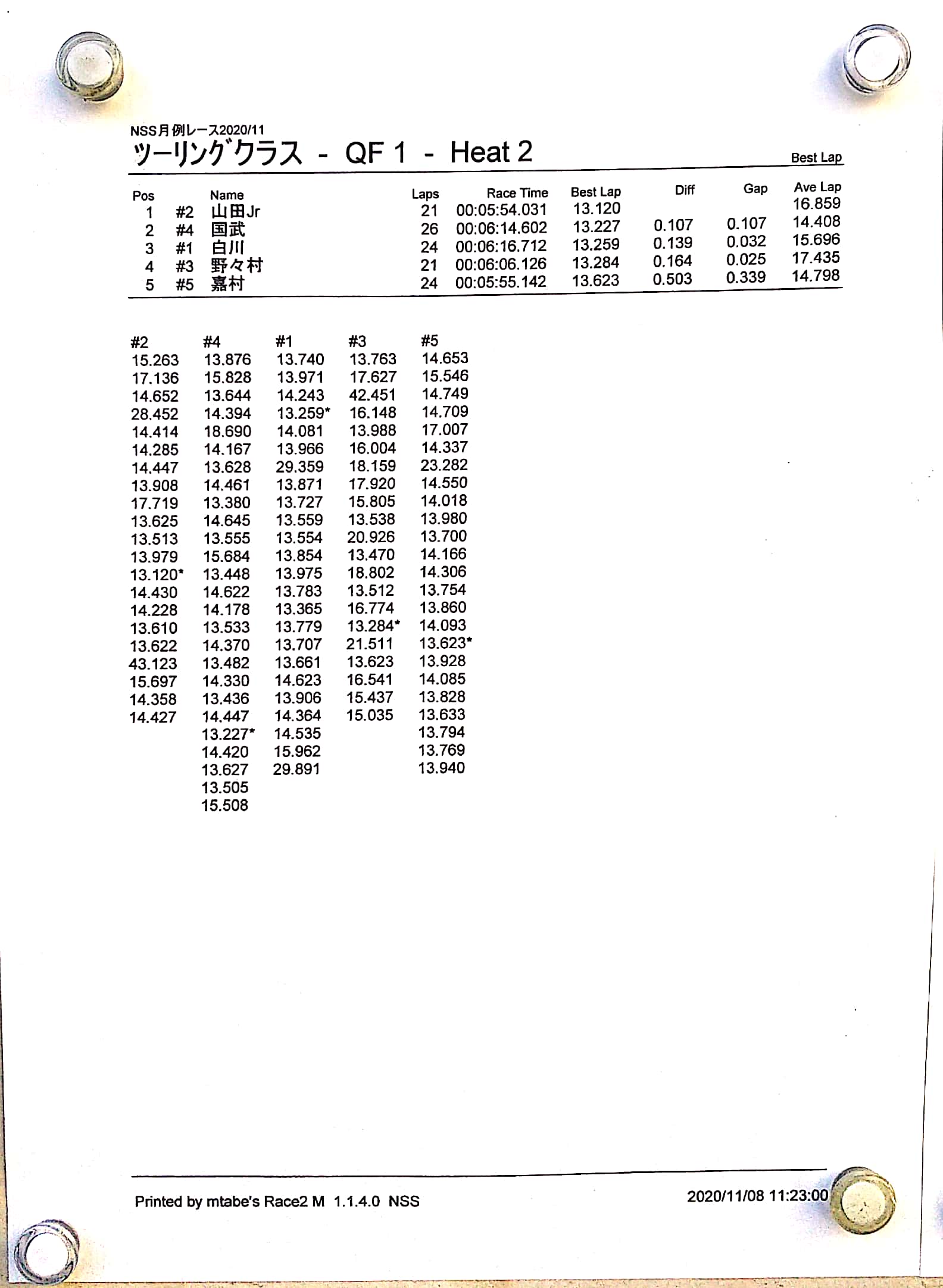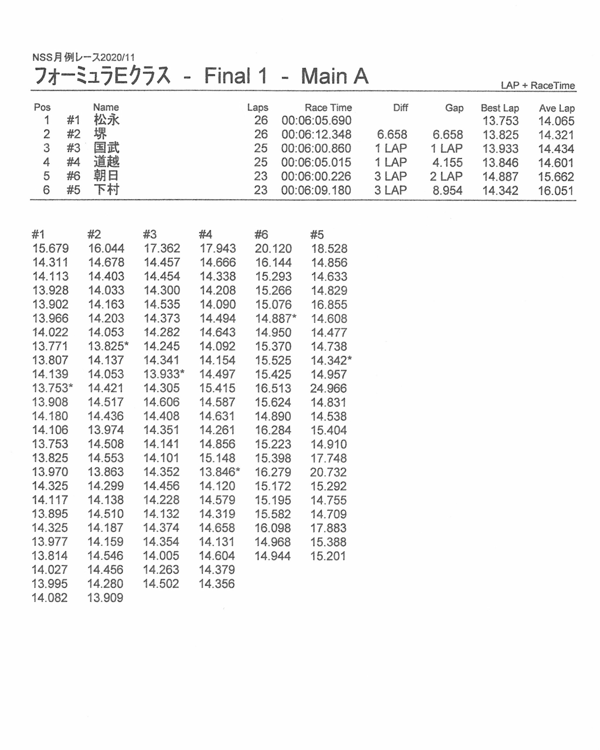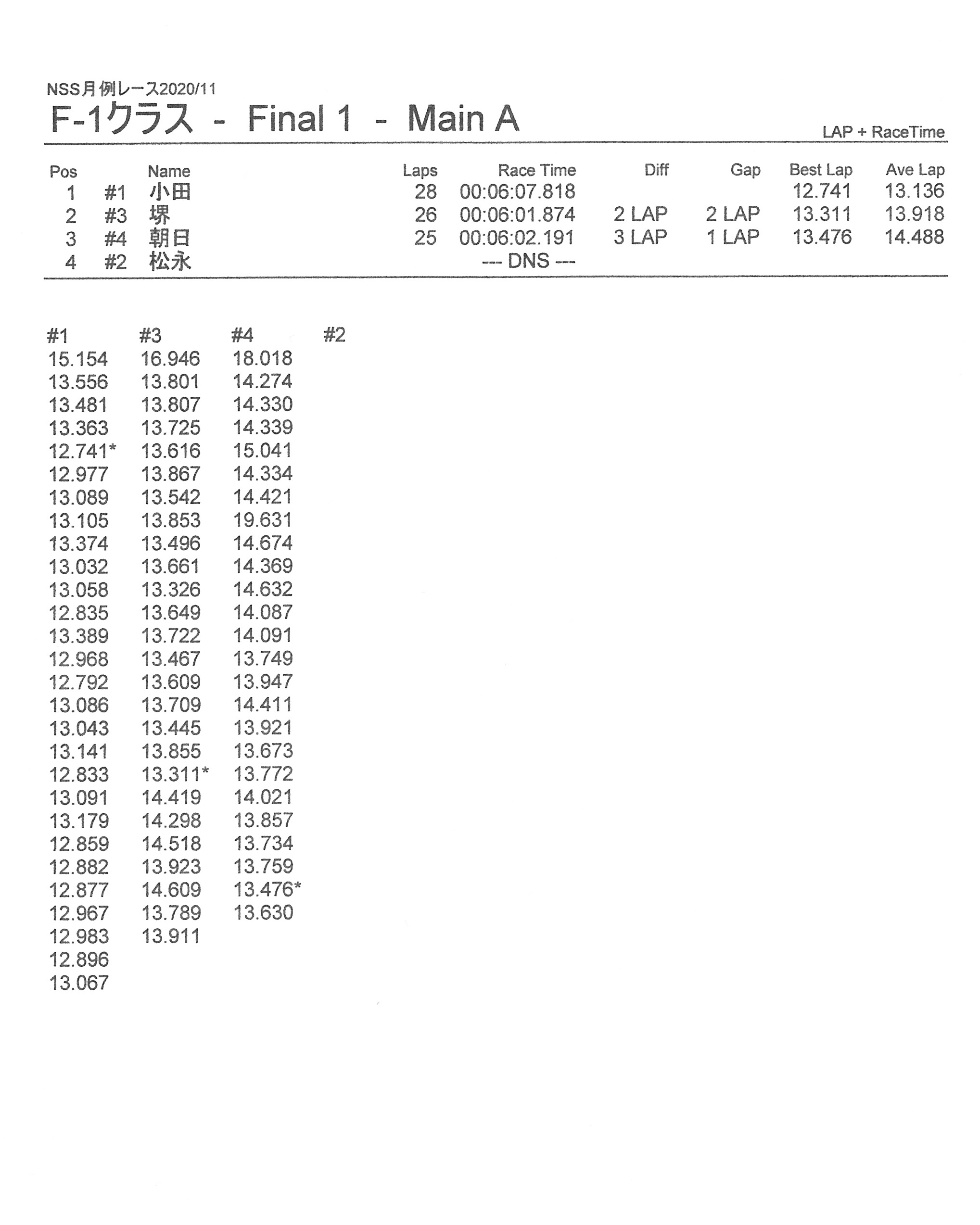 11月の月例レース結果&動画 更新日:2020年11月9日 公開日:2020年11月8日 レース結果 ミニクラスBメイン ミニクラスAメイン F-1クラスAメイン ツーリングクラスBメイン ツーリングクラスAメイン フォーミュラEクラスAメイン おまけ(予選リザルト) ミニクラス F-1クラス ツーリングクラス フォーミュラEクラス 関連記事 10月の月例レース結果&動画8月の月例レース結果&動画月例レース結果・動画 2025/02/099月・月例レース結果ラリークロス結果&動画-2024-04-287月・月例レース結果&動画 投稿ナビゲーション フォーミュラ・グランプリ 結果&動画2020年11月ミニ3時間耐久レース結果