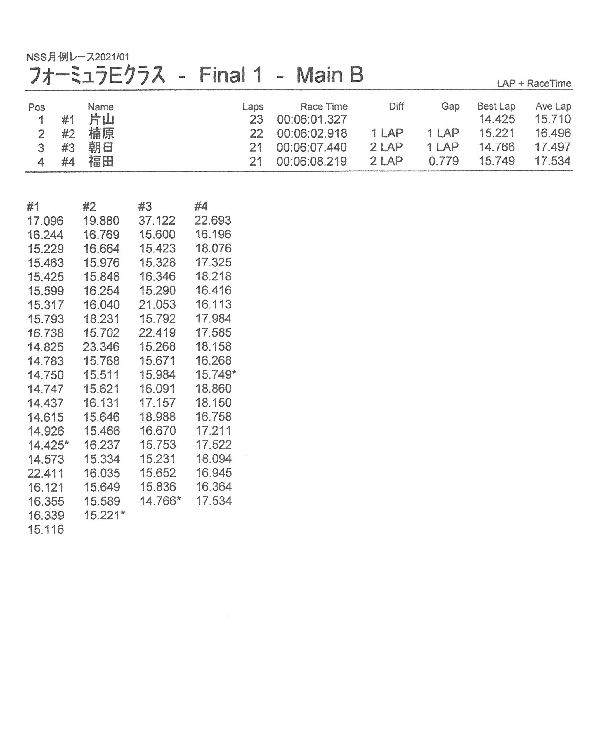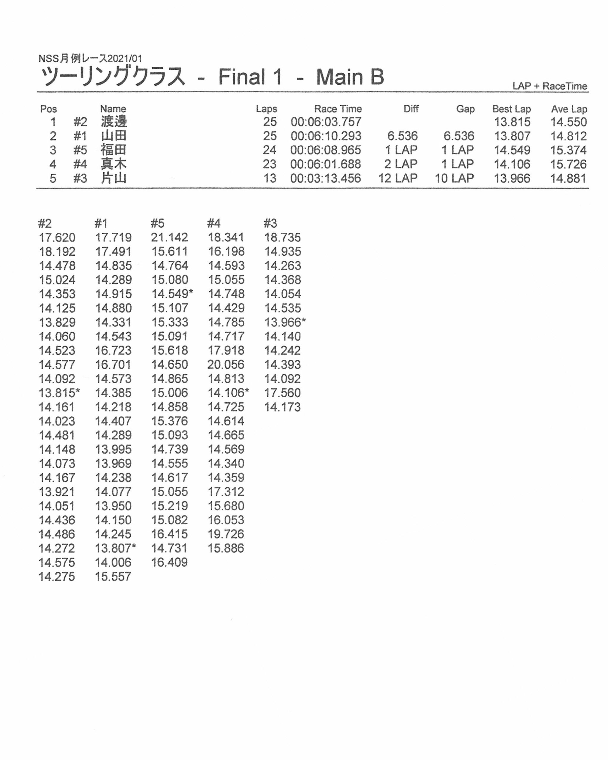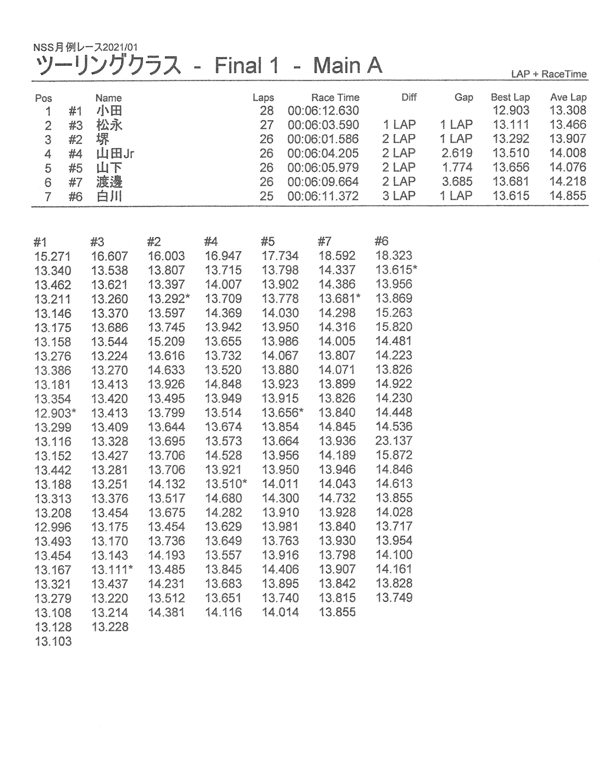 1月・月例レース結果&動画 公開日:2021年1月17日 レース結果 ミニクラスBメイン ミニクラスAメイン F-1クラスAメイン ツーリングクラスBメイン ツーリングクラスAメイン フォーミュラEクラスBメイン フォーミュラEクラスAメイン 関連記事 9月・月例レース結果&動画3月・月例レース結果・動画8月・月例レース結果・動画ラリークロスレース結果&動画 2022/1/3ラリークロスレース結果&動画2021/1ラリークロス結果 2025.04.29 投稿ナビゲーション ラリークロスレース結果&動画2021/12月・月例レース結果&動画