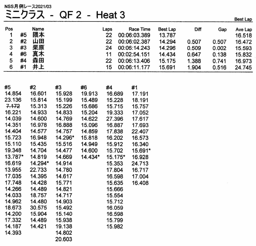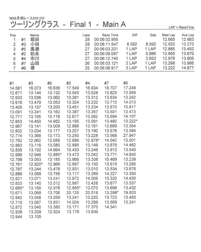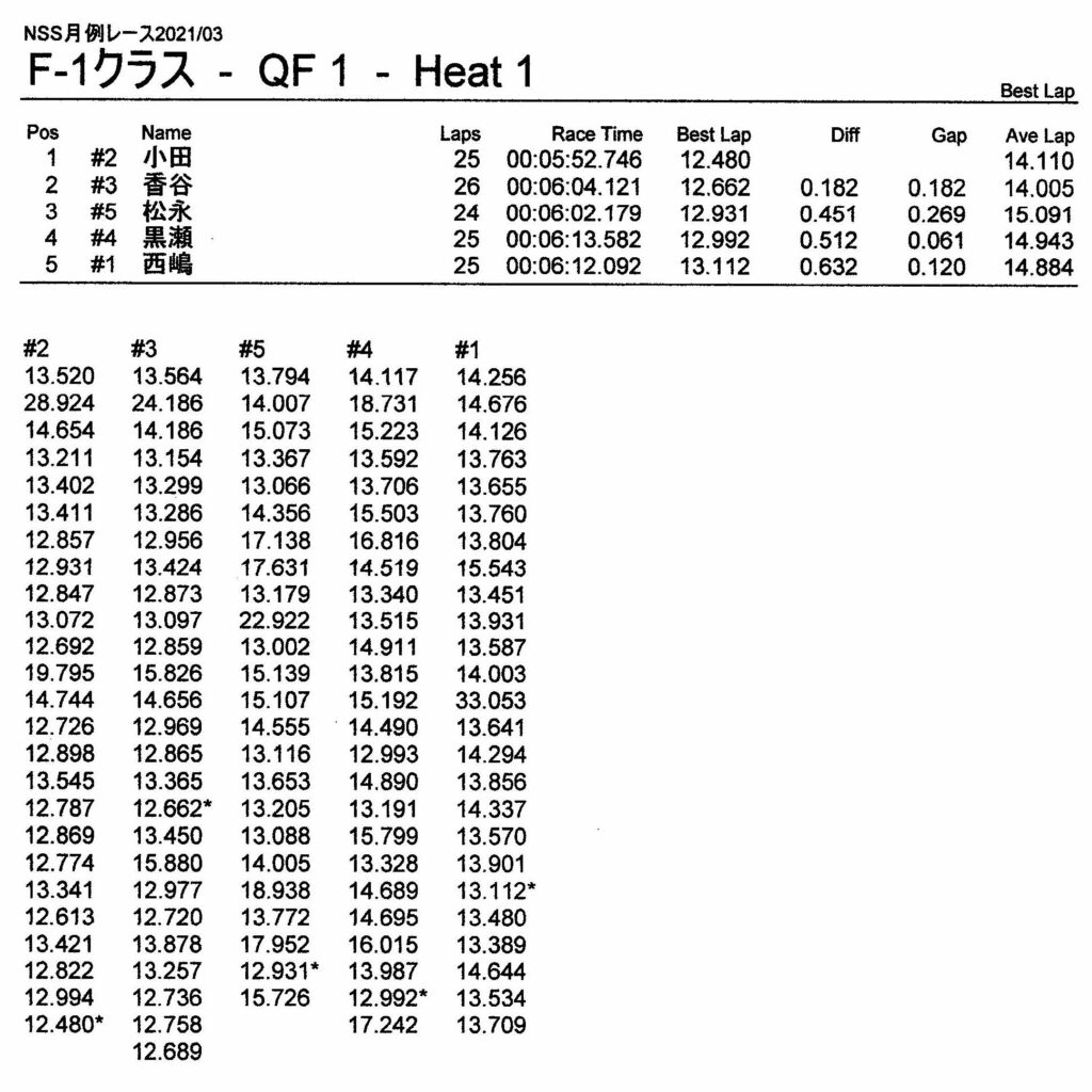 3月・月例レース結果&動画 更新日:2021年3月15日 公開日:2021年3月14日 レース結果 ミニクラス ミニクラスCメイン ミニクラスBメイン ミニクラスAメイン F-1クラス F-1クラスBメイン F-1クラスAメイン ツーリングクラス ツーリングクラスCメイン ツーリングクラスBメイン ツーリングクラスAメイン フォーミュラEクラスAメイン おまけ(予選リザルト) ミニクラス F-1クラス ツーリングクラス フォーミュラEクラス 関連記事 6月・月例レース結果・動画6月・月例レース結果&動画3月・月例レース結果ラリークロスレース結果&動画 2021/8/295月・月例レース結果・動画ビギナー限定の簡易レースを行いました 投稿ナビゲーション ラリークロスレース結果&動画2021/24月・月例レース結果&動画