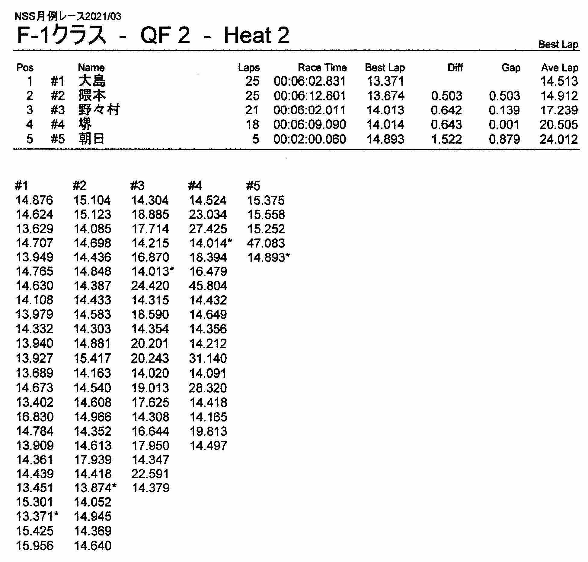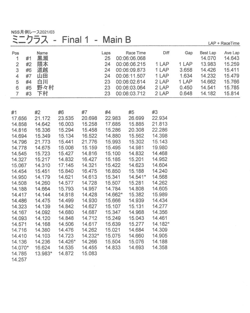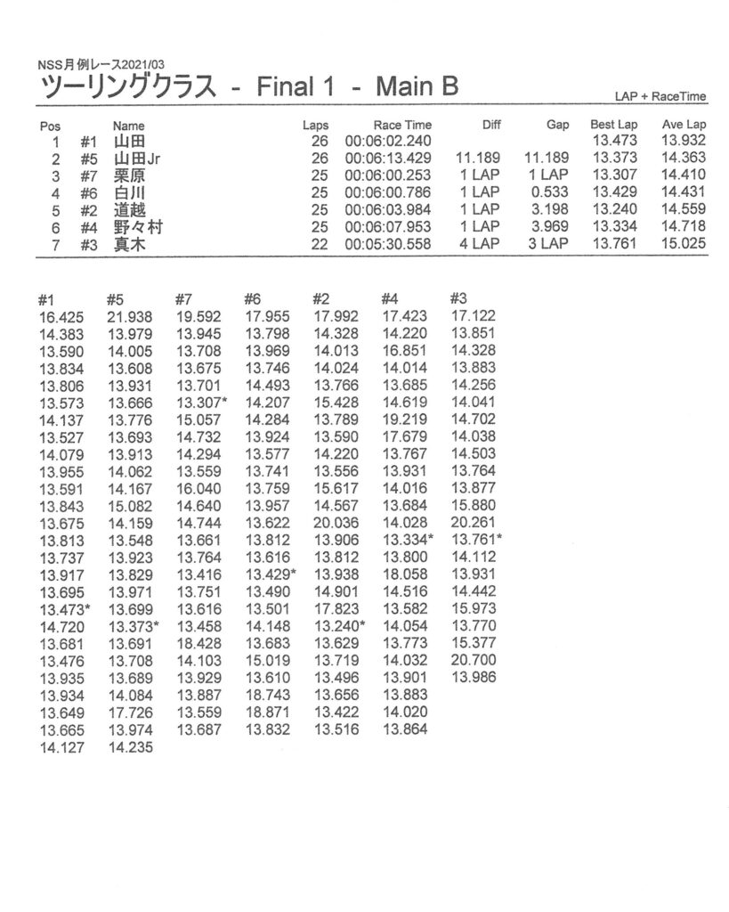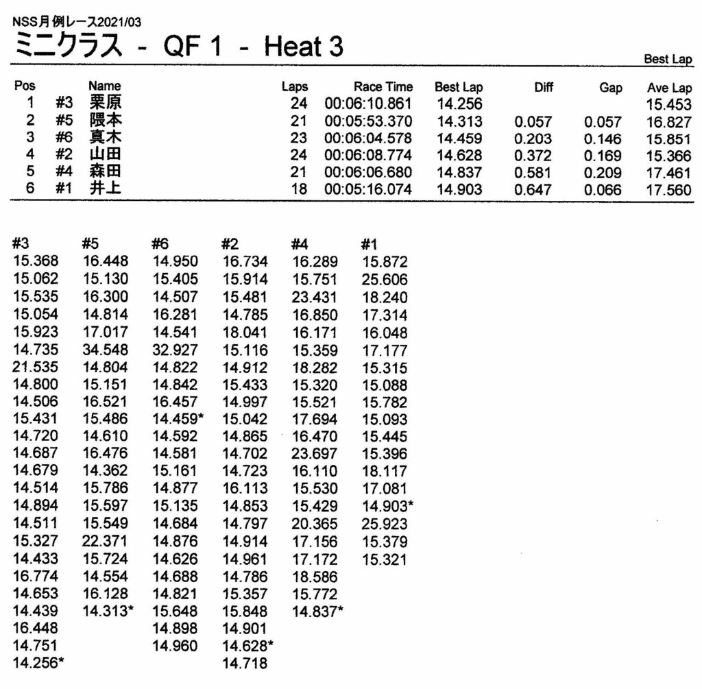 3月・月例レース結果&動画 更新日:2021年3月15日 公開日:2021年3月14日 レース結果 ミニクラス ミニクラスCメイン ミニクラスBメイン ミニクラスAメイン F-1クラス F-1クラスBメイン F-1クラスAメイン ツーリングクラス ツーリングクラスCメイン ツーリングクラスBメイン ツーリングクラスAメイン フォーミュラEクラスAメイン おまけ(予選リザルト) ミニクラス F-1クラス ツーリングクラス フォーミュラEクラス 関連記事 6月・月例レース結果・動画6月・月例レース結果&動画3月・月例レース結果ラリークロスレース結果&動画 2021/8/295月・月例レース結果・動画ビギナー限定の簡易レースを行いました 投稿ナビゲーション ラリークロスレース結果&動画2021/24月・月例レース結果&動画