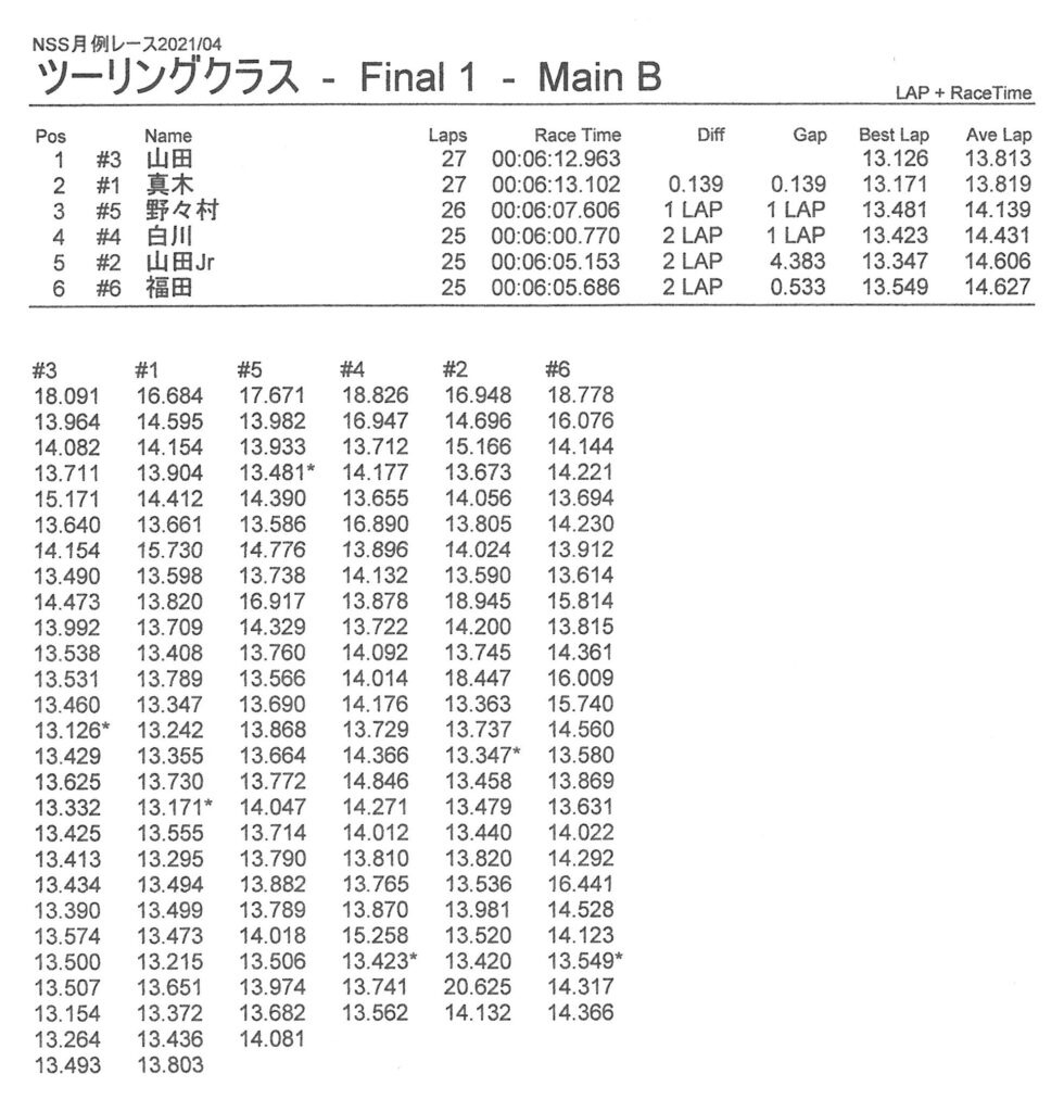 4月・月例レース結果&動画 更新日:2021年4月13日 公開日:2021年4月11日 レース結果 ミニクラス ミニクラスCメイン ミニクラスBメイン ミニクラスAメイン F-1クラスAメイン ツーリングクラス ツーリングクラスCメイン ツーリングクラスBメイン ツーリングクラスAメイン フォーミュラEクラス おまけ(予選リザルト) ミニクラス F-1クラス ツーリングクラス フォーミュラEクラス 関連記事 ラリークロス結果 2025.04.2912月・月例レース結果&動画5月・月例レース結果・動画ラリークロス結果&動画-2024-11-24ラリークロスレース結果&動画 2023/3/5ラリークロスレース結果&動画 2021/4 投稿ナビゲーション 3月・月例レース結果&動画ラリークロスレース結果&動画 2021/4