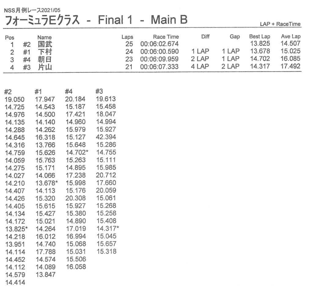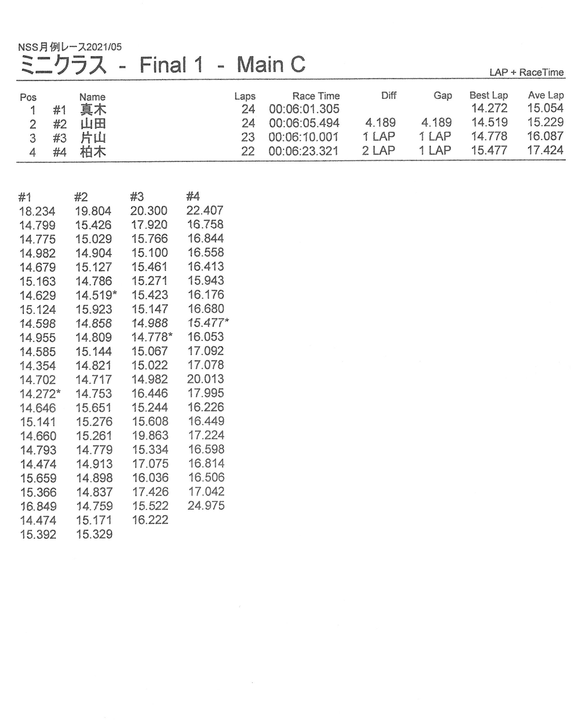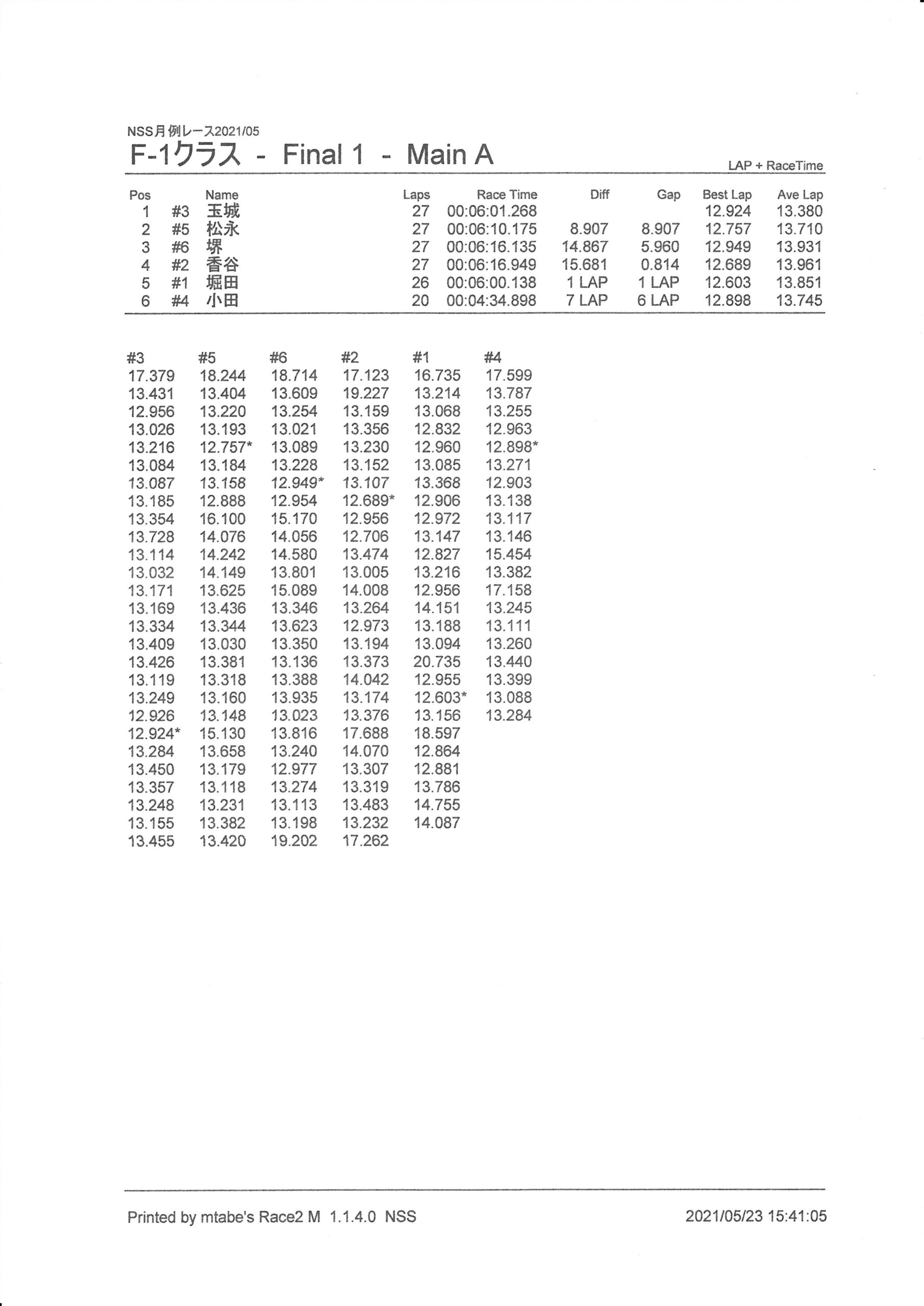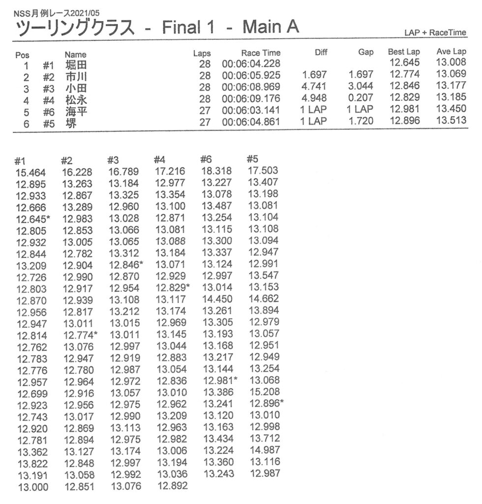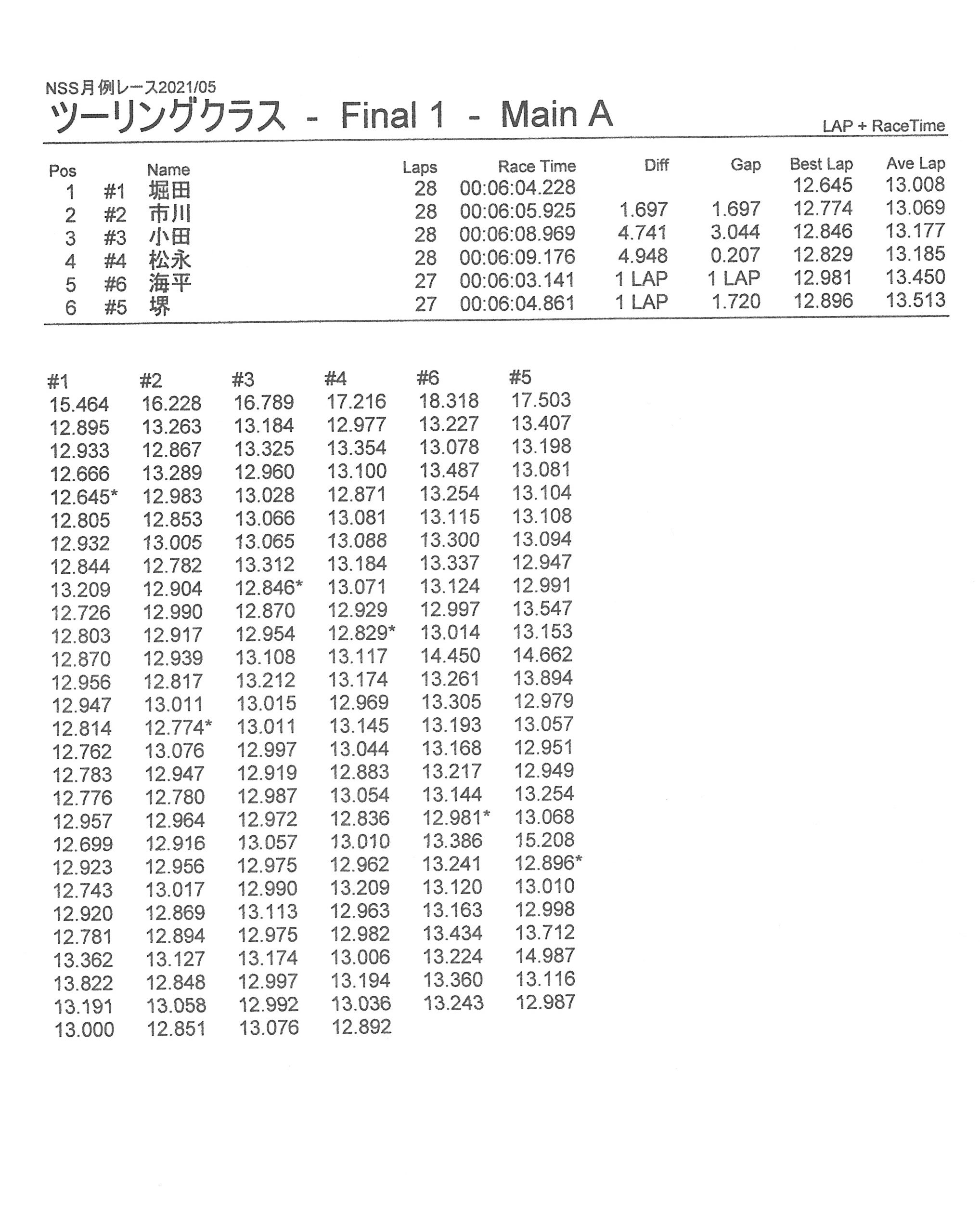 5月・月例レース結果&動画 更新日:2021年5月24日 公開日:2021年5月23日 レース結果 ミニクラス ミニクラスCメイン ミニクラスBメイン ミニクラスAメイン F-1クラスAメイン ツーリングクラス ツーリングクラスCメイン ツーリングクラスBメイン ツーリングクラスAメイン フォーミュラEクラス フォーミュラEクラスBメイン フォーミュラEクラスAメイン おまけ(予選リザルト) ミニクラス F-1クラス ツーリングクラス フォーミュラEクラス 関連記事 ラリークロス結果 2025.04.2911月・月例レース結果&動画9月・月例レース結果&動画月例レース結果・動画 2025/02/094月・月例レース結果・動画ラリークロス結果・動画 投稿ナビゲーション 2021年5月ミニ3時間耐久レース結果6月・月例レース結果&動画