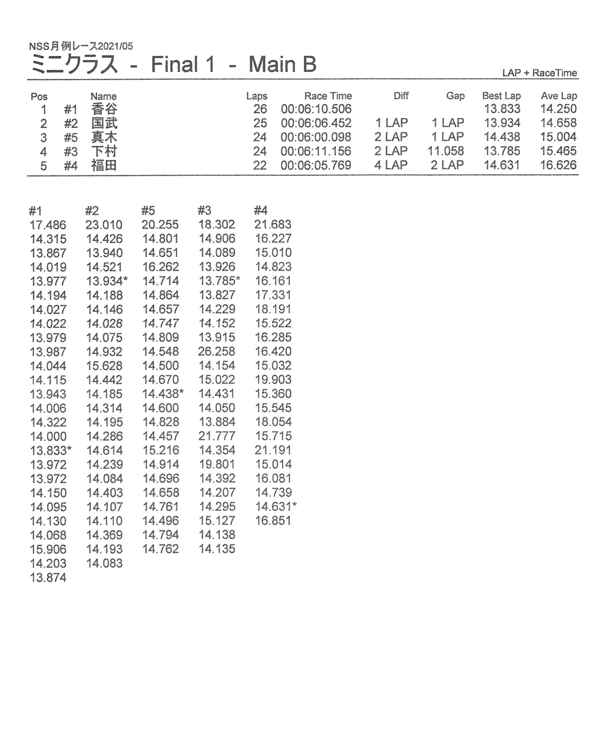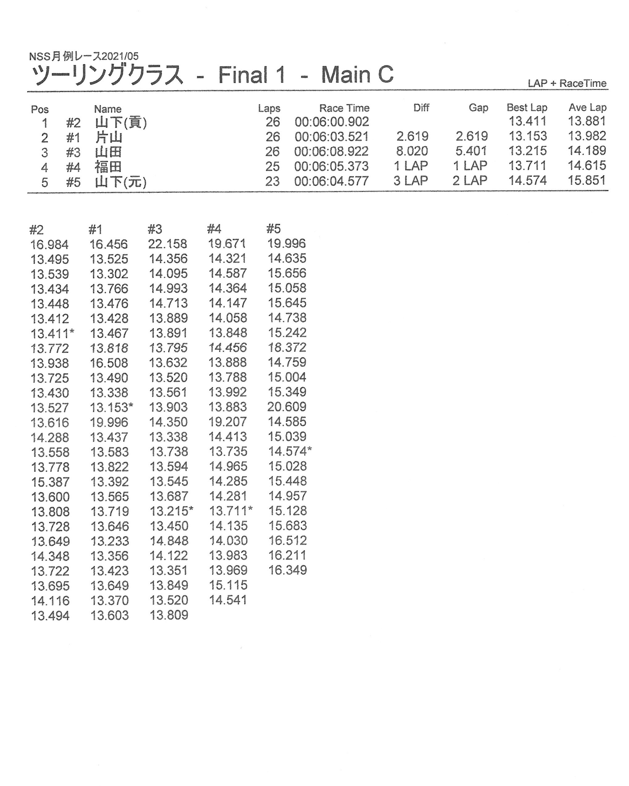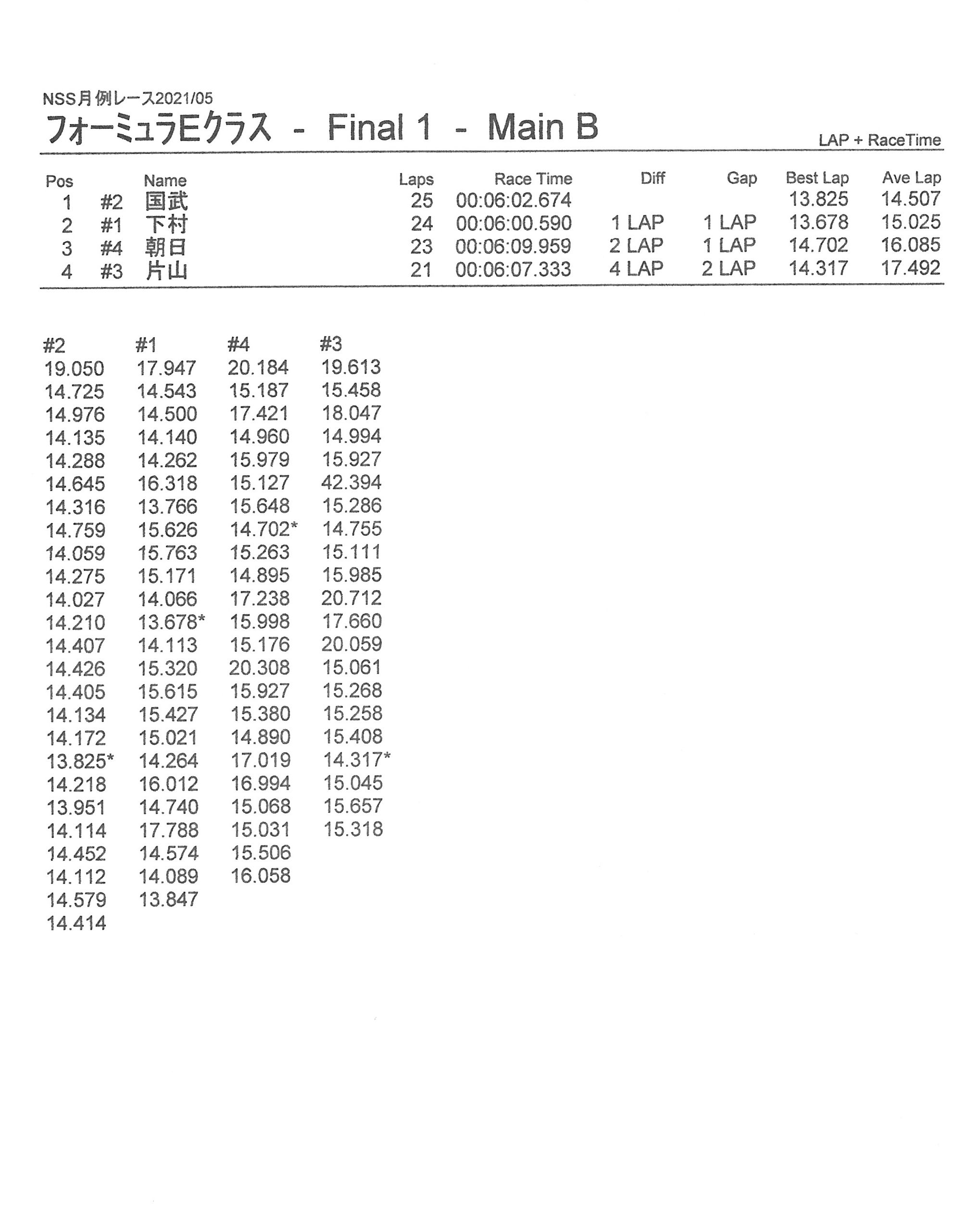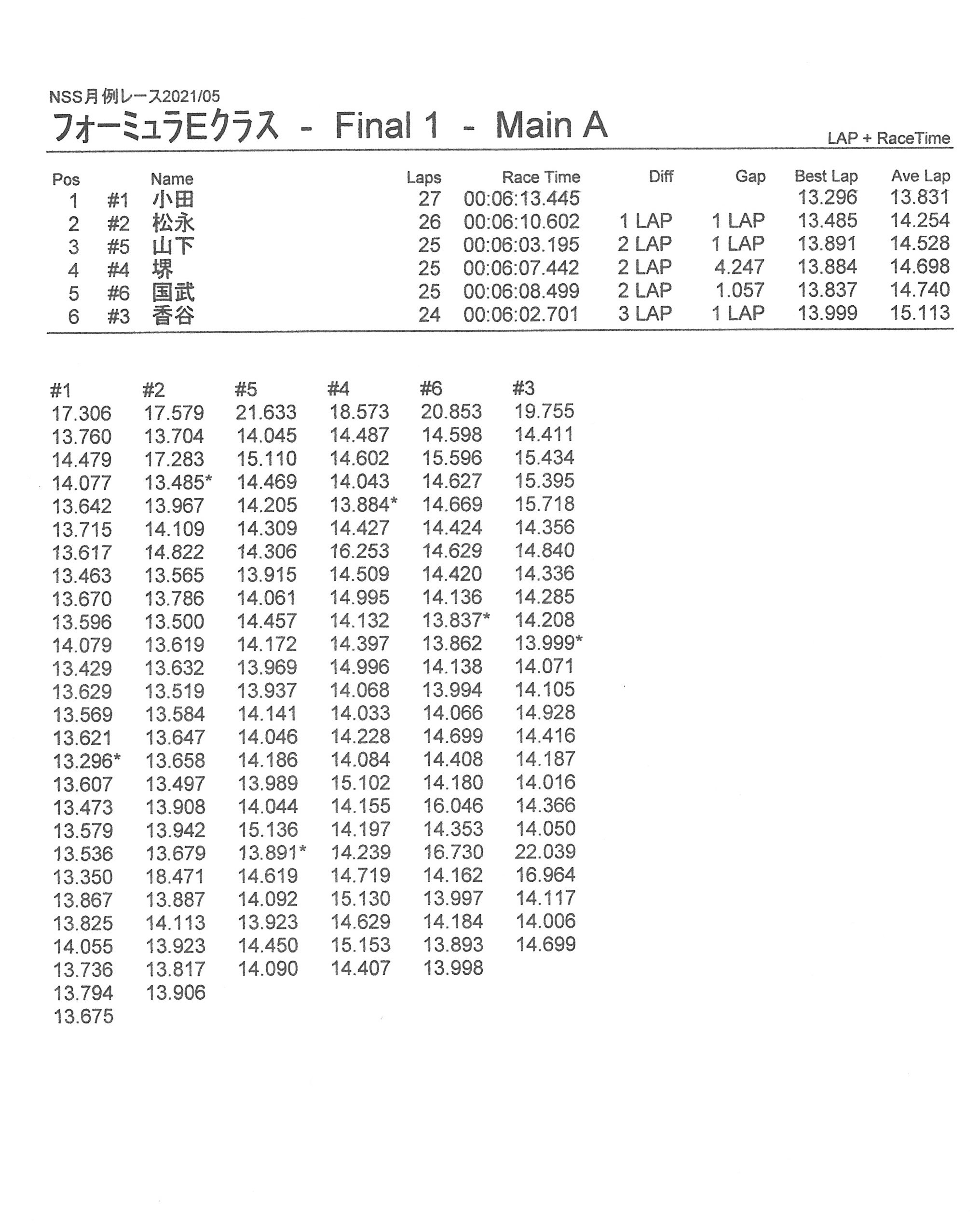 5月・月例レース結果&動画 更新日:2021年5月24日 公開日:2021年5月23日 レース結果 ミニクラス ミニクラスCメイン ミニクラスBメイン ミニクラスAメイン F-1クラスAメイン ツーリングクラス ツーリングクラスCメイン ツーリングクラスBメイン ツーリングクラスAメイン フォーミュラEクラス フォーミュラEクラスBメイン フォーミュラEクラスAメイン おまけ(予選リザルト) ミニクラス F-1クラス ツーリングクラス フォーミュラEクラス 関連記事 ラリークロス結果 2025.04.2911月・月例レース結果&動画9月・月例レース結果&動画月例レース結果・動画 2025/02/094月・月例レース結果・動画ラリークロス結果・動画 投稿ナビゲーション 2021年5月ミニ3時間耐久レース結果6月・月例レース結果&動画