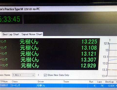 今回のレース参加者は、前回にも増して全体的にレベルが高くて、予選で12秒台を出した人までCメインに入っているという異常な状態でした。(今までは12秒台に入ればAメインまたはBメイン入りできていた)