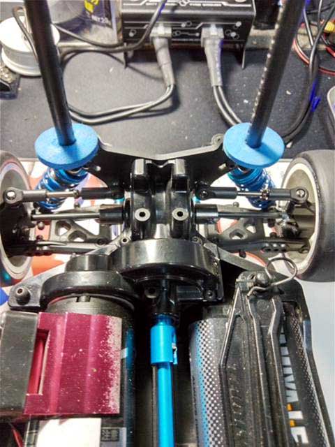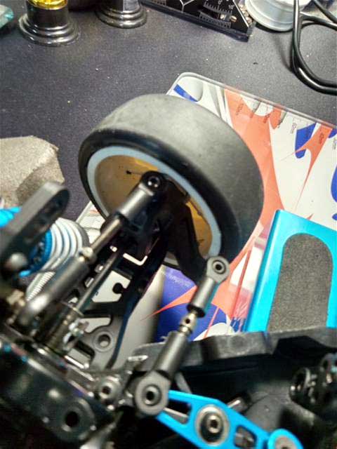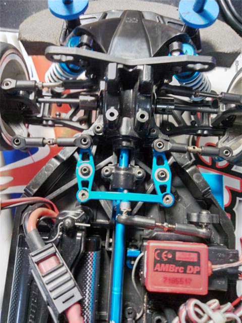 アルミのナックルとCハブが曲がっていたので、とりあえず樹脂製のパーツに変更してます。