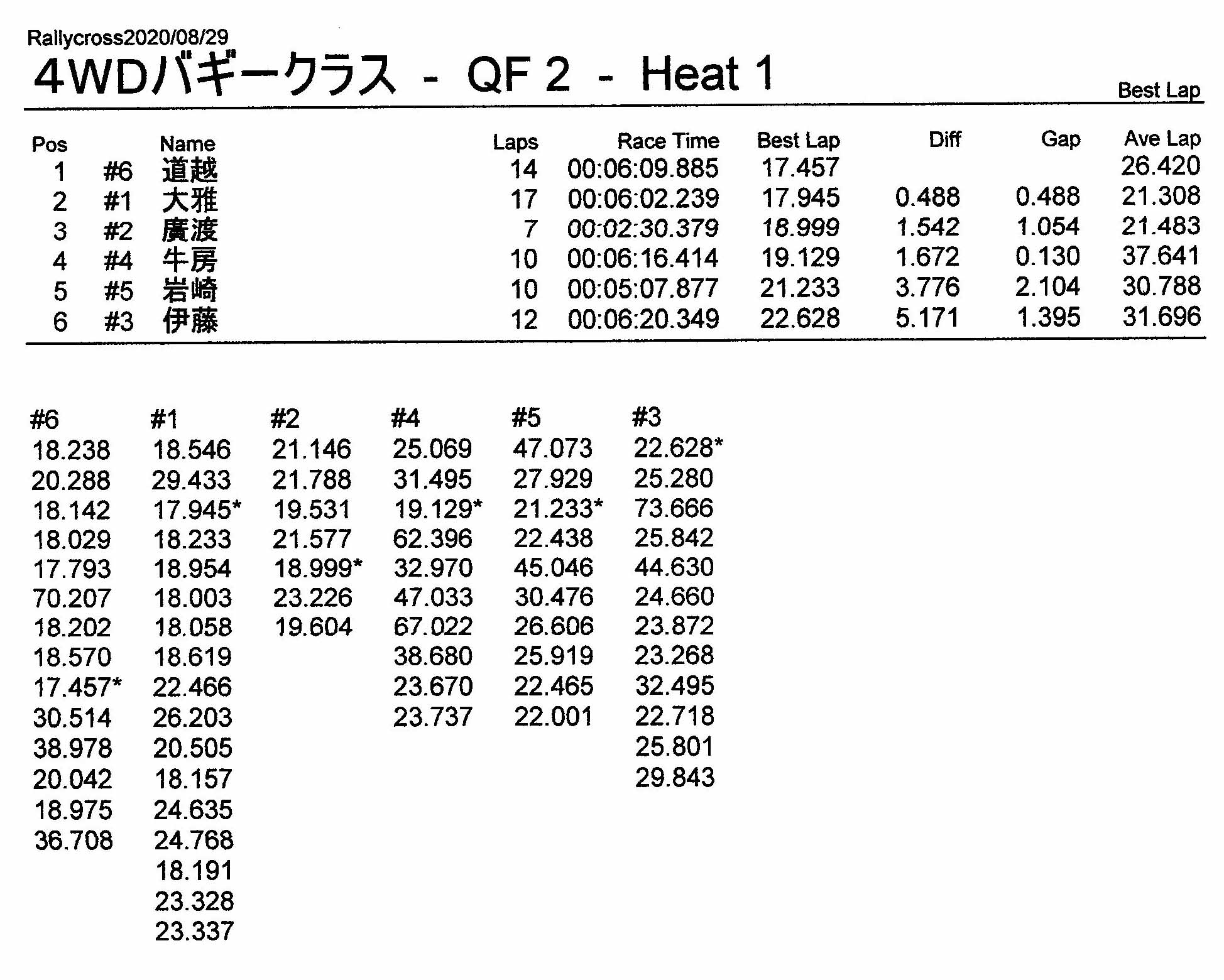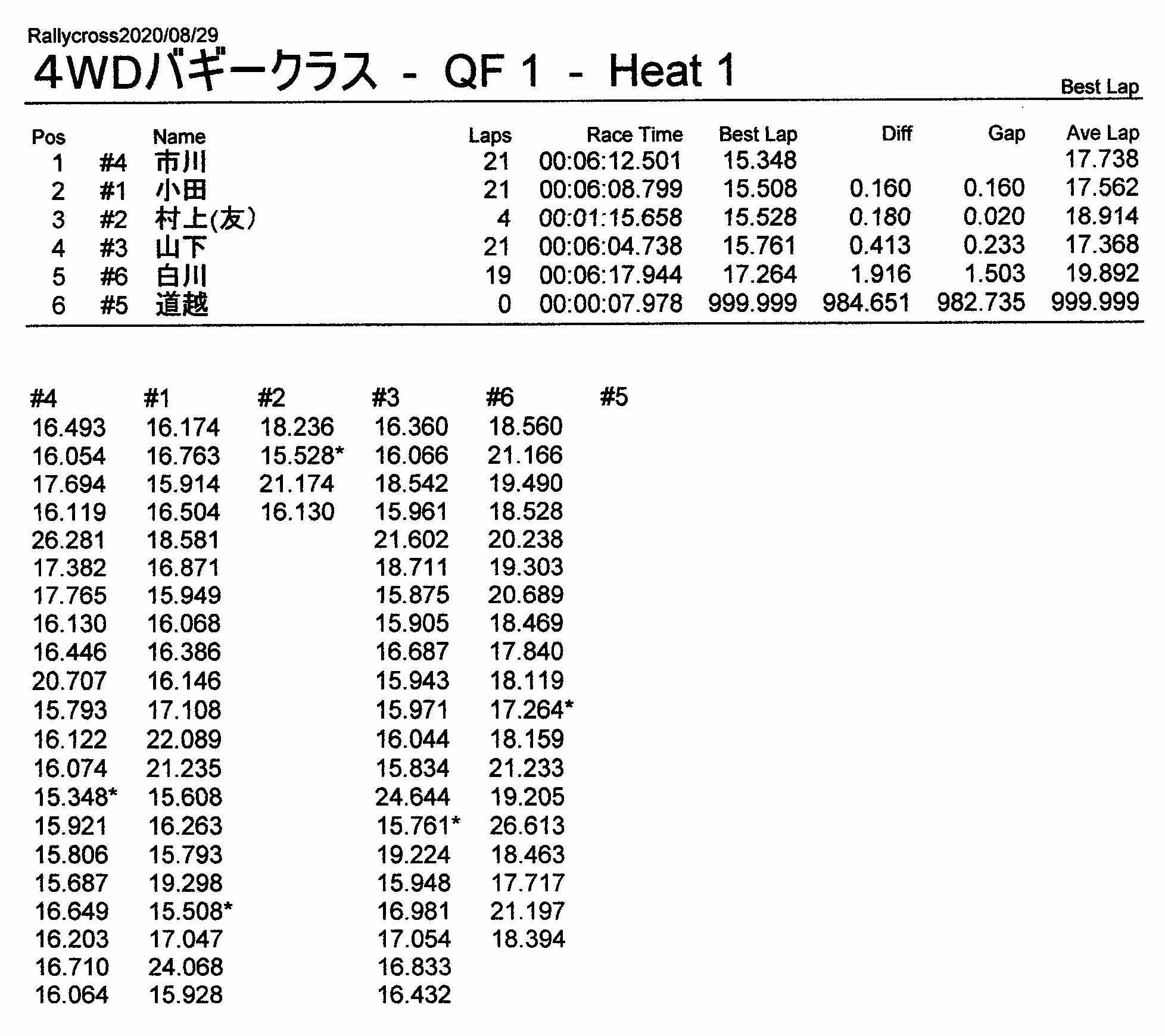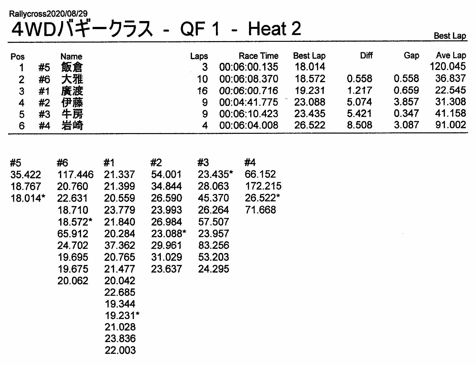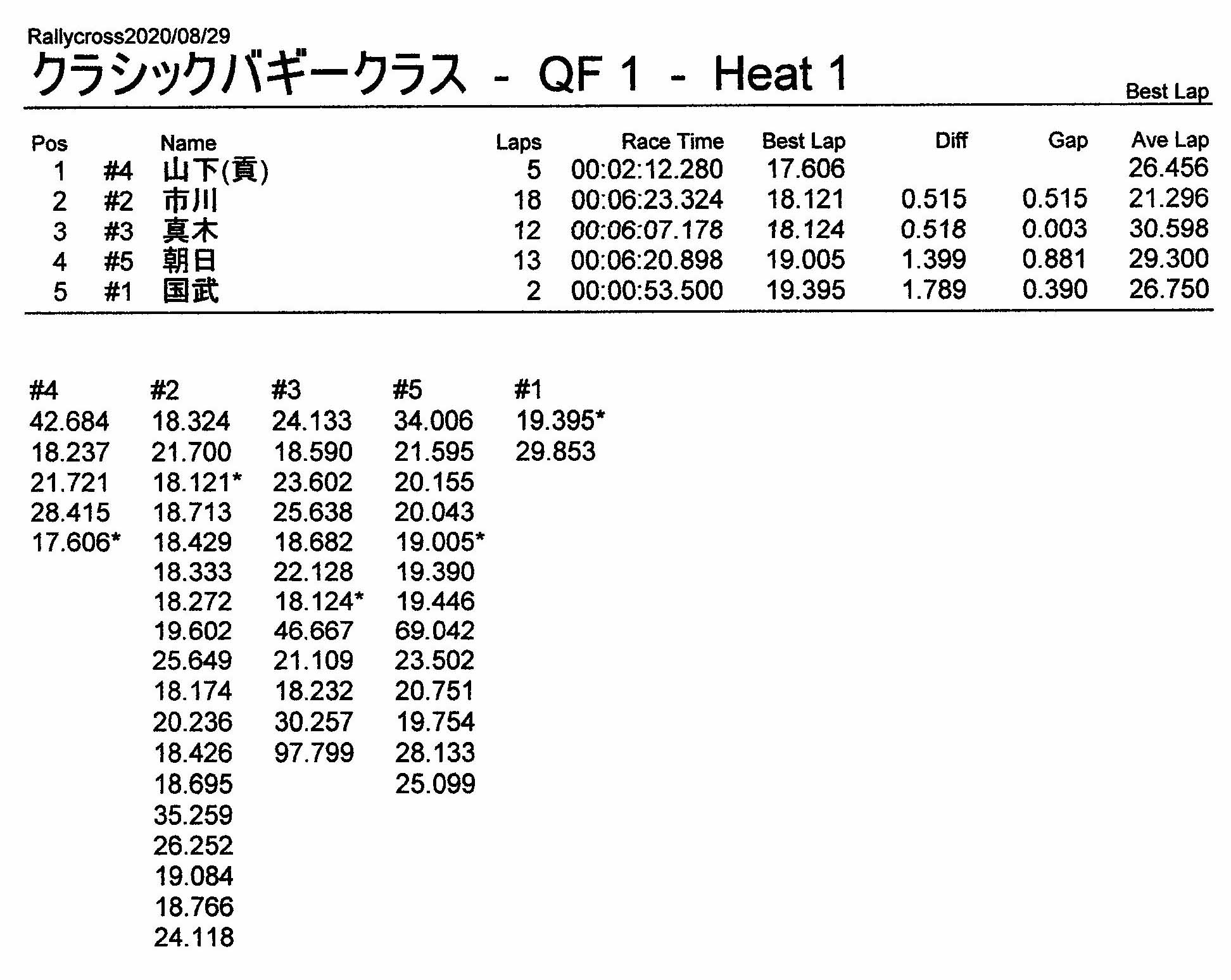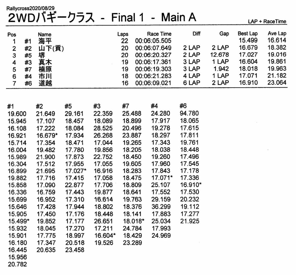 ラリークロスレース結果&動画 2021/8/29 公開日:2021年8月29日 レース結果 ラリークラス ラリークラスBメイン ラリークラスAメイン 2WDバギークラス 2WDバギークラスBメイン 機材不調により動画前半のみ 2WDバギークラスAメイン 機材不調により動画ありません。 4WDバギークラス 4WDバギークラスBメイン 4WDバギークラスAメイン クラシックバギークラス クラシックバギークラスBメイン クラシックバギークラスAメイン おまけ(予選リザルト) ラリークラス 2WDクラス 4WDクラス クラシックバギークラス 関連記事 ラリークロス結果&動画-2024-04-282月・月例レース結果&動画ラリークロスレース結果&動画 2021/412月の月例レースの結果ラリークロスを延期したのに、晴れたので模擬レース・結果月例レース結果・動画 2025/01/13 投稿ナビゲーション 7月・月例レース結果&動画9月・月例レース結果&動画