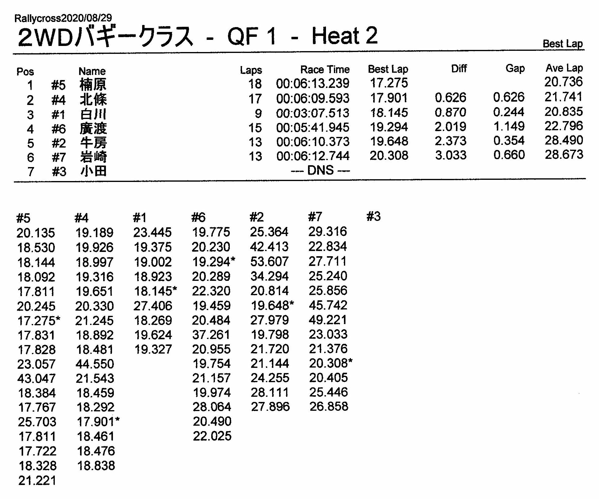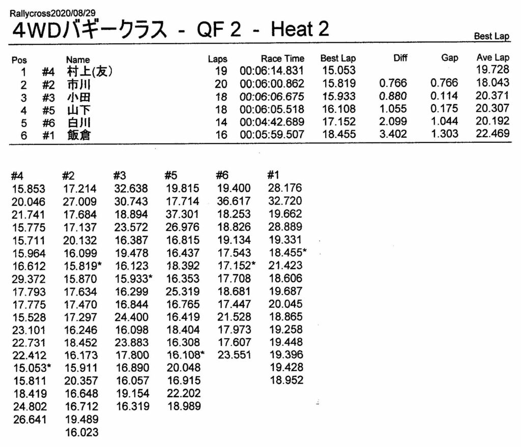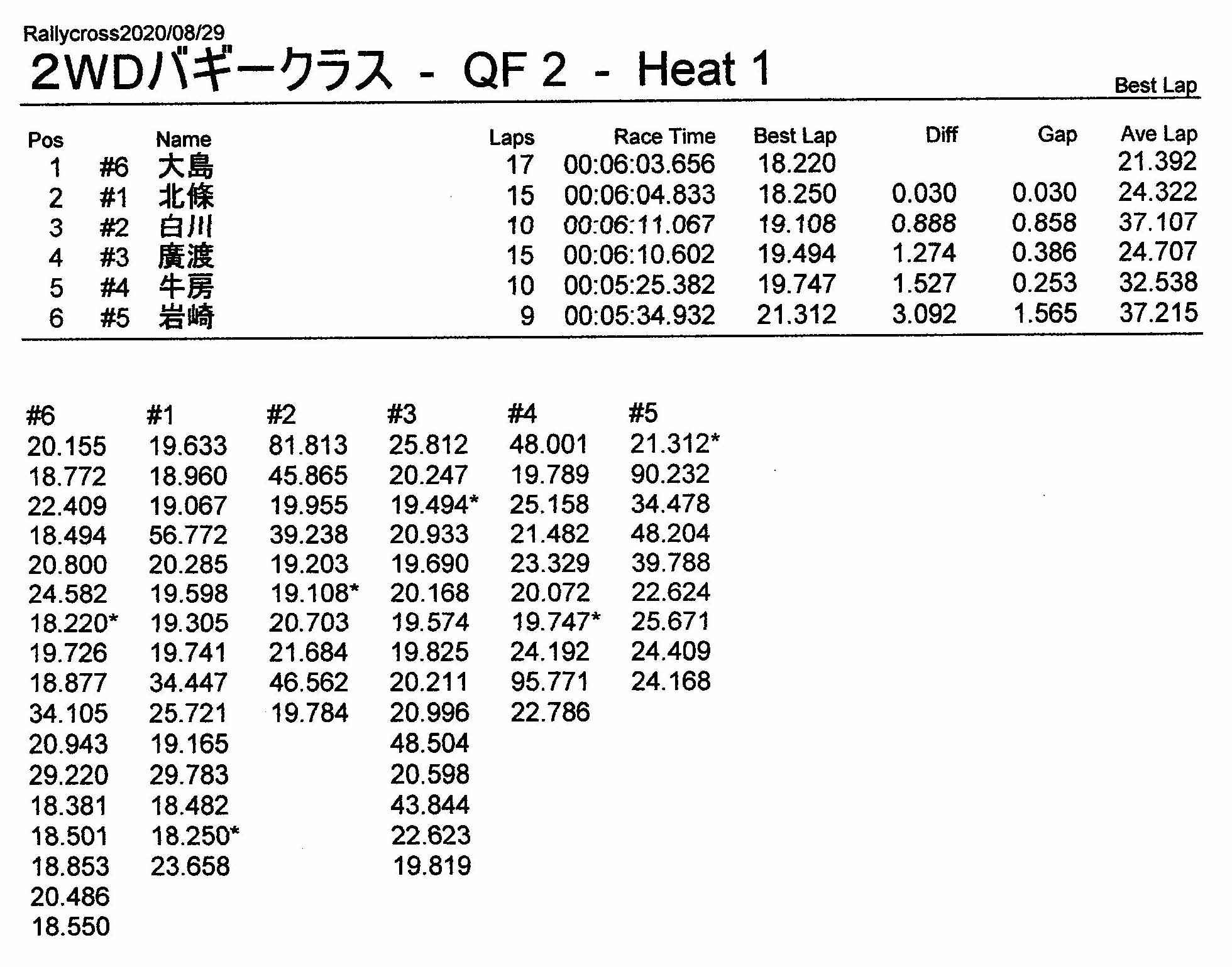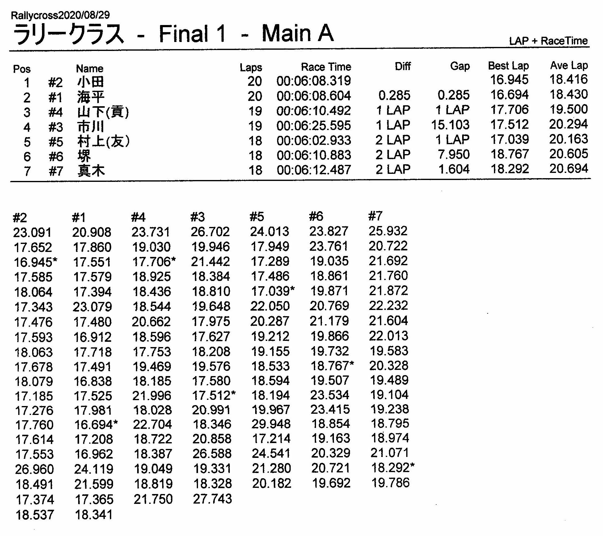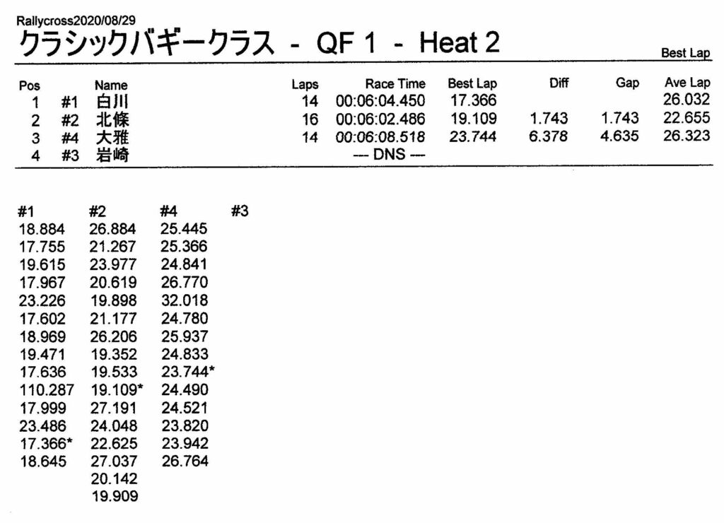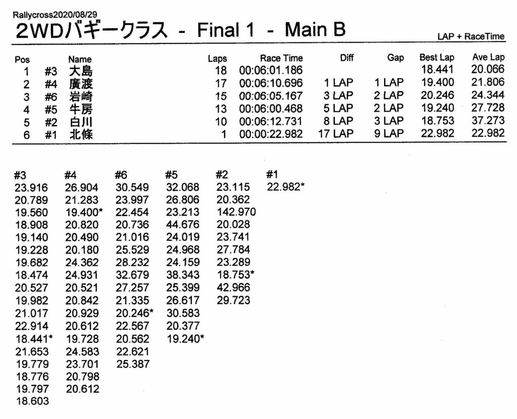 ラリークロスレース結果&動画 2021/8/29 公開日:2021年8月29日 レース結果 ラリークラス ラリークラスBメイン ラリークラスAメイン 2WDバギークラス 2WDバギークラスBメイン 機材不調により動画前半のみ 2WDバギークラスAメイン 機材不調により動画ありません。 4WDバギークラス 4WDバギークラスBメイン 4WDバギークラスAメイン クラシックバギークラス クラシックバギークラスBメイン クラシックバギークラスAメイン おまけ(予選リザルト) ラリークラス 2WDクラス 4WDクラス クラシックバギークラス 関連記事 ラリークロス結果&動画-2024-04-282月・月例レース結果&動画ラリークロスレース結果&動画 2021/412月の月例レースの結果ラリークロスを延期したのに、晴れたので模擬レース・結果月例レース結果・動画 2025/01/13 投稿ナビゲーション 7月・月例レース結果&動画9月・月例レース結果&動画