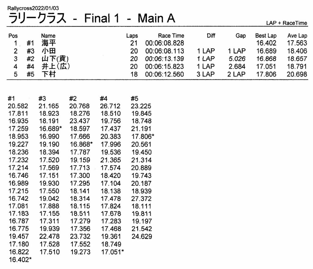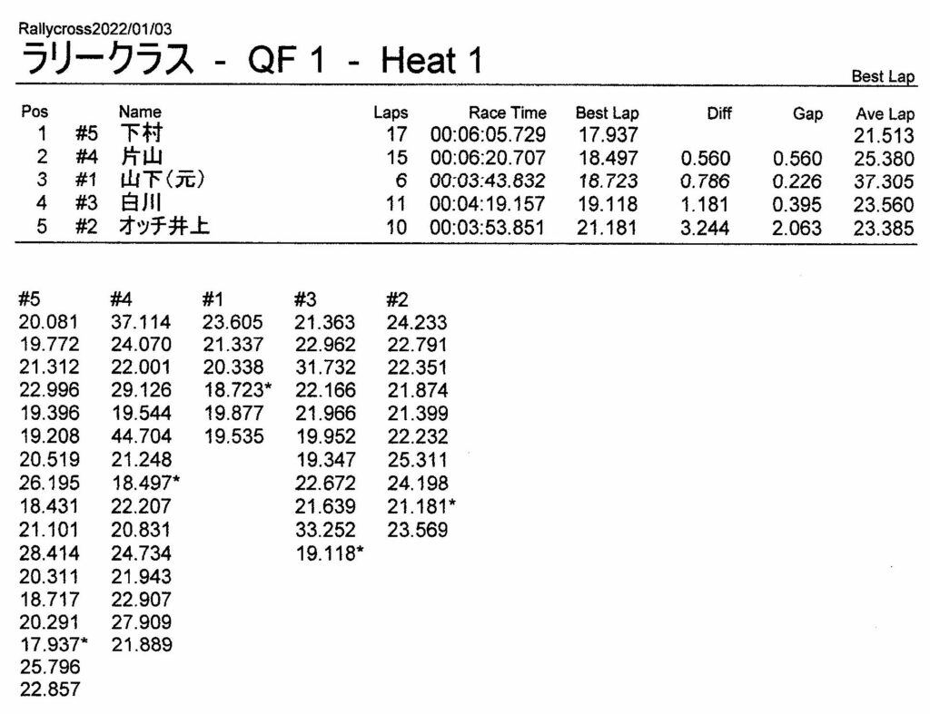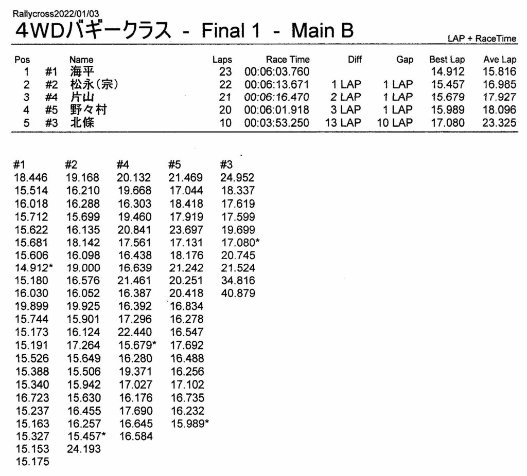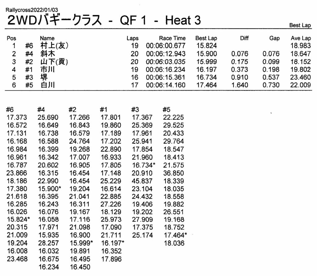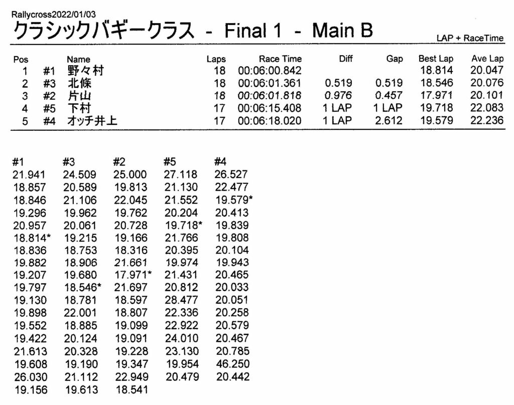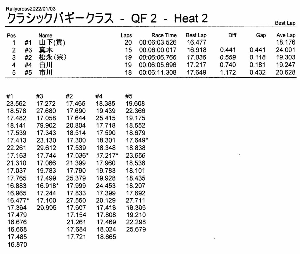 ラリークロスレース結果&動画 2022/1/3 公開日:2022年1月3日 レース結果 ラリークラス ラリークラスCメイン ラリークラスBメイン ラリークラスAメイン 2WDバギークラス 2WDバギークラスCメイン 2WDバギークラスBメイン 2WDバギークラスAメイン 4WDバギークラス 4WDバギークラスCメイン 4WDバギークラスBメイン 4WDバギークラスAメイン クラシックバギークラス クラシックバギークラスBメイン クラシックバギークラスAメイン おまけ(予選リザルト) ラリークラス 2WDクラス 4WDクラス クラシックバギークラス 関連記事 3月・月例レース結果・動画ラリークロスレース結果&動画 2021/61月の月例レース結果・動画11月の月例レースの結果月例レース結果 ・動画 2024/04/142020年5月ミニ3時間耐久レース結果 投稿ナビゲーション 12月・月例レース結果&動画1月・月例レース結果&動画
