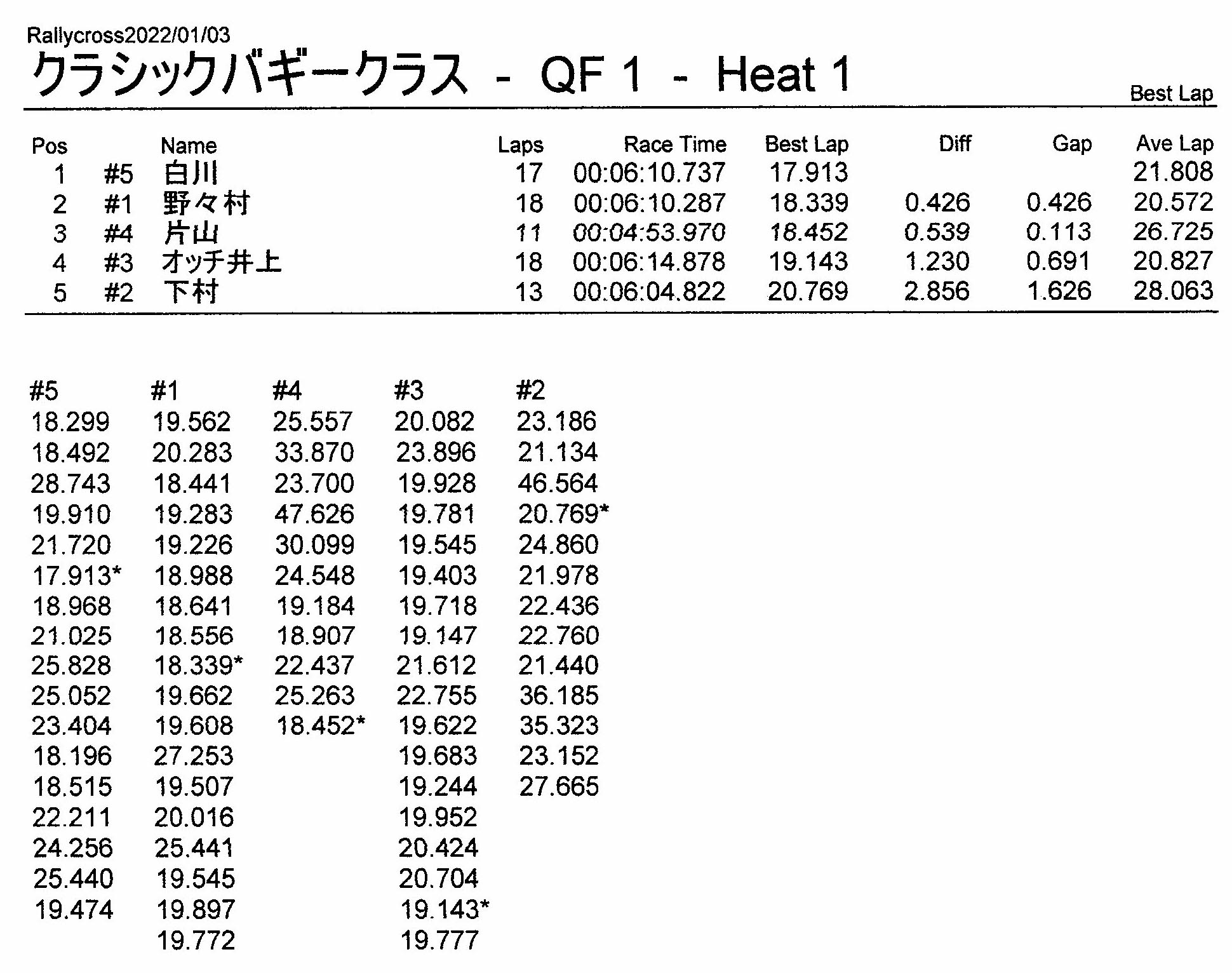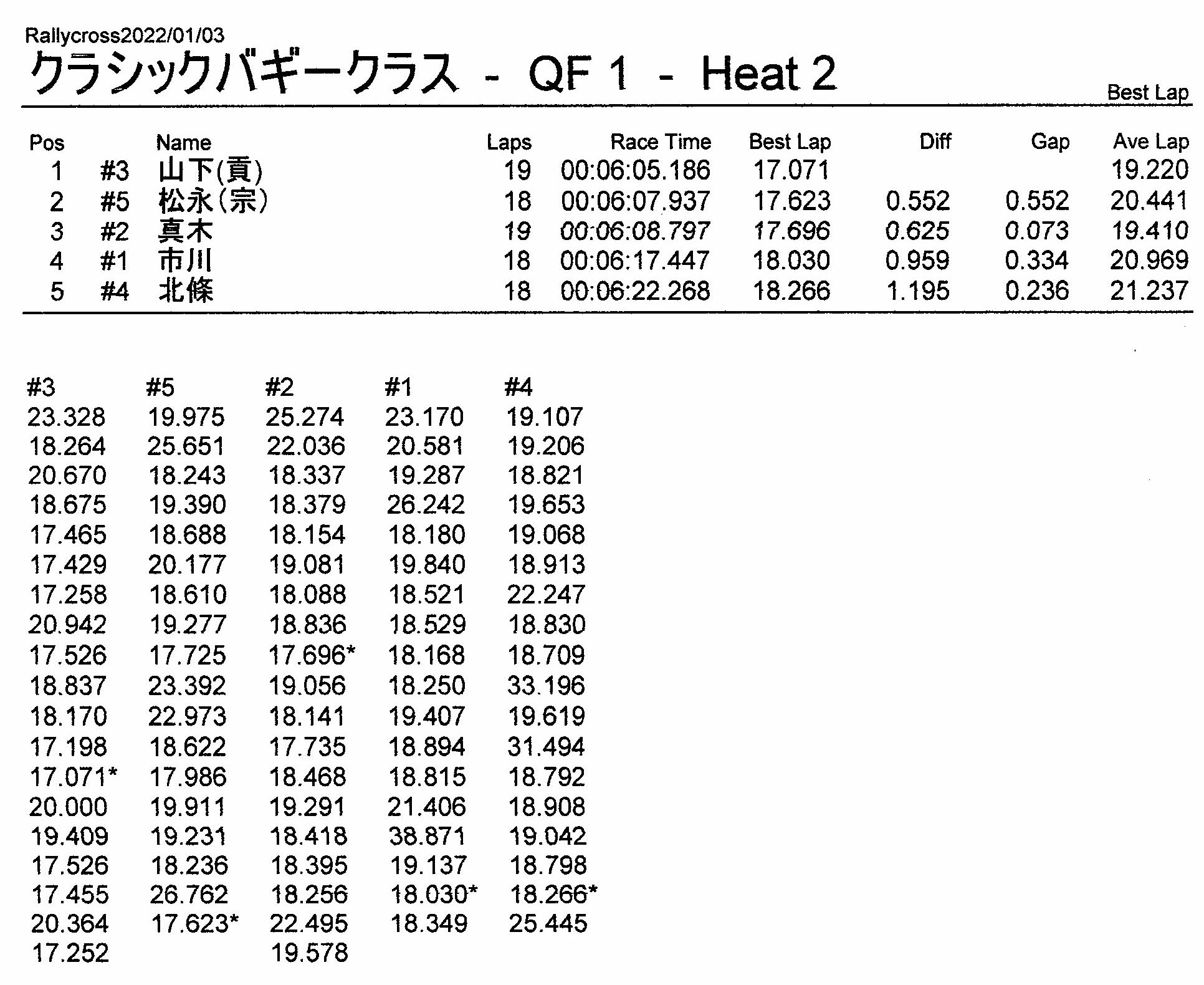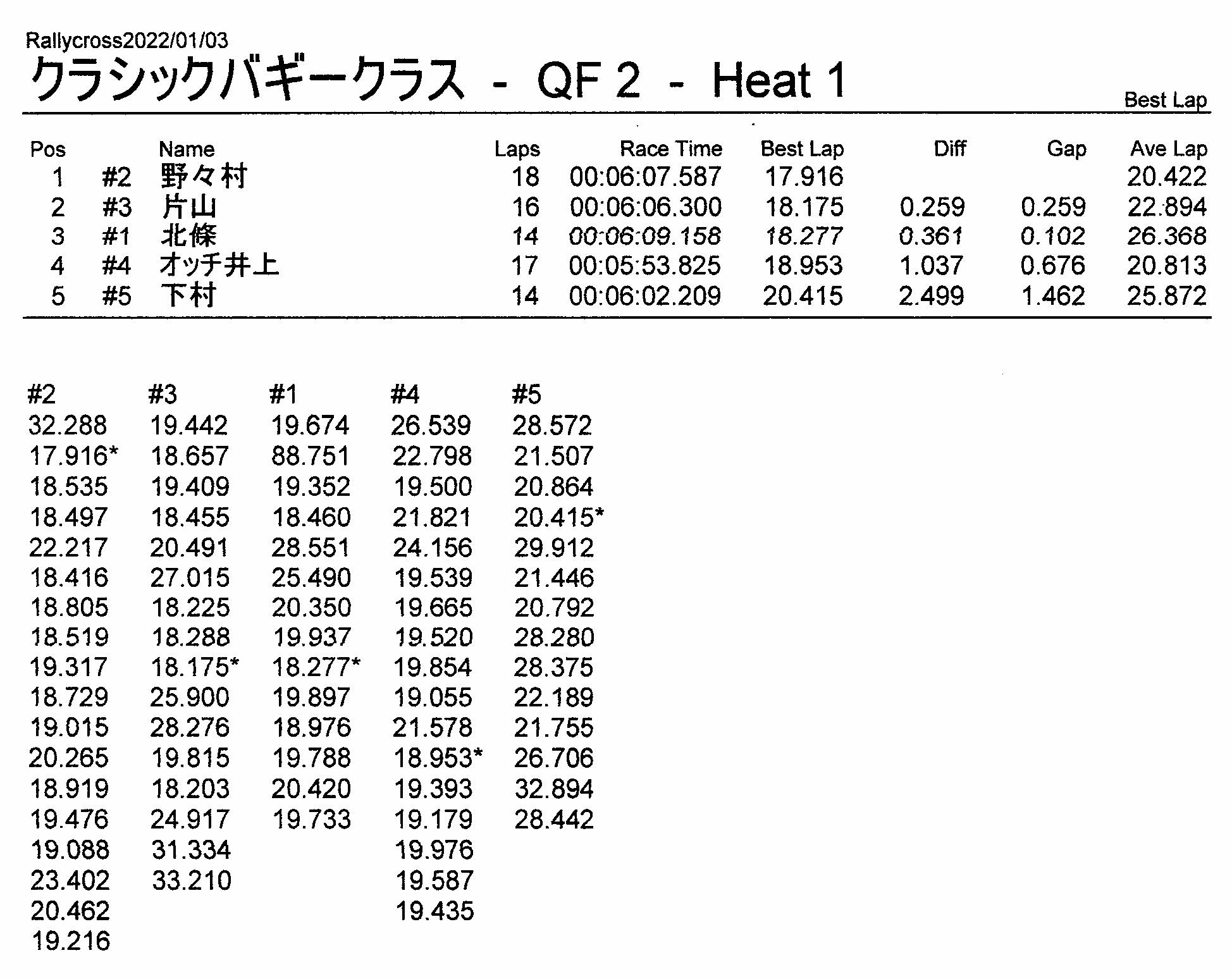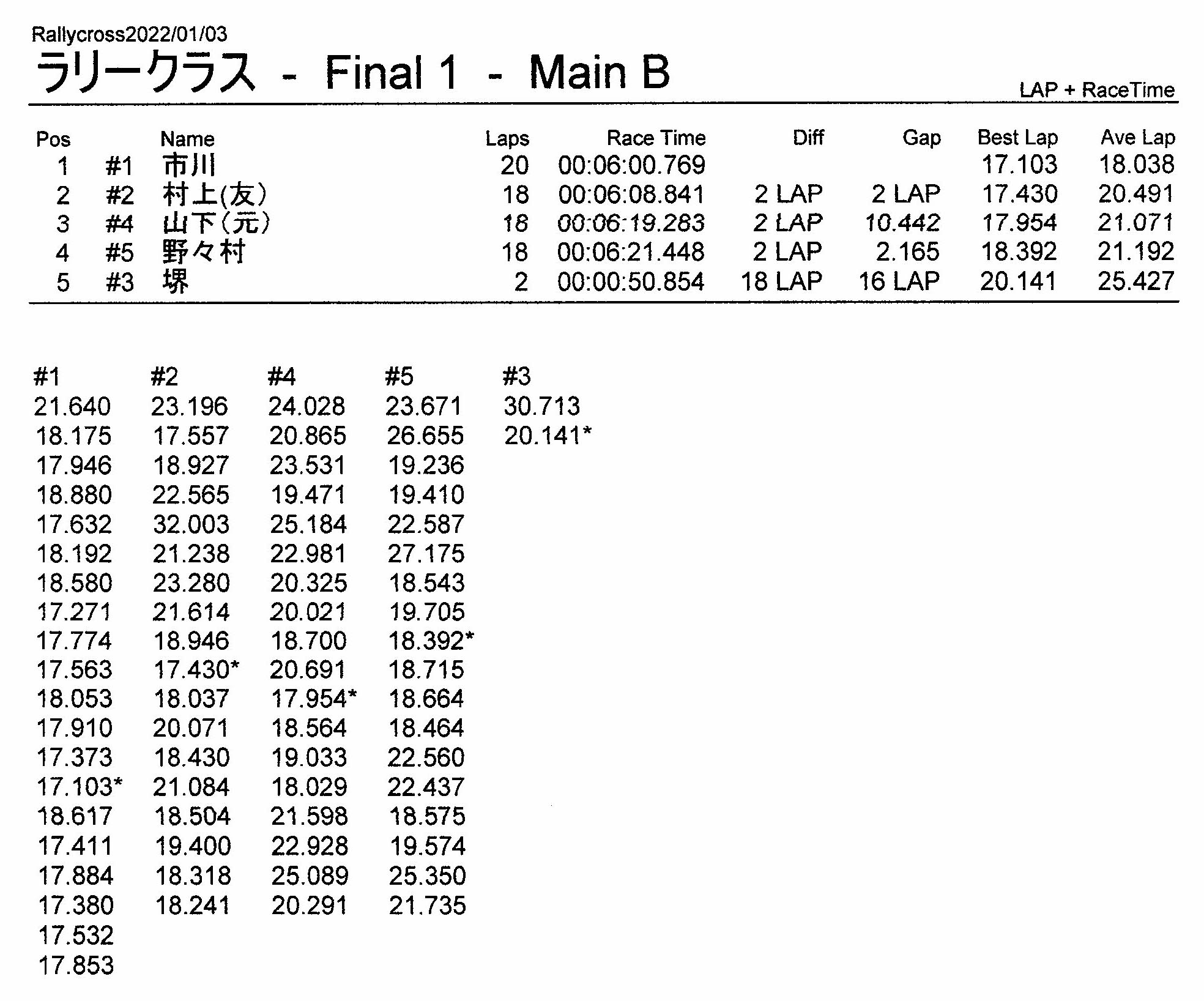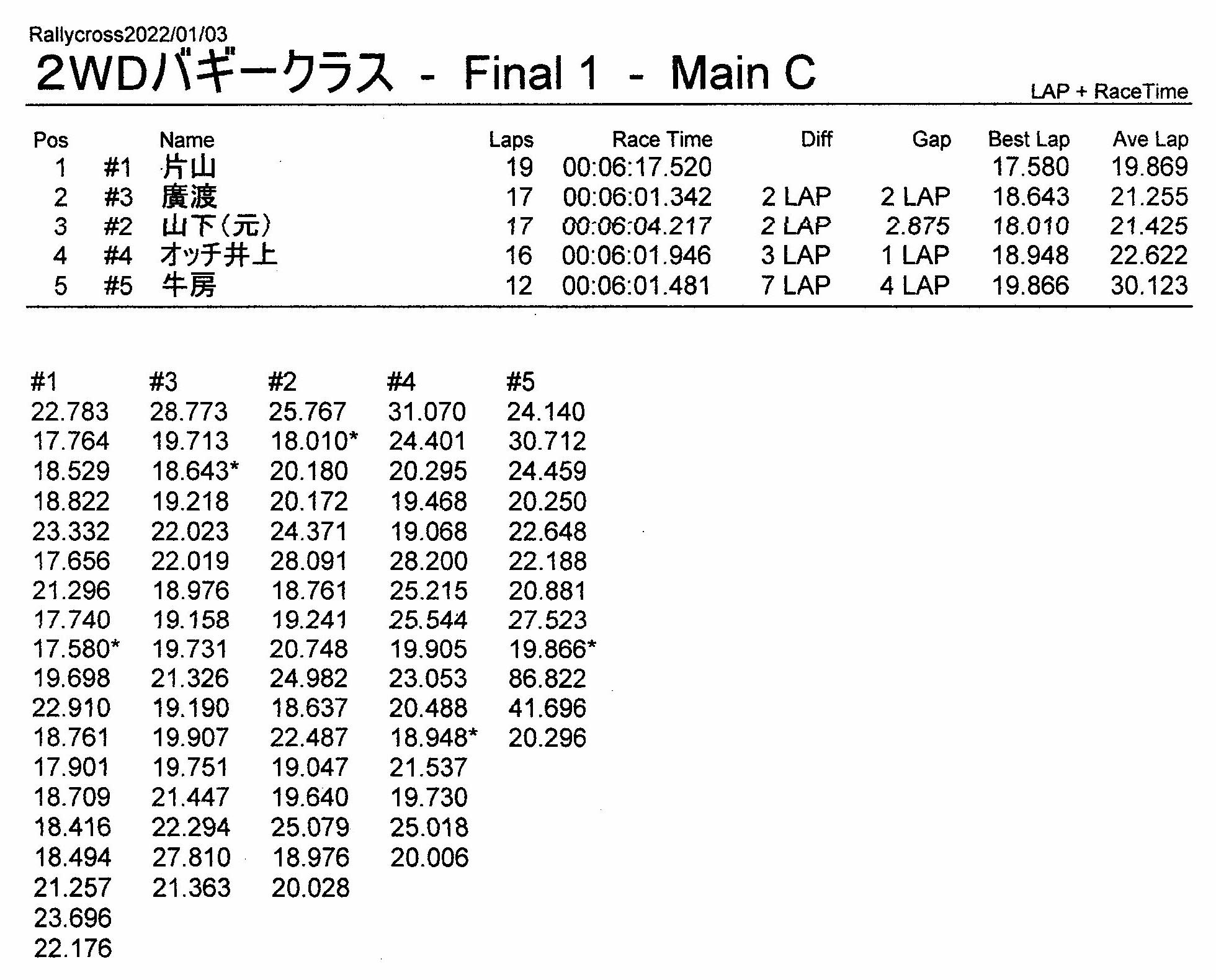 ラリークロスレース結果&動画 2022/1/3 公開日:2022年1月3日 レース結果 ラリークラス ラリークラスCメイン ラリークラスBメイン ラリークラスAメイン 2WDバギークラス 2WDバギークラスCメイン 2WDバギークラスBメイン 2WDバギークラスAメイン 4WDバギークラス 4WDバギークラスCメイン 4WDバギークラスBメイン 4WDバギークラスAメイン クラシックバギークラス クラシックバギークラスBメイン クラシックバギークラスAメイン おまけ(予選リザルト) ラリークラス 2WDクラス 4WDクラス クラシックバギークラス 関連記事 3月・月例レース結果・動画ラリークロスレース結果&動画 2021/61月の月例レース結果・動画11月の月例レースの結果月例レース結果 ・動画 2024/04/142020年5月ミニ3時間耐久レース結果 投稿ナビゲーション 12月・月例レース結果&動画1月・月例レース結果&動画