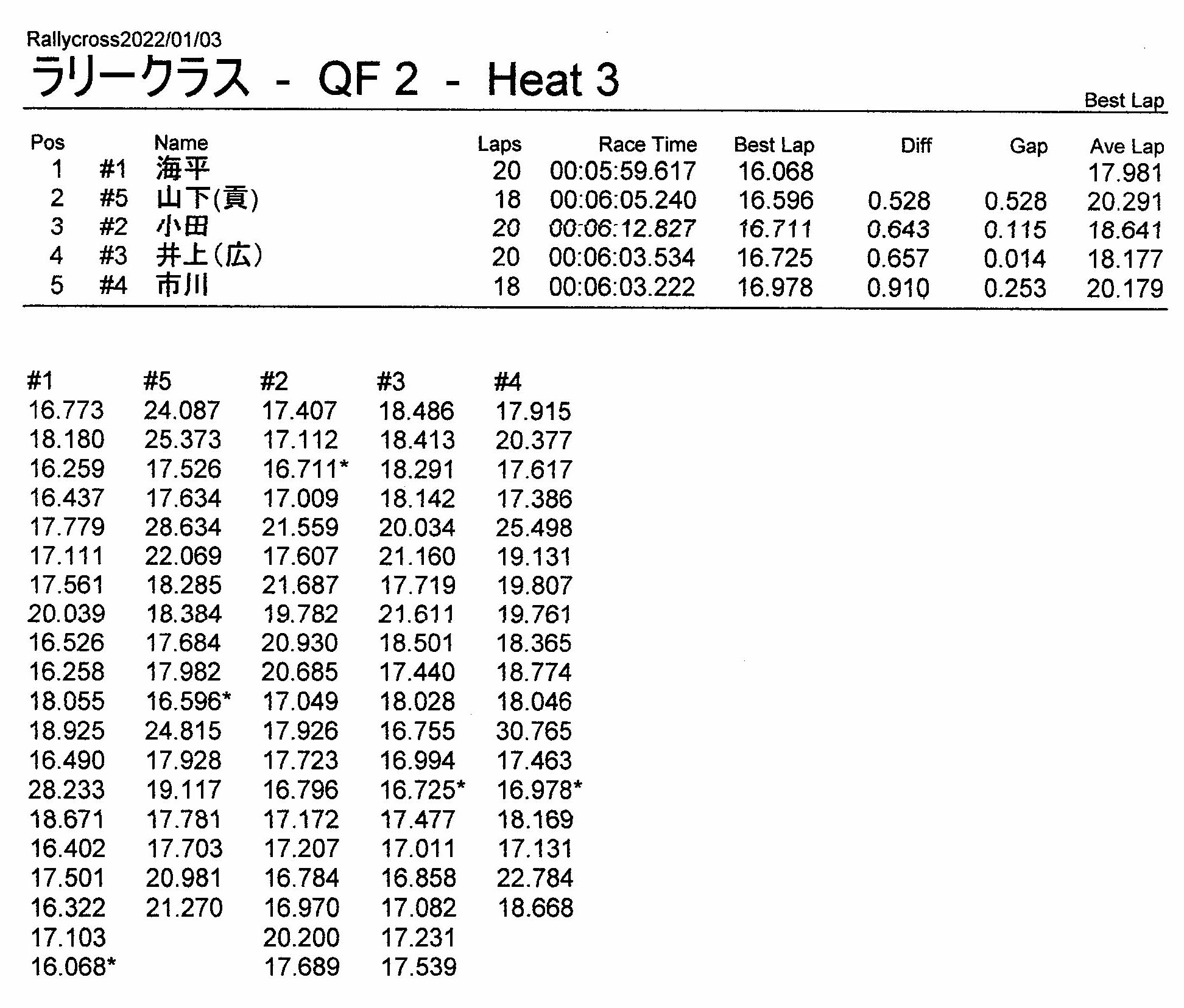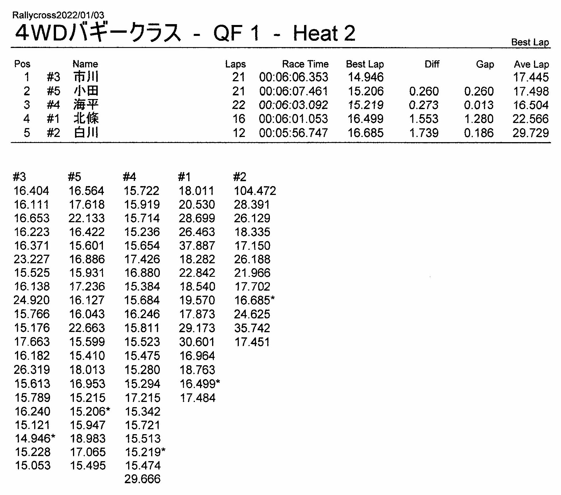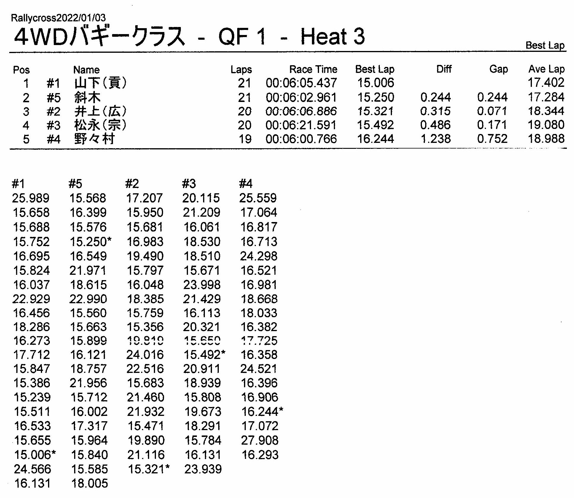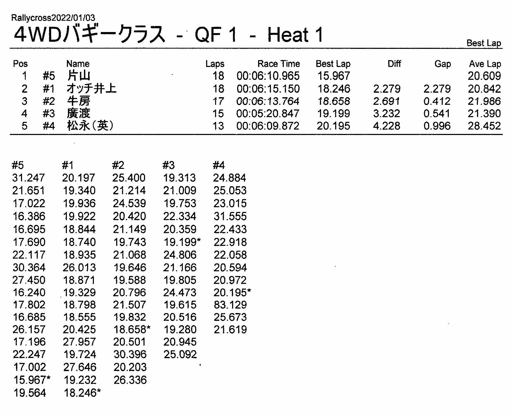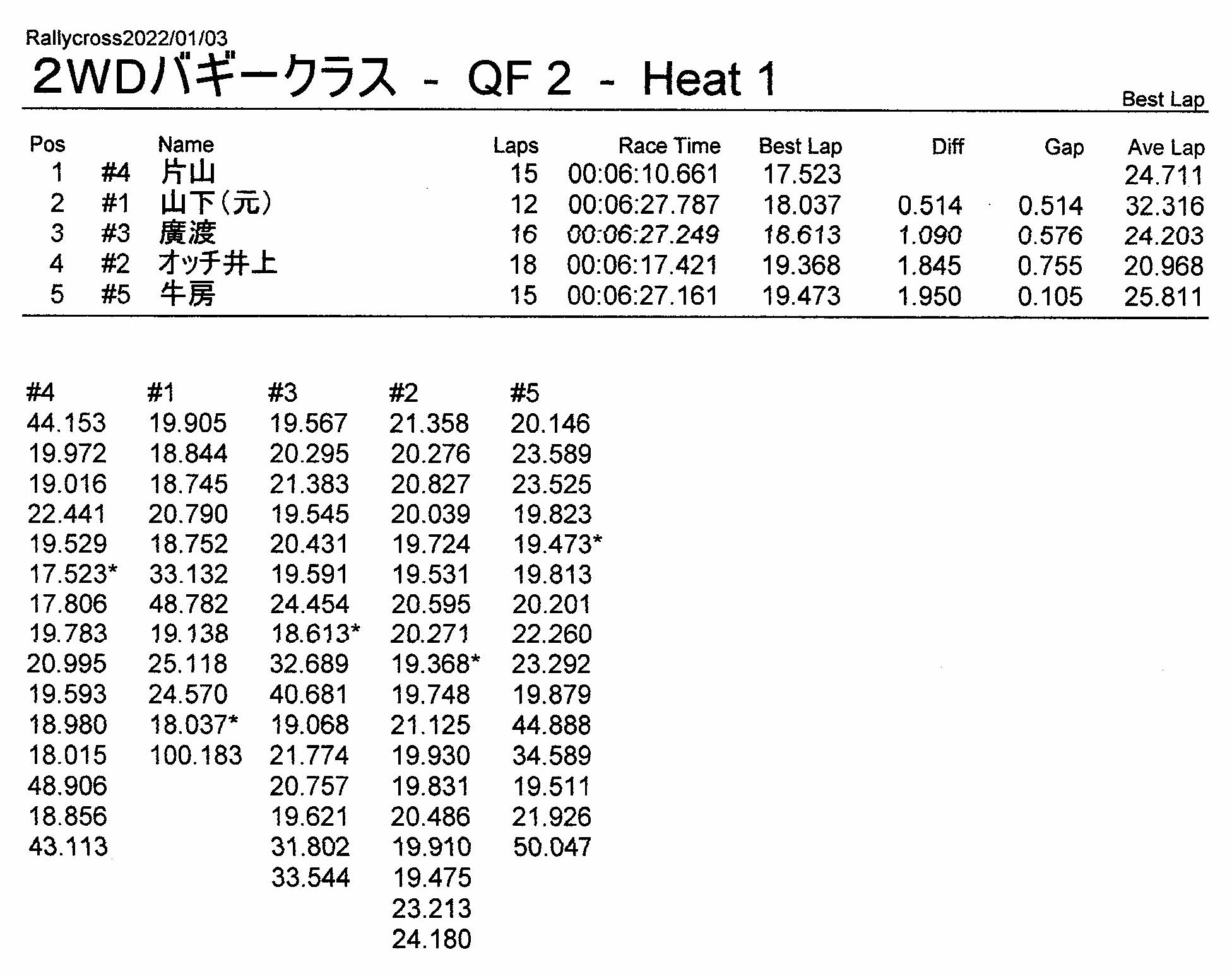 ラリークロスレース結果&動画 2022/1/3 公開日:2022年1月3日 レース結果 ラリークラス ラリークラスCメイン ラリークラスBメイン ラリークラスAメイン 2WDバギークラス 2WDバギークラスCメイン 2WDバギークラスBメイン 2WDバギークラスAメイン 4WDバギークラス 4WDバギークラスCメイン 4WDバギークラスBメイン 4WDバギークラスAメイン クラシックバギークラス クラシックバギークラスBメイン クラシックバギークラスAメイン おまけ(予選リザルト) ラリークラス 2WDクラス 4WDクラス クラシックバギークラス 関連記事 3月・月例レース結果・動画ラリークロスレース結果&動画 2021/61月の月例レース結果・動画11月の月例レースの結果月例レース結果 ・動画 2024/04/142020年5月ミニ3時間耐久レース結果 投稿ナビゲーション 12月・月例レース結果&動画1月・月例レース結果&動画