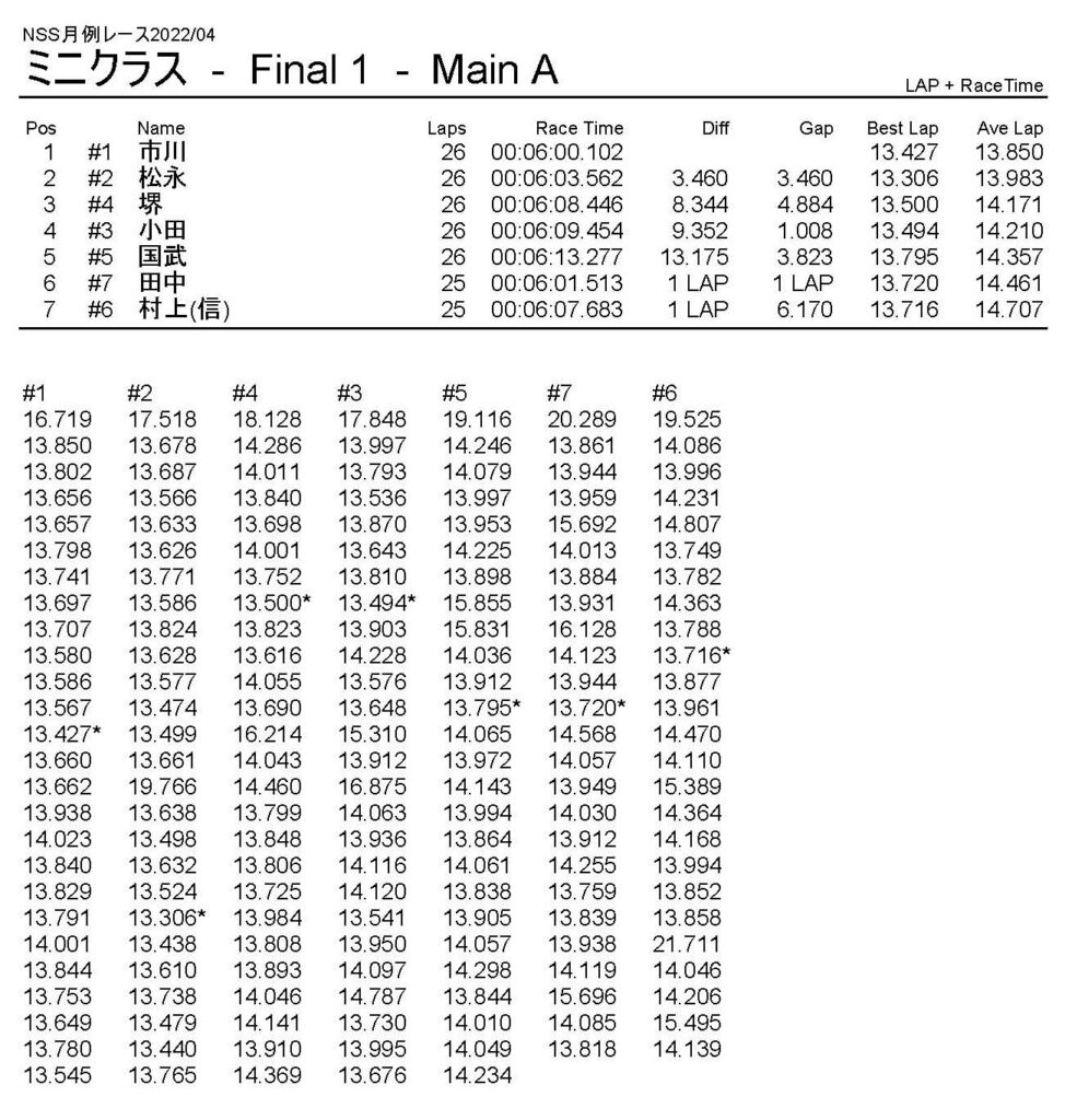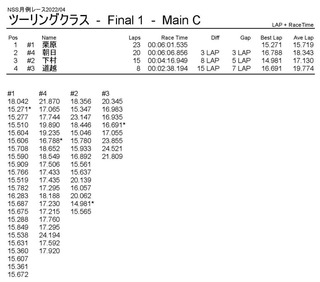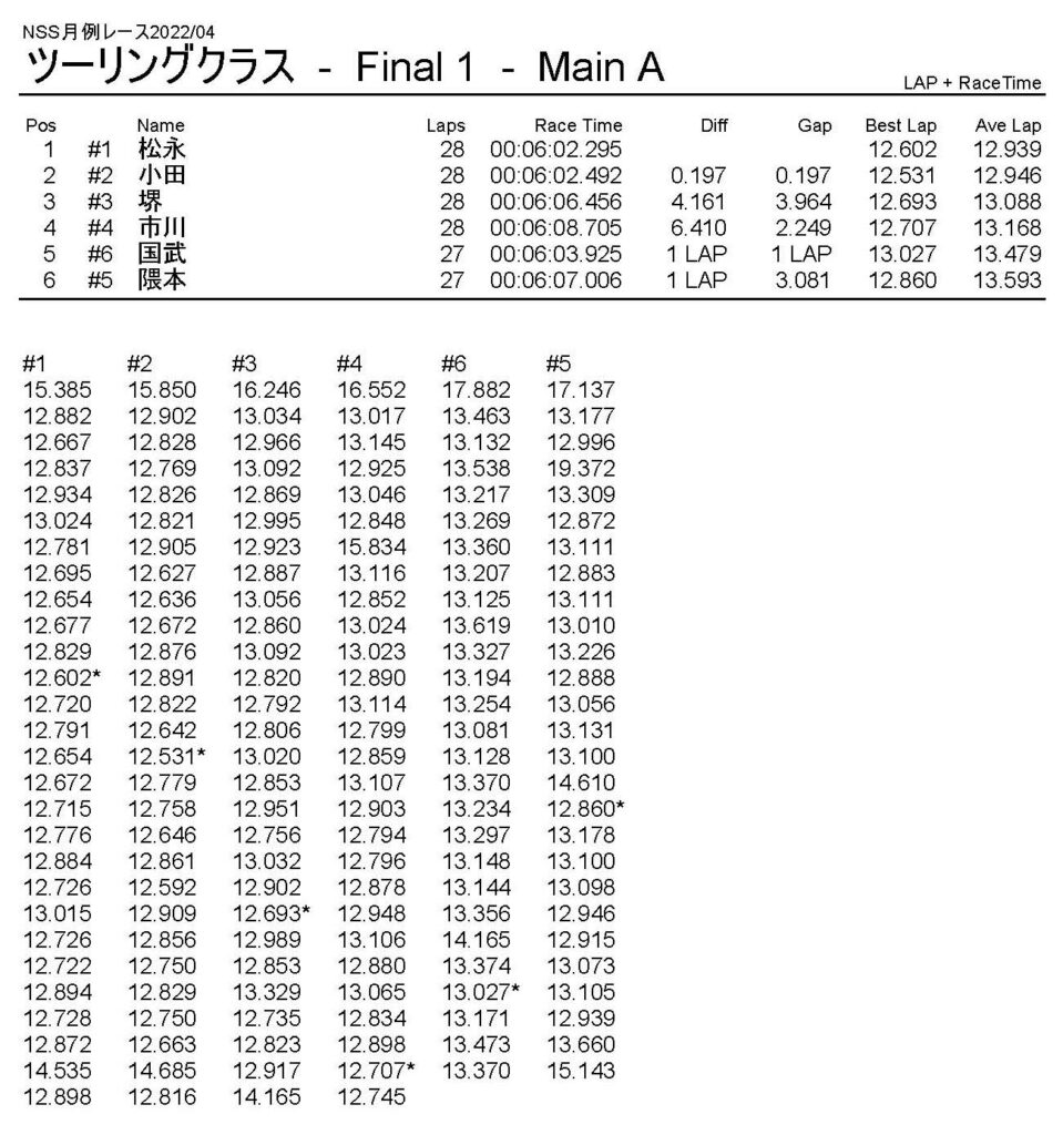 4月・月例レース結果&動画 公開日:2022年4月10日 レース結果 ミニクラス ミニクラスBメイン ミニクラスAメイン F-1クラスAメイン ツーリングクラス ツーリングクラスCメイン ツーリングクラスBメイン ツーリングクラスAメイン フォーミュラEクラス フォーミュラEクラスBメイン フォーミュラEクラスAメイン おまけ(予選リザルト) ミニクラス F-1クラス ツーリングクラス フォーミュラEクラス 関連記事 ラリークロスレース結果&動画-2023-10-22ラリークロスレース結果&動画 2022/8/2810月の月例レース結果&動画11月・月例レース結果&動画ラリークロス結果&動画-2025-01-03ラリークロス結果&動画-2024-04-28 投稿ナビゲーション 3月・月例レース結果&動画ラリークロスレース結果&動画 2022/4/24