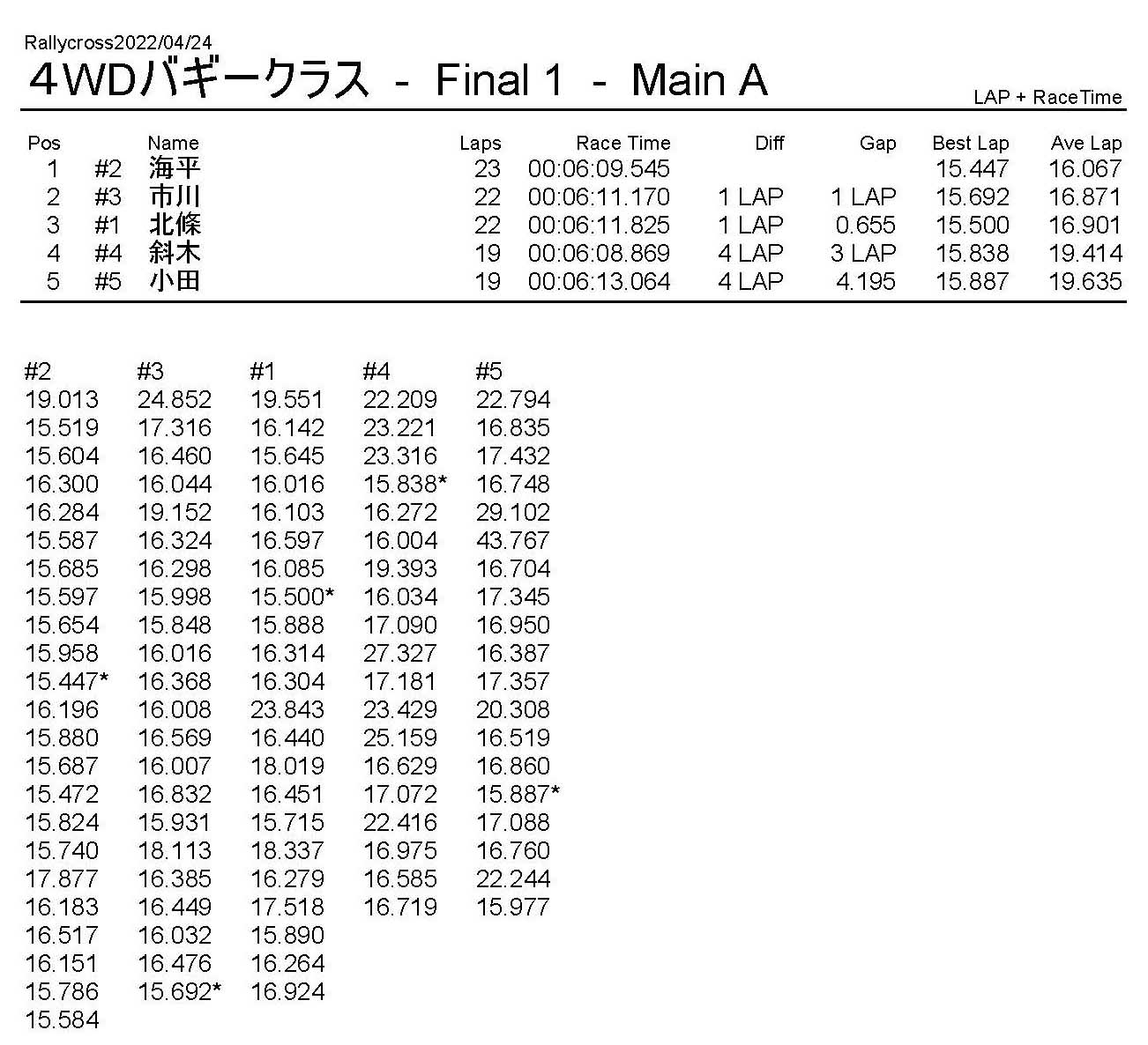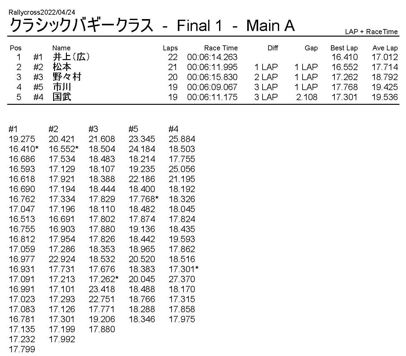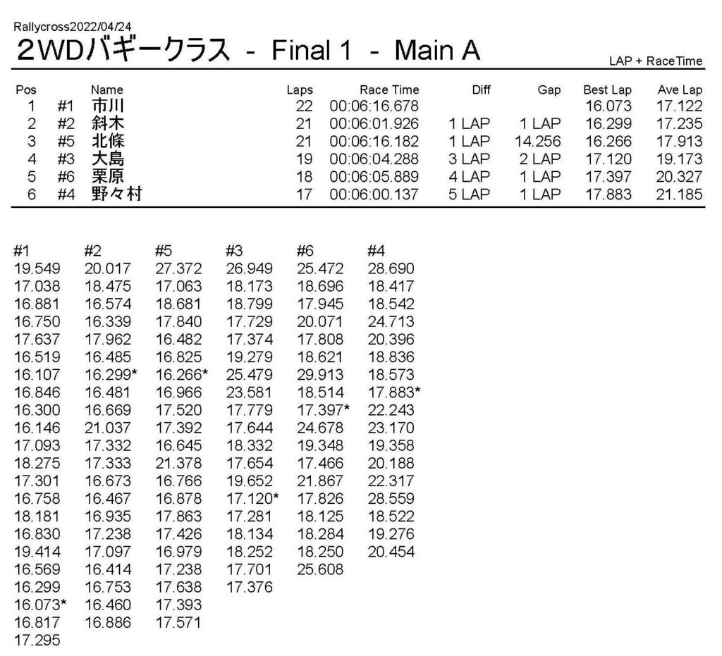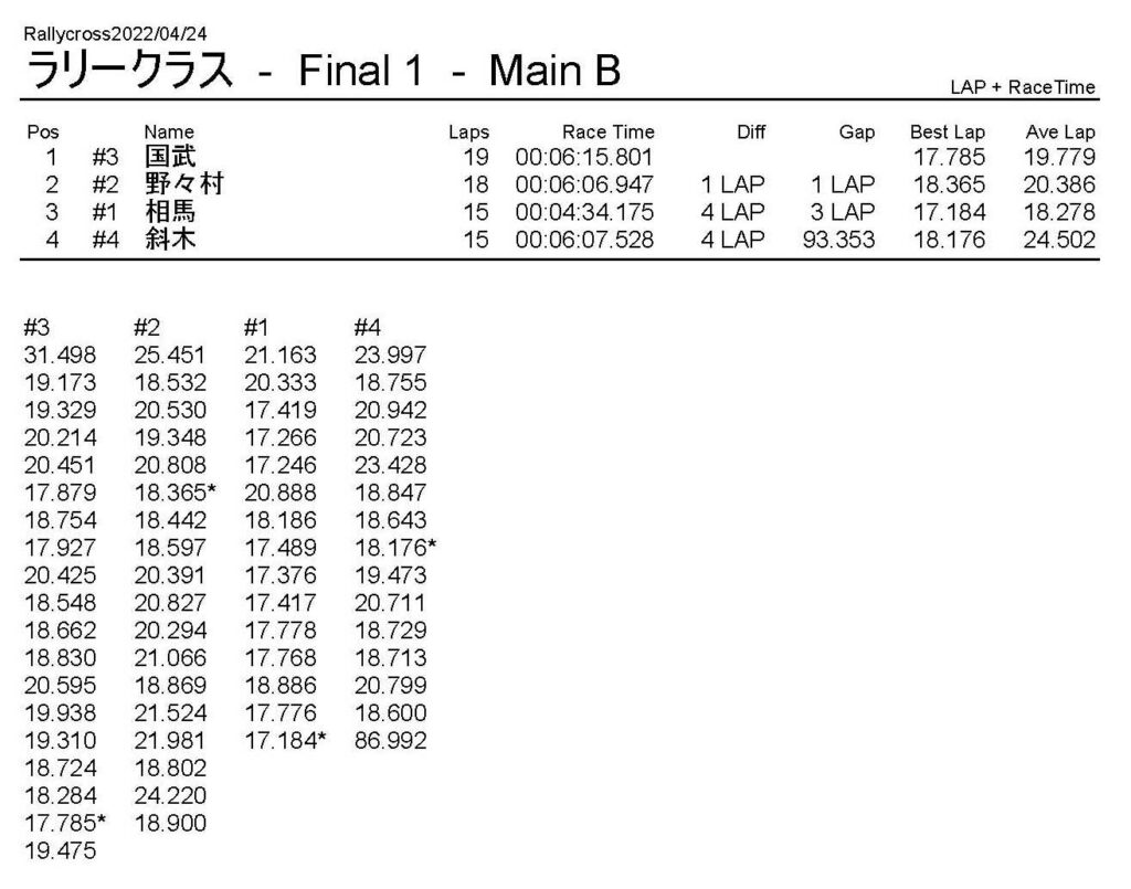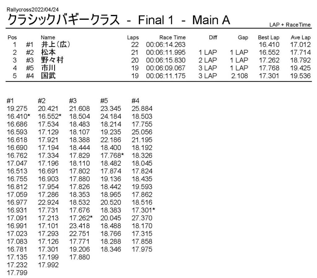 ラリークロスレース結果&動画 2022/4/24 公開日:2022年4月24日 レース結果 ラリークラス ラリークラスCメイン ラリークラスBメイン ラリークラスAメイン 2WDバギークラス 2WDバギークラスBメイン 2WDバギークラスAメイン 4WDバギークラス 4WDバギークラスBメイン 4WDバギークラスAメイン クラシックバギークラス クラシックバギークラスBメイン クラシックバギークラスAメイン おまけ(予選リザルト) ラリークラス 2WDクラス 4WDクラス クラシックバギークラス 関連記事 ラリークロスレース結果&動画2021/2ラリークロスレース結果&動画 2023/3/511月・月例レース結果&動画8月・月例レース結果&動画9月・月例レース結果&動画月例レース結果 ・動画 2024/06/02 投稿ナビゲーション 4月・月例レース結果&動画2022年5月ミニ3時間耐久レース結果