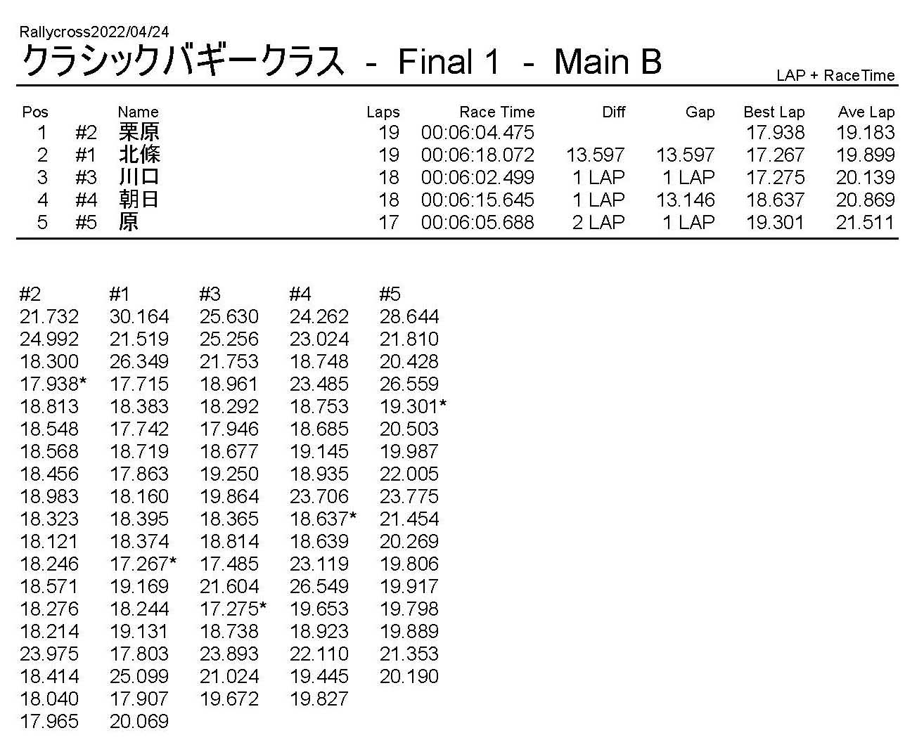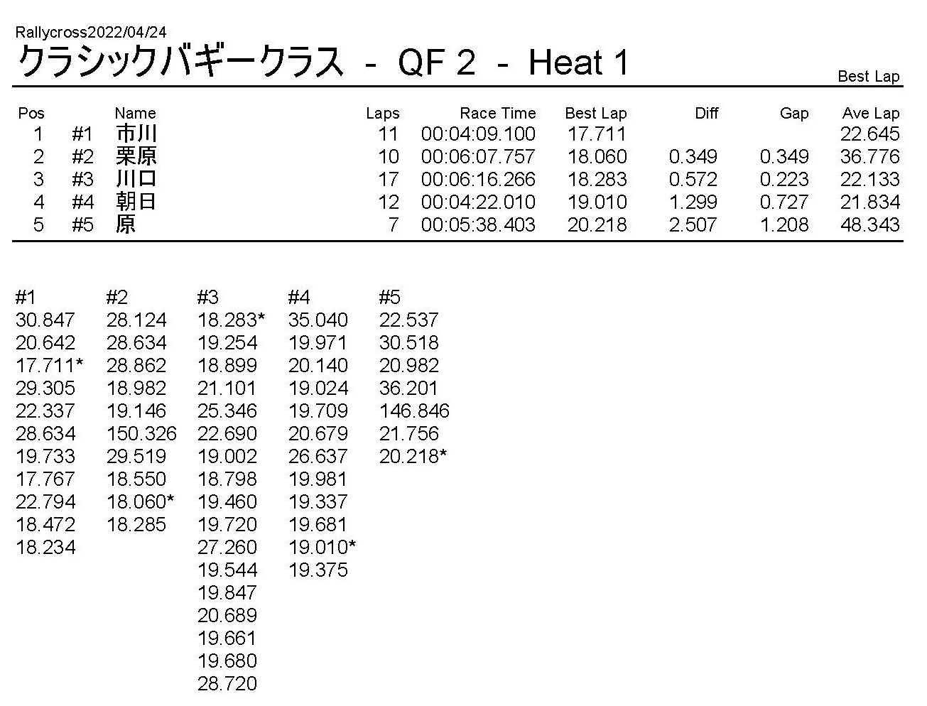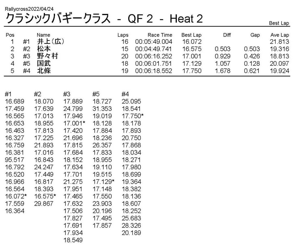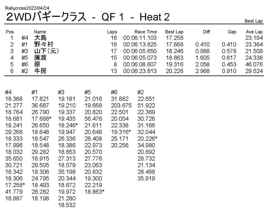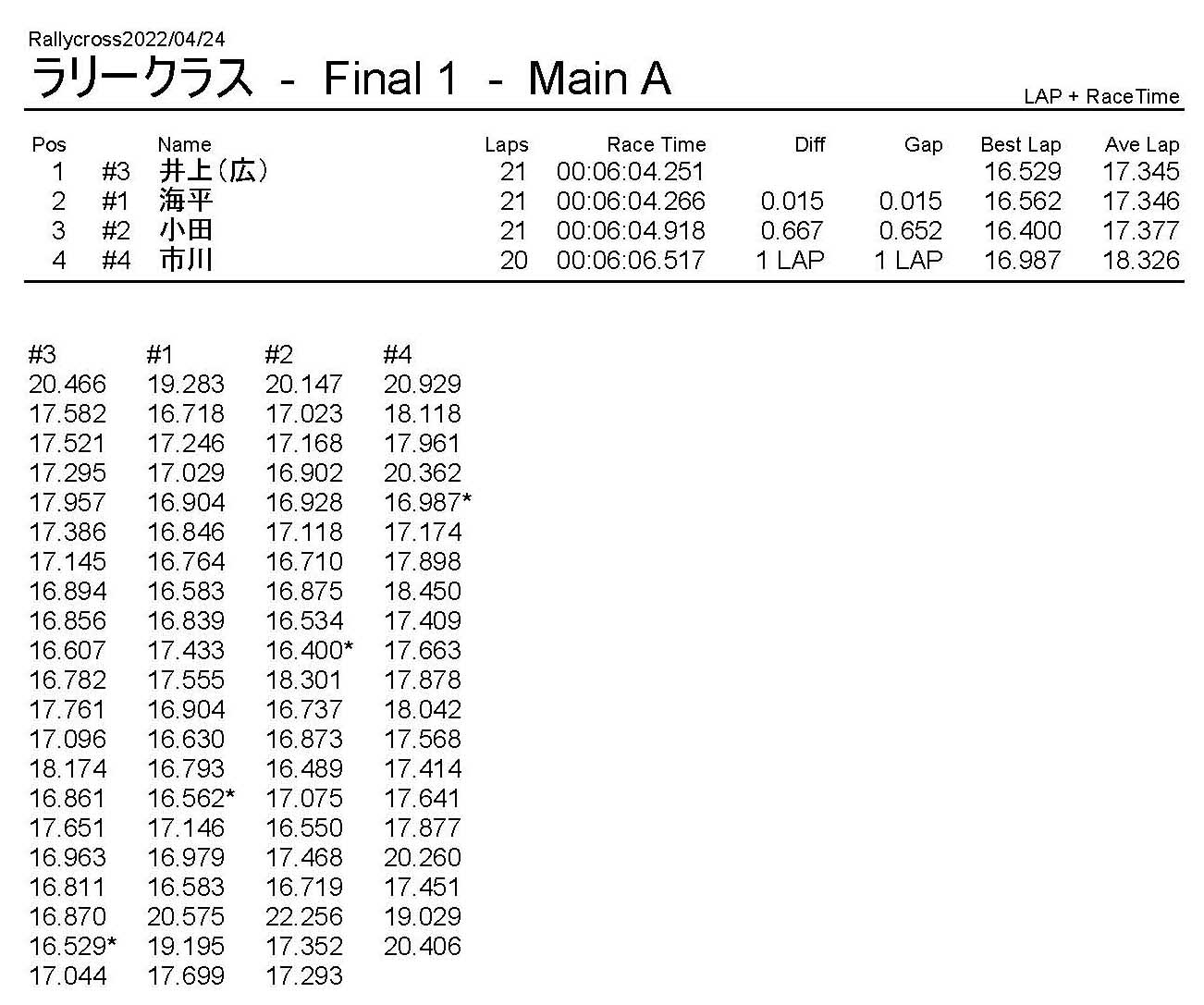 ラリークロスレース結果&動画 2022/4/24 公開日:2022年4月24日 レース結果 ラリークラス ラリークラスCメイン ラリークラスBメイン ラリークラスAメイン 2WDバギークラス 2WDバギークラスBメイン 2WDバギークラスAメイン 4WDバギークラス 4WDバギークラスBメイン 4WDバギークラスAメイン クラシックバギークラス クラシックバギークラスBメイン クラシックバギークラスAメイン おまけ(予選リザルト) ラリークラス 2WDクラス 4WDクラス クラシックバギークラス 関連記事 ラリークロスレース結果&動画2021/2ラリークロスレース結果&動画 2023/3/511月・月例レース結果&動画8月・月例レース結果&動画9月・月例レース結果&動画月例レース結果 ・動画 2024/06/02 投稿ナビゲーション 4月・月例レース結果&動画2022年5月ミニ3時間耐久レース結果