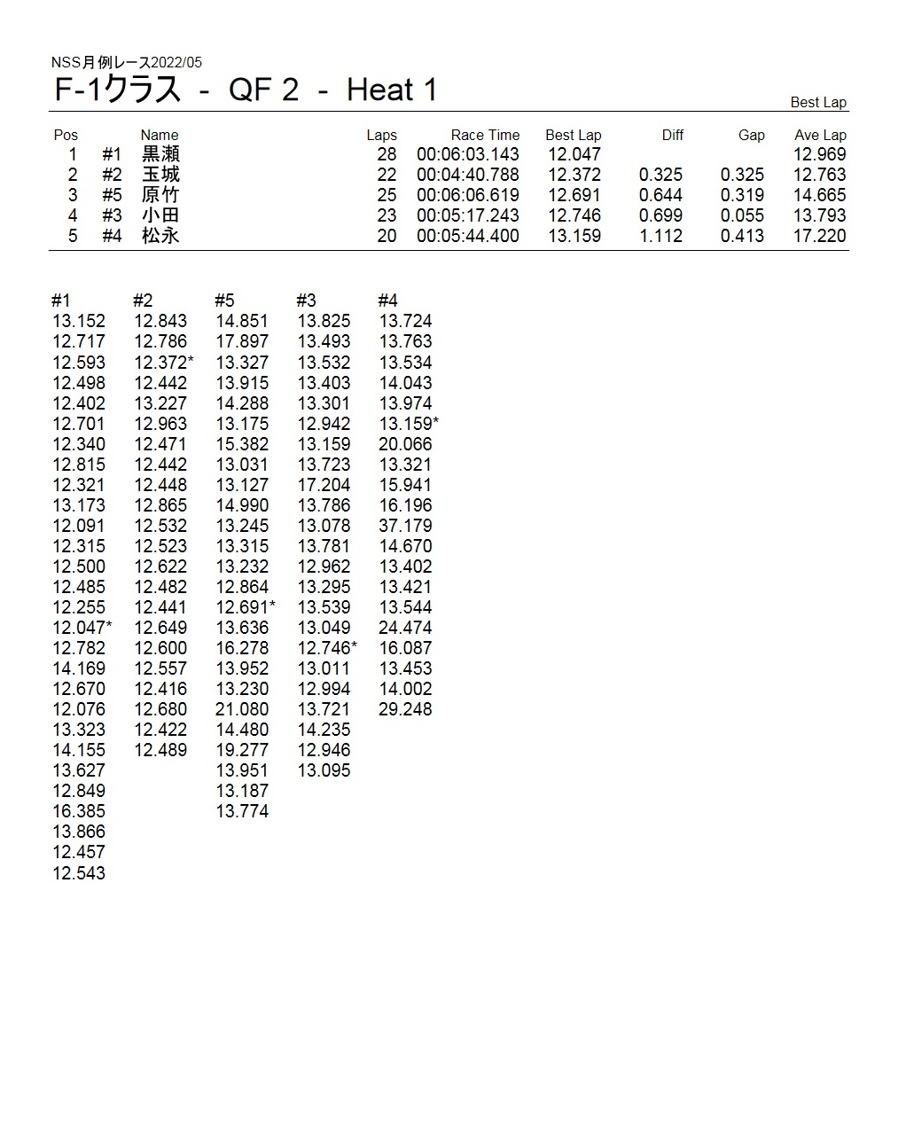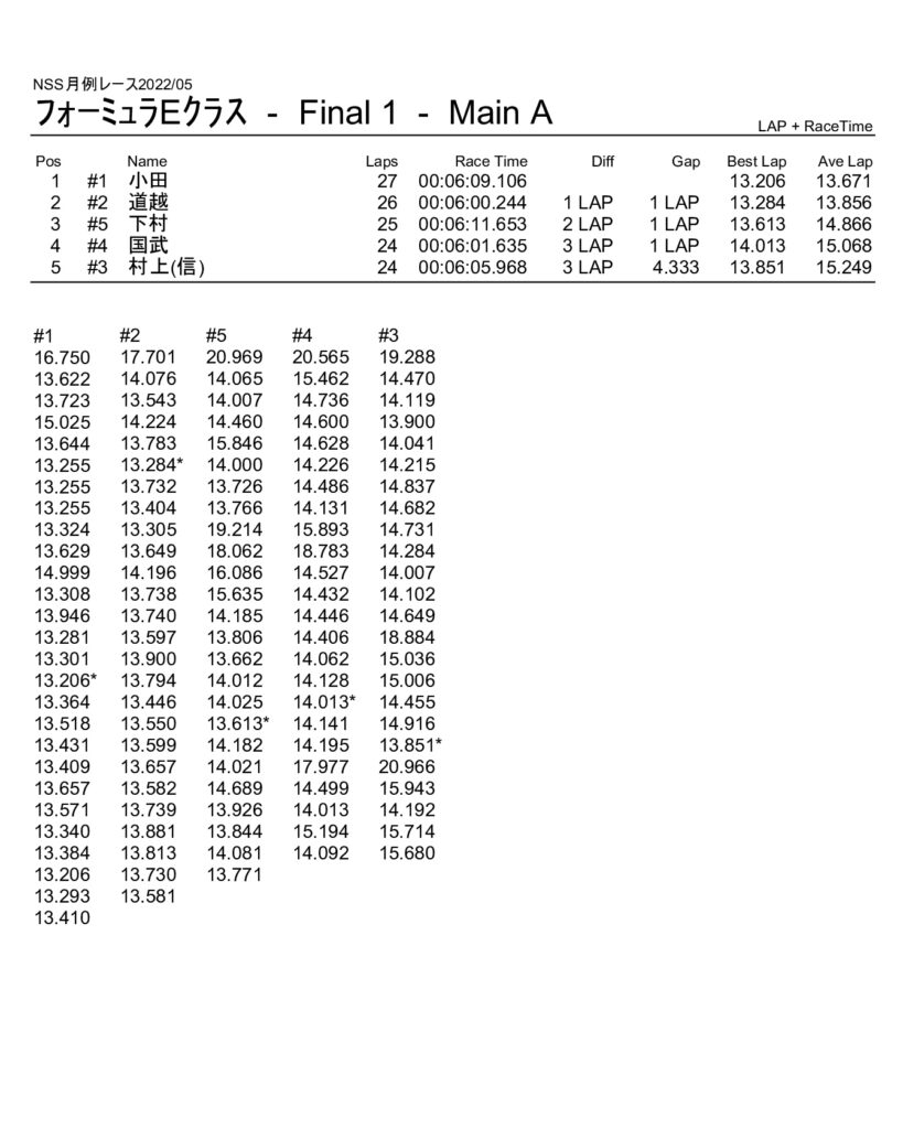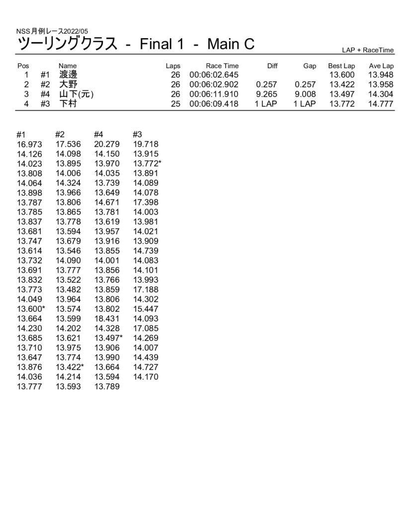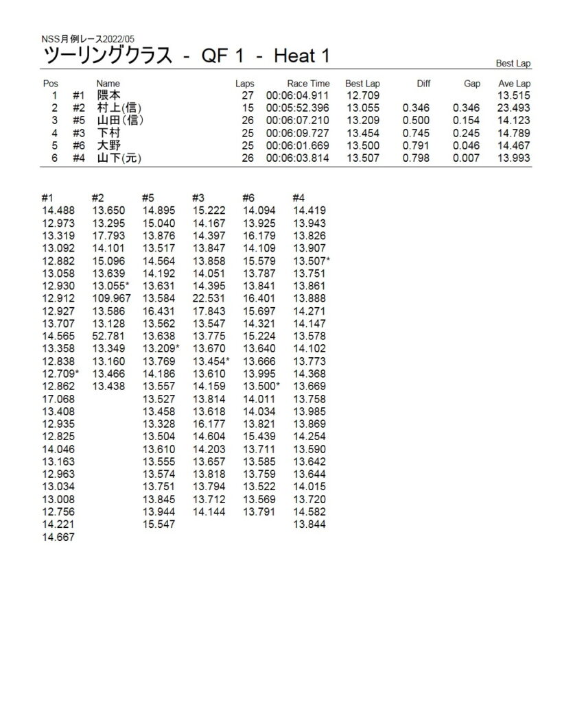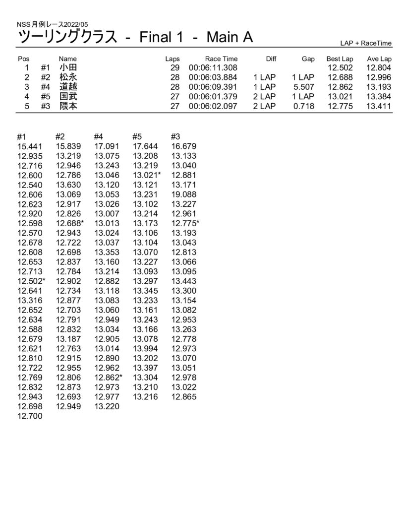 5月・月例レース結果&動画 公開日:2022年5月16日 レース結果 ミニクラス ミニクラスCメイン ミニクラスBメイン ミニクラスAメイン F-1クラスAメイン ツーリングクラス ツーリングクラスCメイン ツーリングクラスBメイン ツーリングクラスAメイン フォーミュラEクラス フォーミュラEクラスAメイン おまけ(予選リザルト) ミニクラス F-1クラス ツーリングクラス フォーミュラEクラス 関連記事 3月の月例レース結果・動画2020/3/158月・月例レース結果・動画11月の月例レース結果&動画2020年5月ミニ3時間耐久レース結果8月・月例レース結果&動画12月の月例レースの結果 投稿ナビゲーション 2022年5月ミニ3時間耐久レース結果6月・月例レース結果&動画