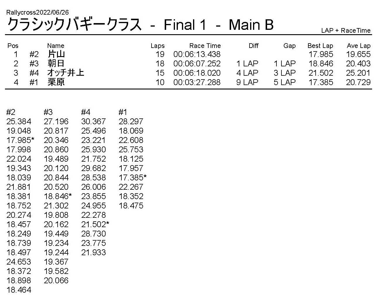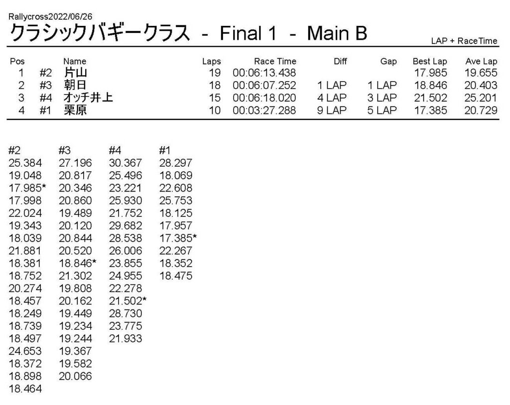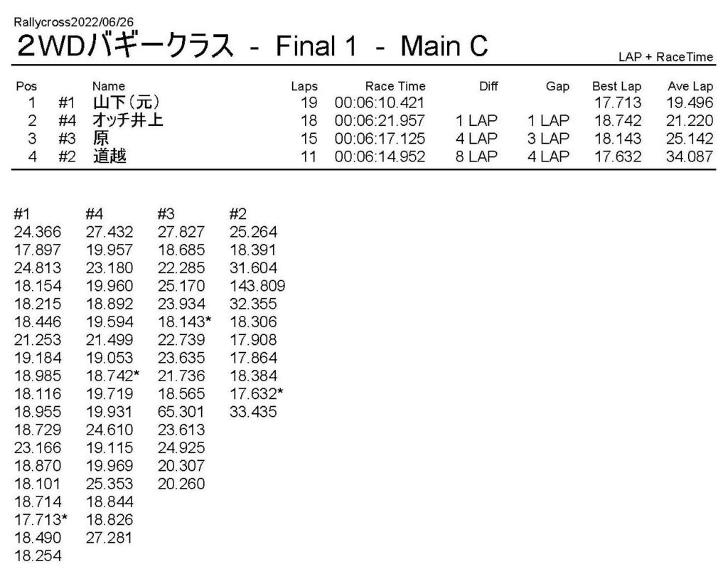 ラリークロスレース結果&動画 2022/6/26 公開日:2022年6月27日 レース結果 ラリークラス ラリークラスCメイン ラリークラスBメイン ラリークラスAメイン 2WDバギークラス 2WDバギークラスCメイン 2WDバギークラスBメイン 2WDバギークラスAメイン 4WDバギークラス 4WDバギークラスBメイン 4WDバギークラスAメイン クラシックバギークラス クラシックバギークラスBメイン クラシックバギークラスAメイン おまけ(予選リザルト) ラリークラス 2WDクラス 4WDクラス クラシックバギークラス 関連記事 3月・月例レース結果・動画月例レース結果 ・動画 2024/08/1111月・月例レース結果&動画7月・月例レース結果・動画10月・月例レース結果&動画月例レース結果・動画 2024/12/08 投稿ナビゲーション 6月・月例レース結果&動画7月・月例レース結果&動画