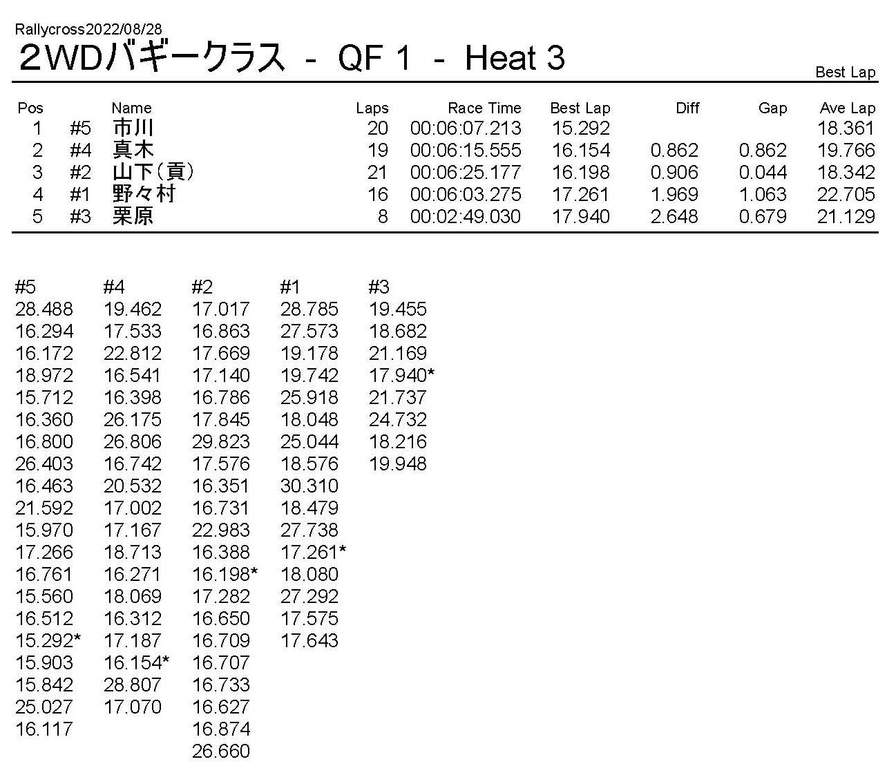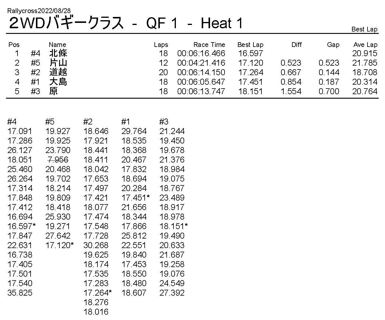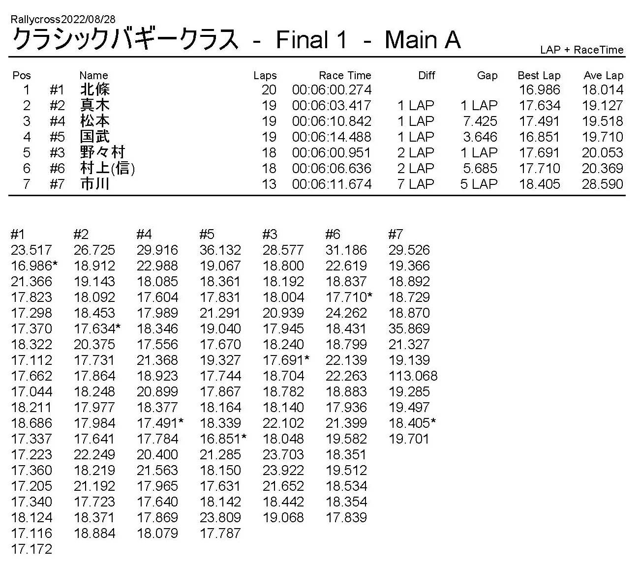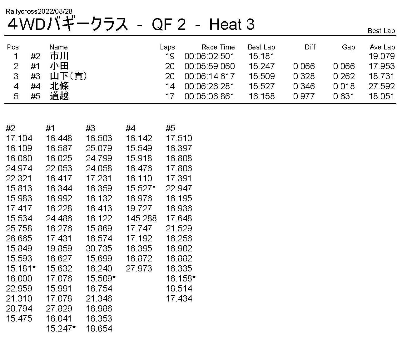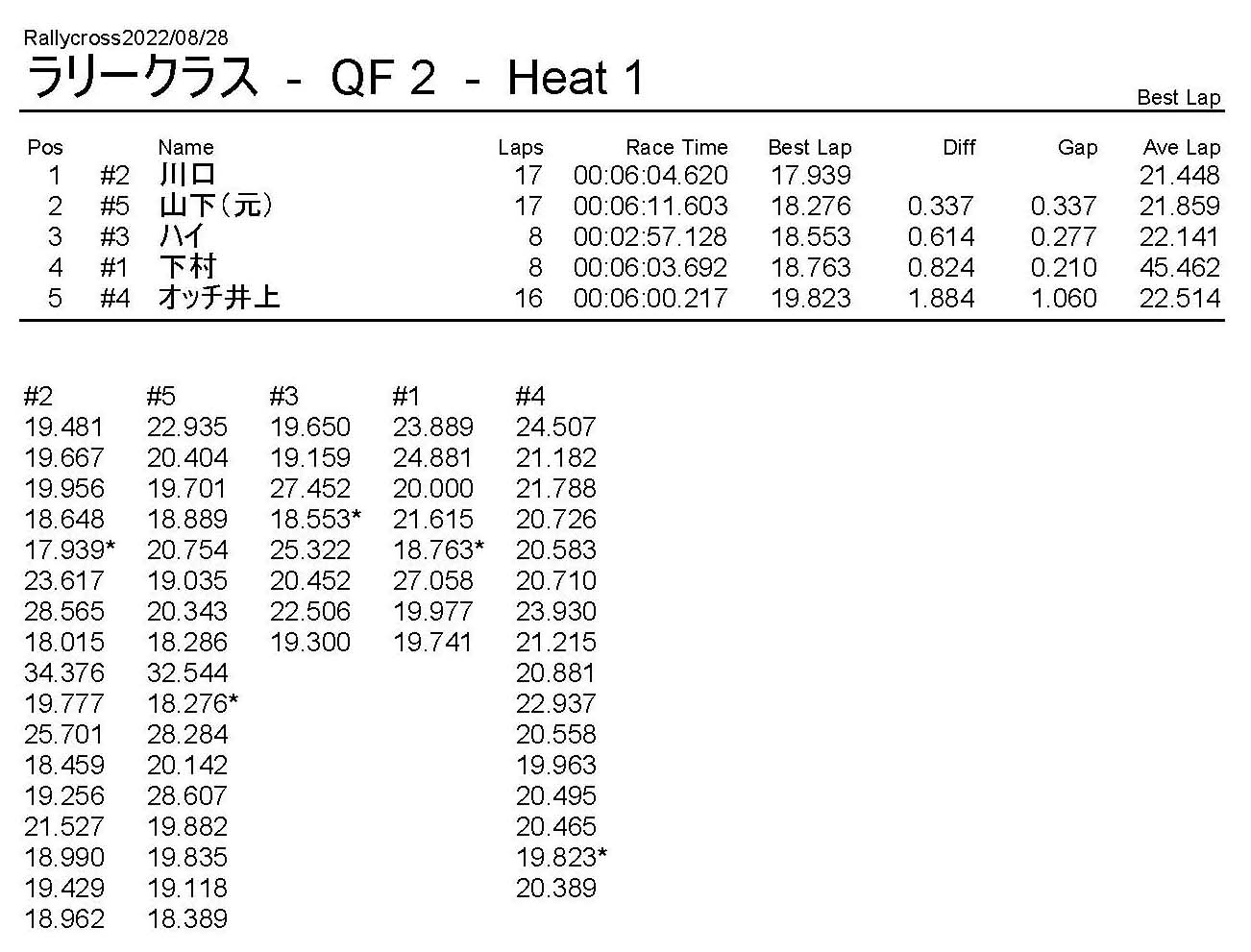 ラリークロスレース結果&動画 2022/8/28 公開日:2022年8月29日 レース結果 ラリークラス ラリークラスDメイン ラリークラスCメイン ラリークラスBメイン ラリークラスAメイン 2WDバギークラス 2WDバギークラスCメイン 2WDバギークラスBメイン 2WDバギークラスAメイン 4WDバギークラス 4WDバギークラスCメイン 4WDバギークラスBメイン 4WDバギークラスAメイン クラシックバギークラス クラシックバギークラスBメイン クラシックバギークラスAメイン おまけ(予選リザルト) ラリークラス 2WDクラス 4WDクラス クラシックバギークラス 関連記事 6月の月例レース結果・動画 2020/6/79月・月例レース結果&動画ラリークロスレース結果&動画 2023/4/23月例レース結果・動画 2025/01/13ラリークロスレース結果&動画 2022/1/3ラリークロスレースリザルト 投稿ナビゲーション 8月・月例レース結果&動画9月・月例レース結果&動画
