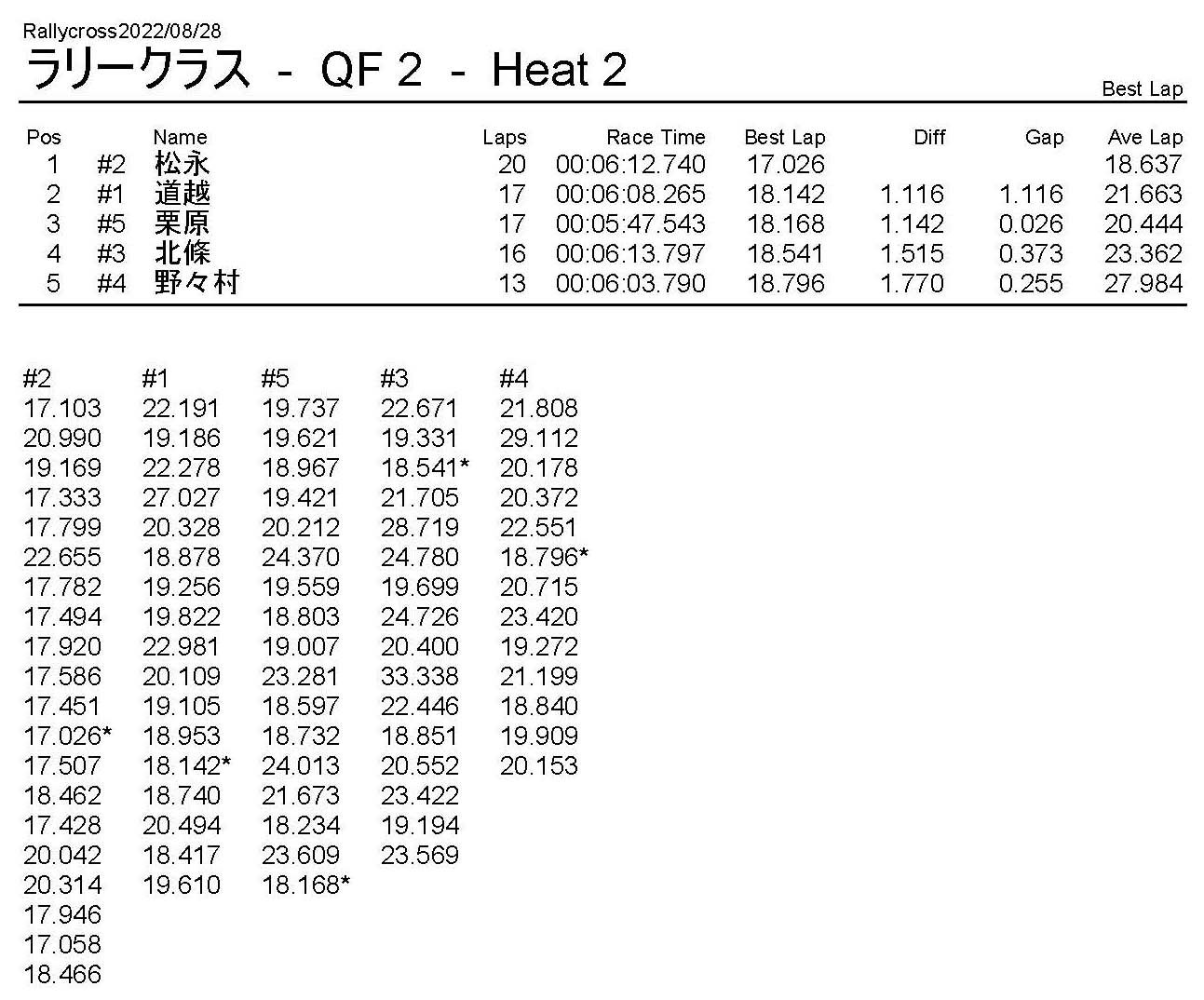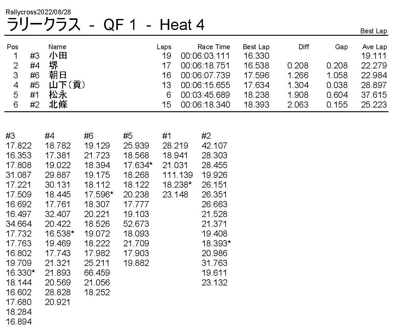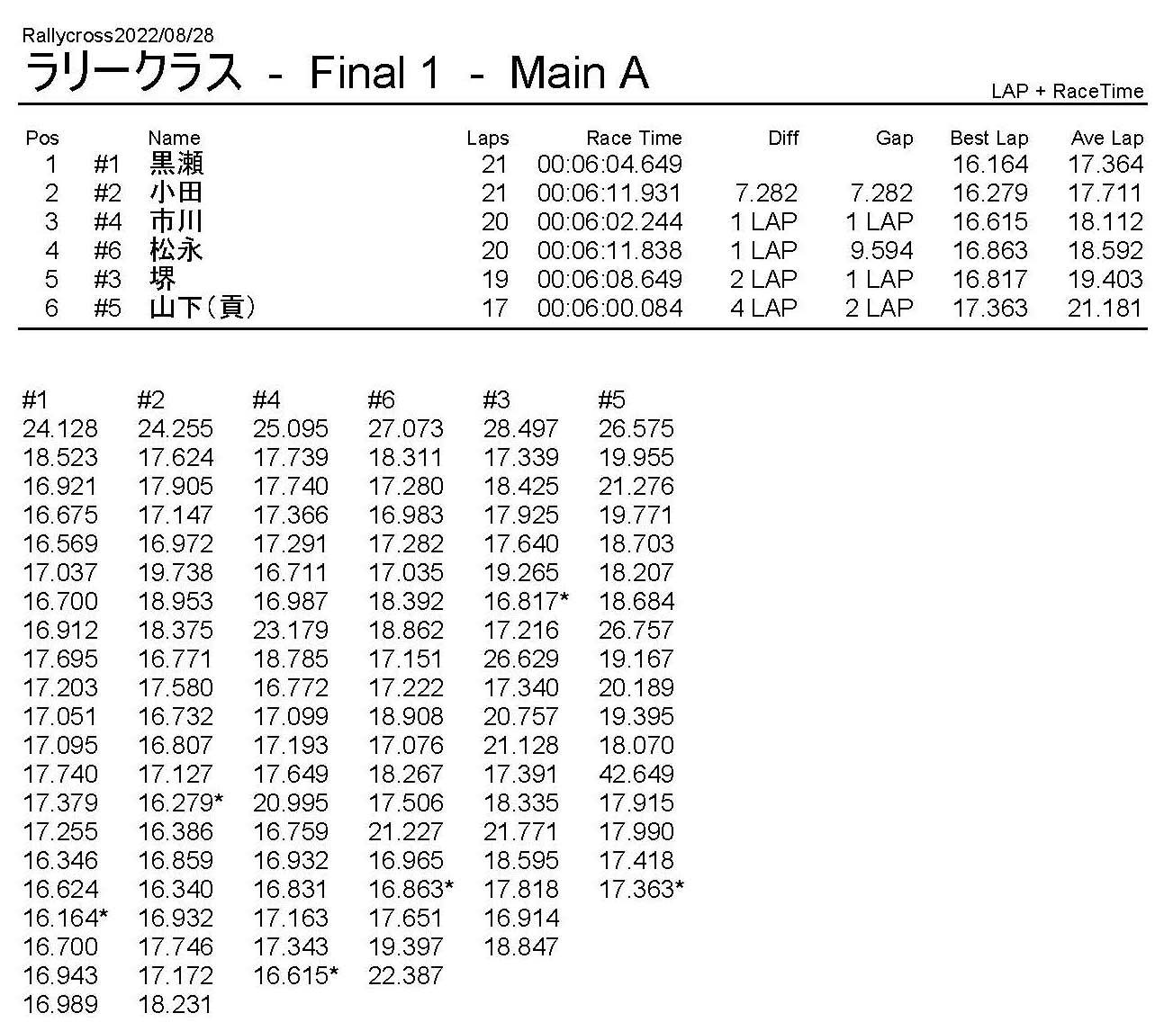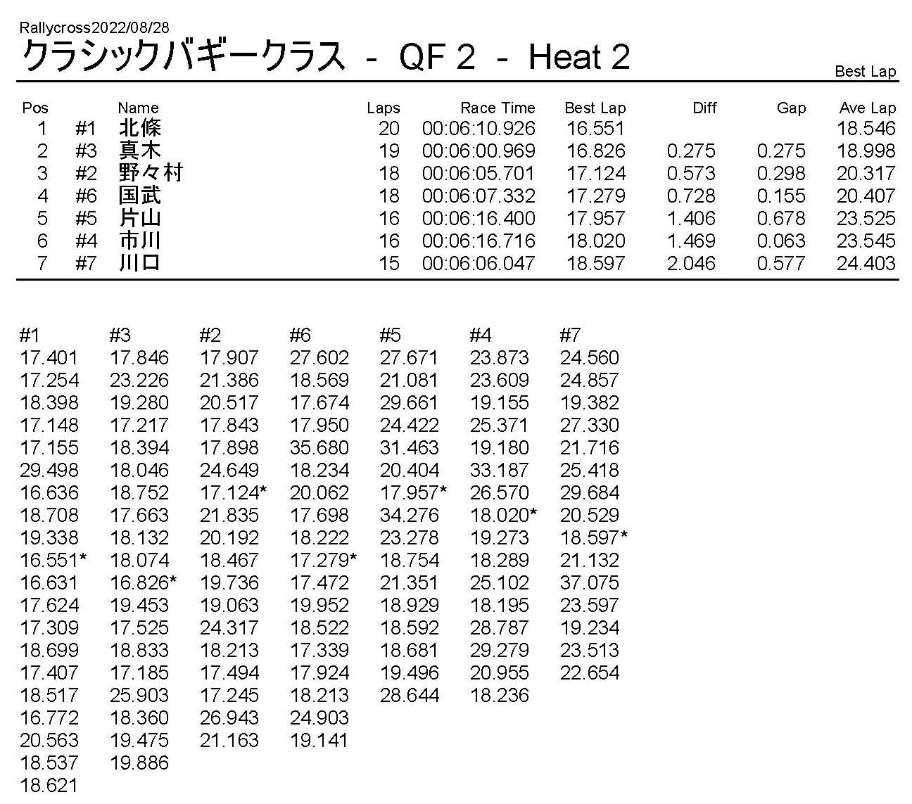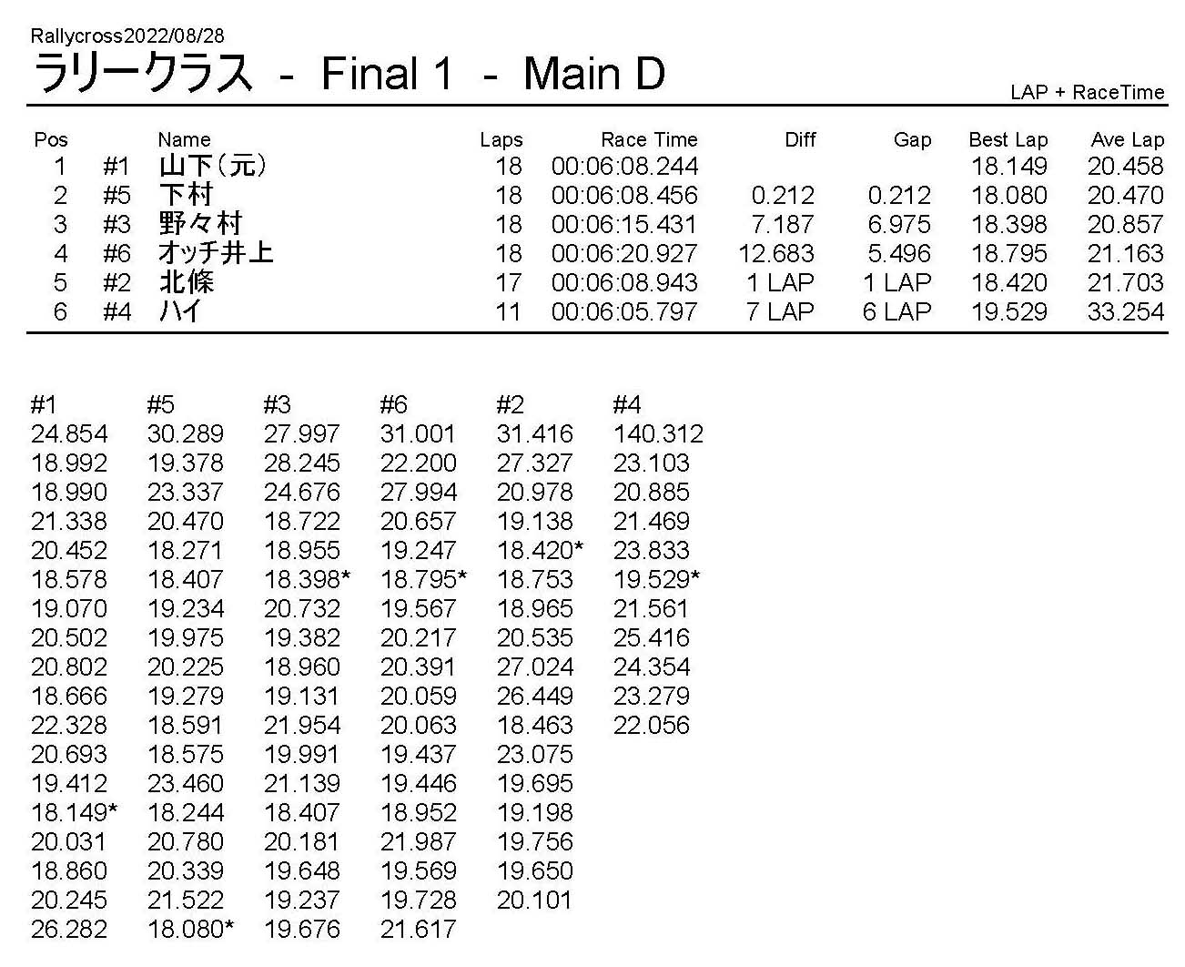 ラリークロスレース結果&動画 2022/8/28 公開日:2022年8月29日 レース結果 ラリークラス ラリークラスDメイン ラリークラスCメイン ラリークラスBメイン ラリークラスAメイン 2WDバギークラス 2WDバギークラスCメイン 2WDバギークラスBメイン 2WDバギークラスAメイン 4WDバギークラス 4WDバギークラスCメイン 4WDバギークラスBメイン 4WDバギークラスAメイン クラシックバギークラス クラシックバギークラスBメイン クラシックバギークラスAメイン おまけ(予選リザルト) ラリークラス 2WDクラス 4WDクラス クラシックバギークラス 関連記事 6月の月例レース結果・動画 2020/6/79月・月例レース結果&動画ラリークロスレース結果&動画 2023/4/23月例レース結果・動画 2025/01/13ラリークロスレース結果&動画 2022/1/3ラリークロスレースリザルト 投稿ナビゲーション 8月・月例レース結果&動画9月・月例レース結果&動画