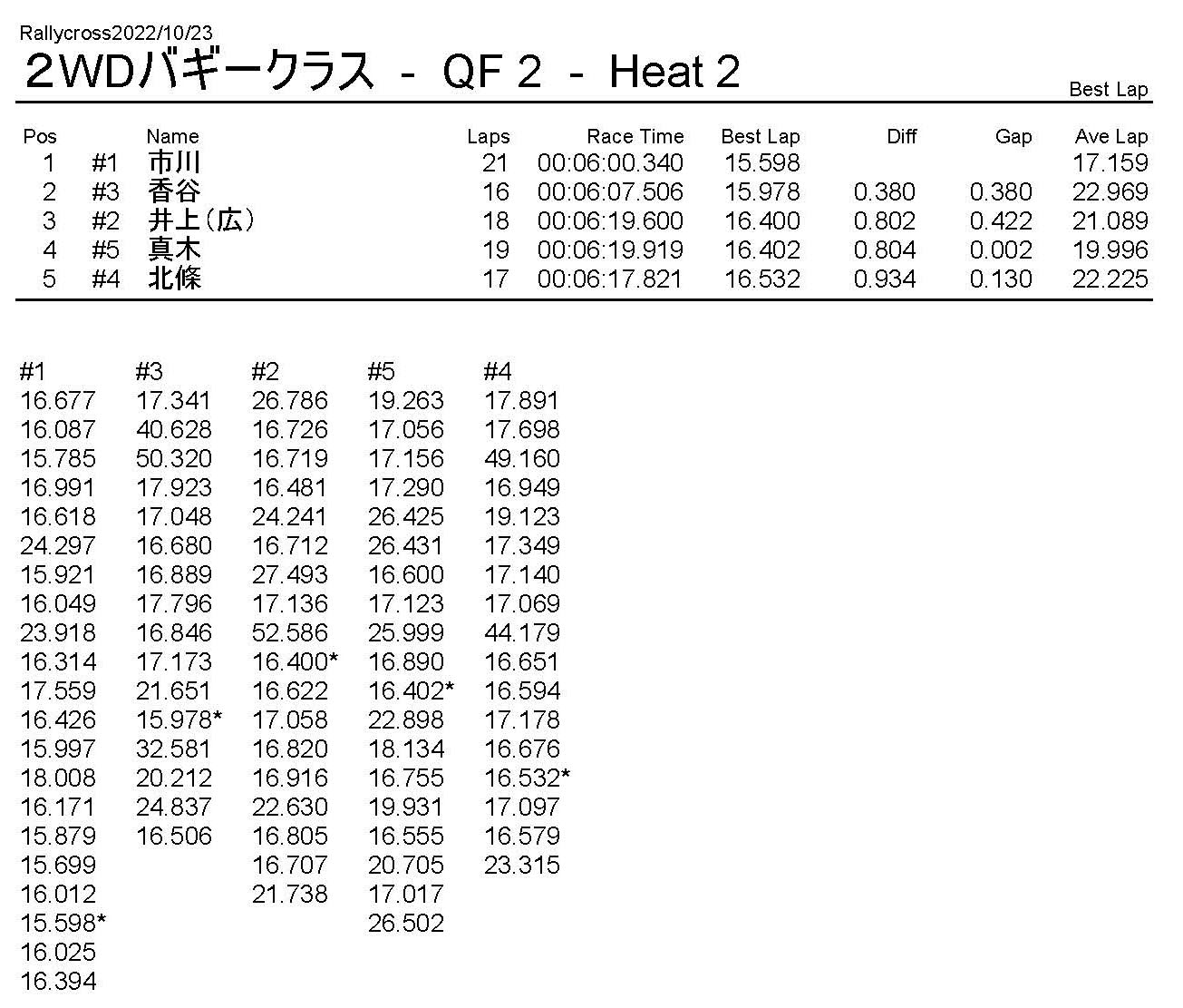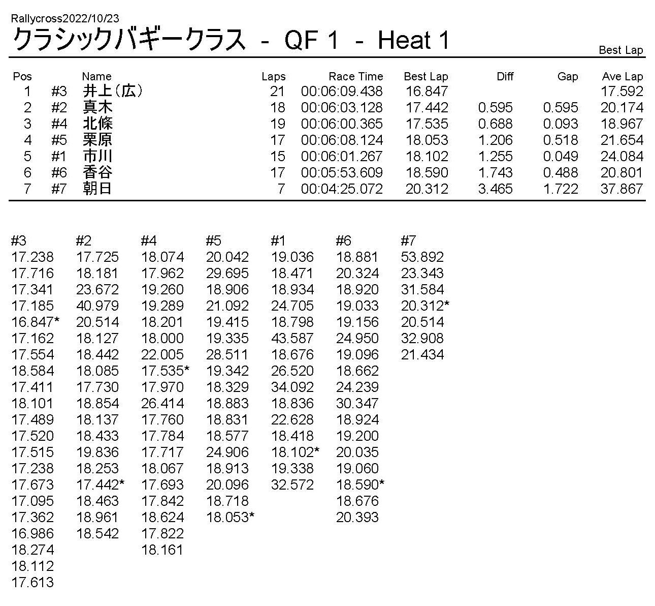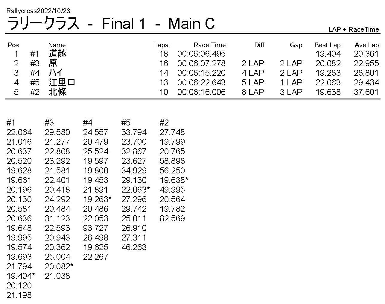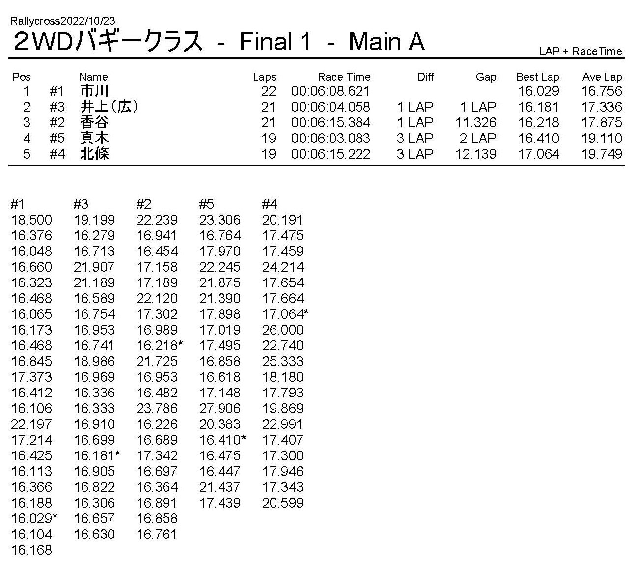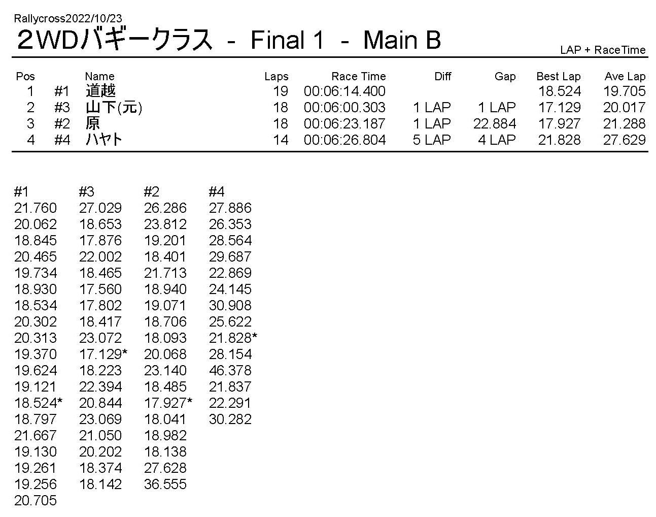 ラリークロスレース結果&動画 2022/10/23 公開日:2022年10月23日 レース結果 ラリークラス ラリークラスCメイン ラリークラスBメイン 撮影機材不調により動画はありません。 ラリークラスAメイン 2WDバギークラス 2WDバギークラスBメイン 2WDバギークラスAメイン 4WDバギークラス 4WDバギークラスBメイン 4WDバギークラスAメイン クラシックバギークラス クラシックバギークラスAメイン おまけ(予選リザルト) ラリークラス 2WDクラス 4WDクラス クラシックバギークラス 関連記事 ラリークロスレース結果&動画 2022/6/26ラリークロスレース結果&動画 2021/10/24ラリークロスレース結果&動画 2022/1/36月・月例レース結果・動画4月・月例レース結果・動画6月の月例レース結果・動画 2020/6/7 投稿ナビゲーション 10月・月例レース結果&動画11月・月例レース結果&動画