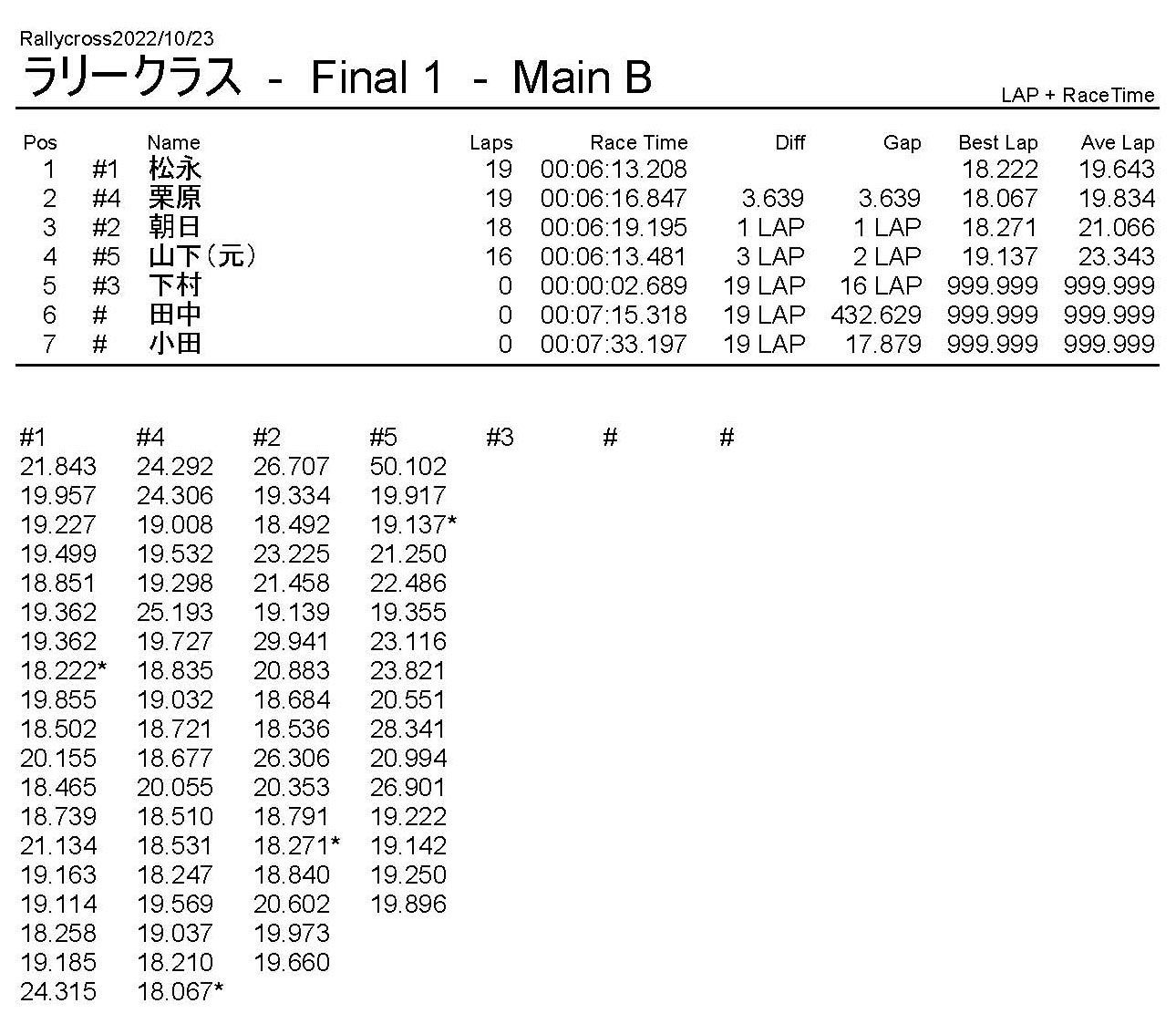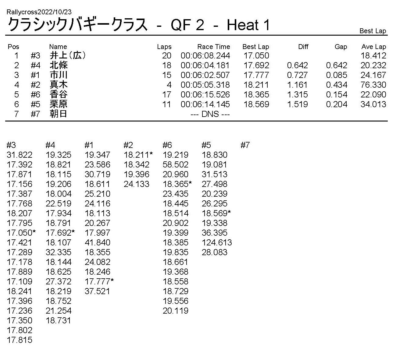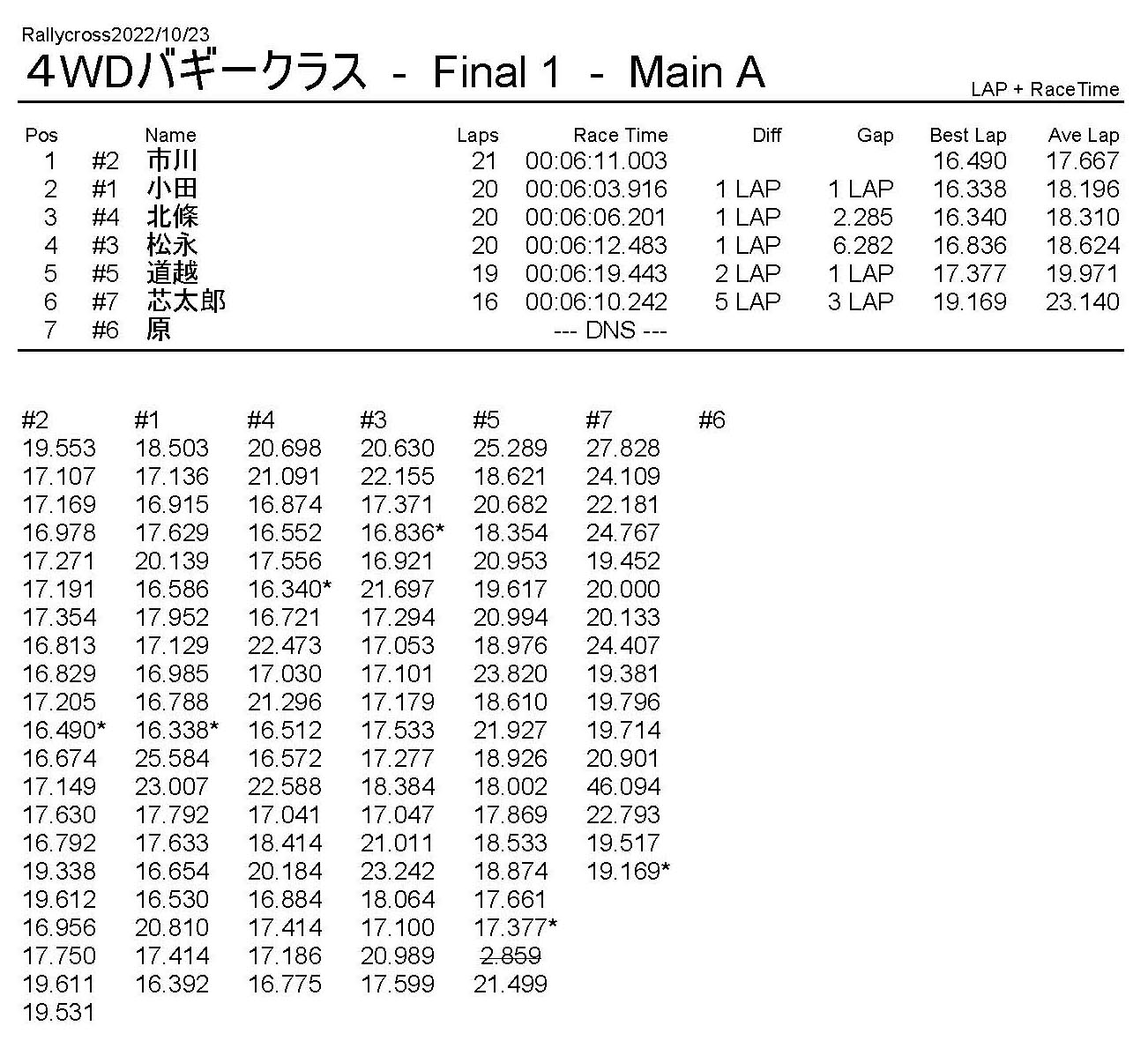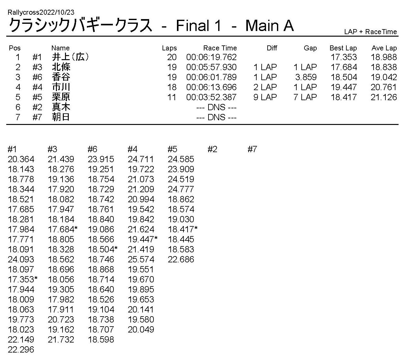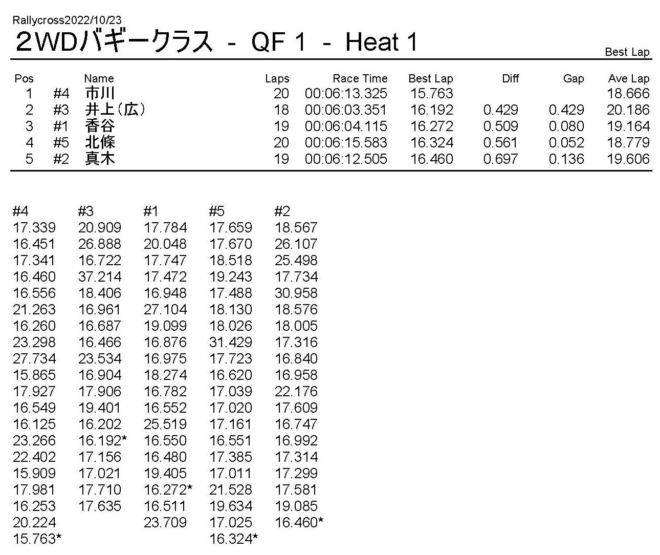 ラリークロスレース結果&動画 2022/10/23 公開日:2022年10月23日 レース結果 ラリークラス ラリークラスCメイン ラリークラスBメイン 撮影機材不調により動画はありません。 ラリークラスAメイン 2WDバギークラス 2WDバギークラスBメイン 2WDバギークラスAメイン 4WDバギークラス 4WDバギークラスBメイン 4WDバギークラスAメイン クラシックバギークラス クラシックバギークラスAメイン おまけ(予選リザルト) ラリークラス 2WDクラス 4WDクラス クラシックバギークラス 関連記事 ラリークロスレース結果&動画 2022/6/26ラリークロスレース結果&動画 2021/10/24ラリークロスレース結果&動画 2022/1/36月・月例レース結果・動画4月・月例レース結果・動画6月の月例レース結果・動画 2020/6/7 投稿ナビゲーション 10月・月例レース結果&動画11月・月例レース結果&動画