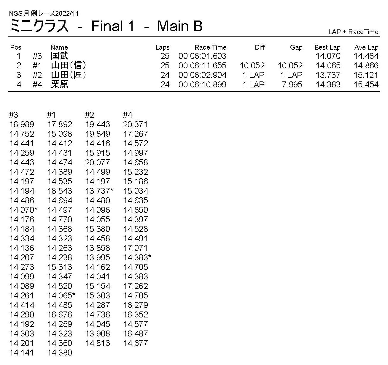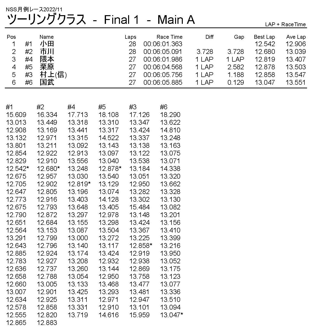 11月・月例レース結果&動画 公開日:2022年11月13日 レース結果 ミニクラス ミニクラスBメイン ミニクラスAメイン F-1クラスAメイン ツーリングクラス ツーリングクラスBメイン ツーリングクラスAメイン フォーミュラEクラスAメイン おまけ(予選リザルト) ミニクラス F-1クラス ツーリングクラス フォーミュラEクラス 関連記事 2月・月例レース結果ラリークロス結果&動画-2024-04-28月例レース結果・動画 2025/01/13ラリークロスレース結果&動画 2022/4/242020年11月ミニ3時間耐久レース結果3月の月例レース結果・動画2020/3/15 投稿ナビゲーション ラリークロスレース結果&動画 2022/10/2312月・月例レース結果&動画