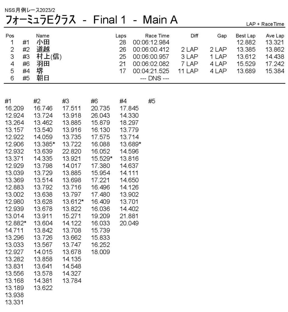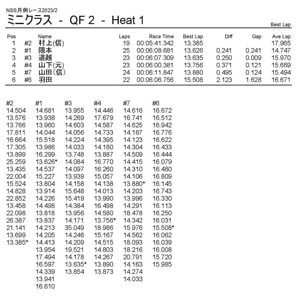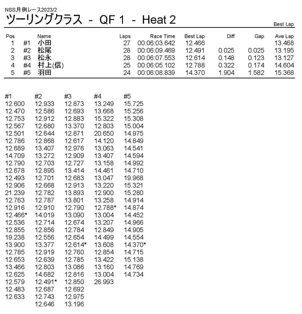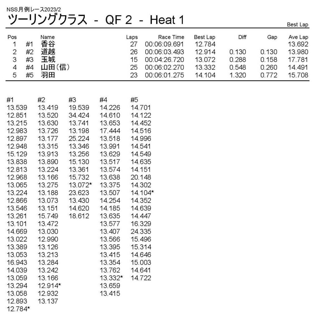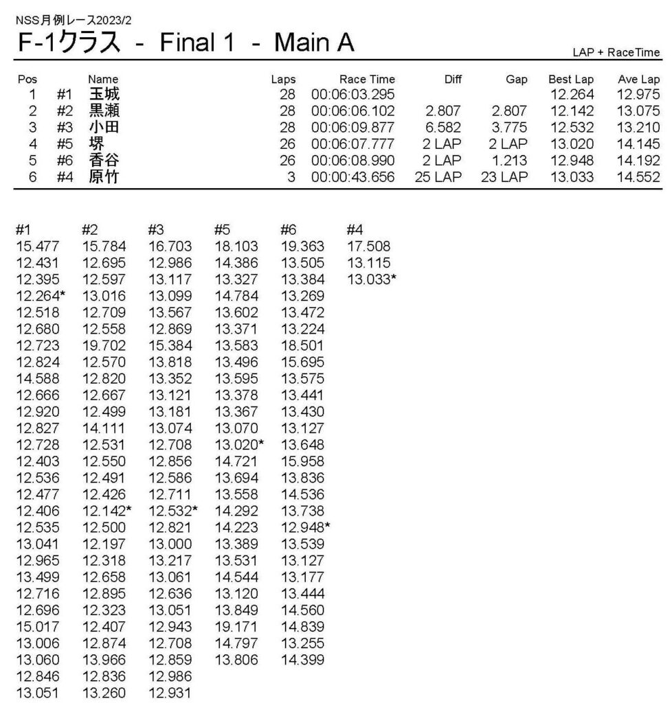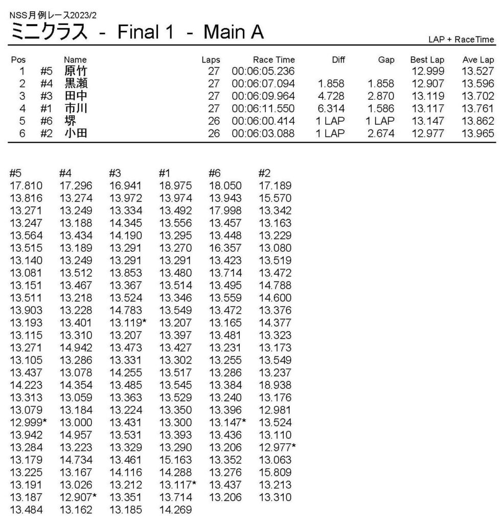 2月・月例レース結果・動画 公開日:2023年2月5日 レース結果 ミニクラス ミニクラスCメイン ミニクラスBメイン ミニクラスAメイン F-1クラスAメイン ツーリングクラス ツーリングクラスCメイン ツーリングクラスBメイン ツーリングクラスAメイン フォーミュラEクラス フォーミュラEクラスAメイン おまけ(予選リザルト) ミニクラス F-1クラス ツーリングクラス フォーミュラEクラス 関連記事 5月・月例レース結果&動画ラリークロスレース結果&動画2021/18月・月例レース結果&動画3月・月例レース結果・動画7月の月例レース結果・動画月例レース結果・動画 2024/10/06 投稿ナビゲーション 1月・月例レース結果・動画ラリークロスレース結果&動画 2023/3/5