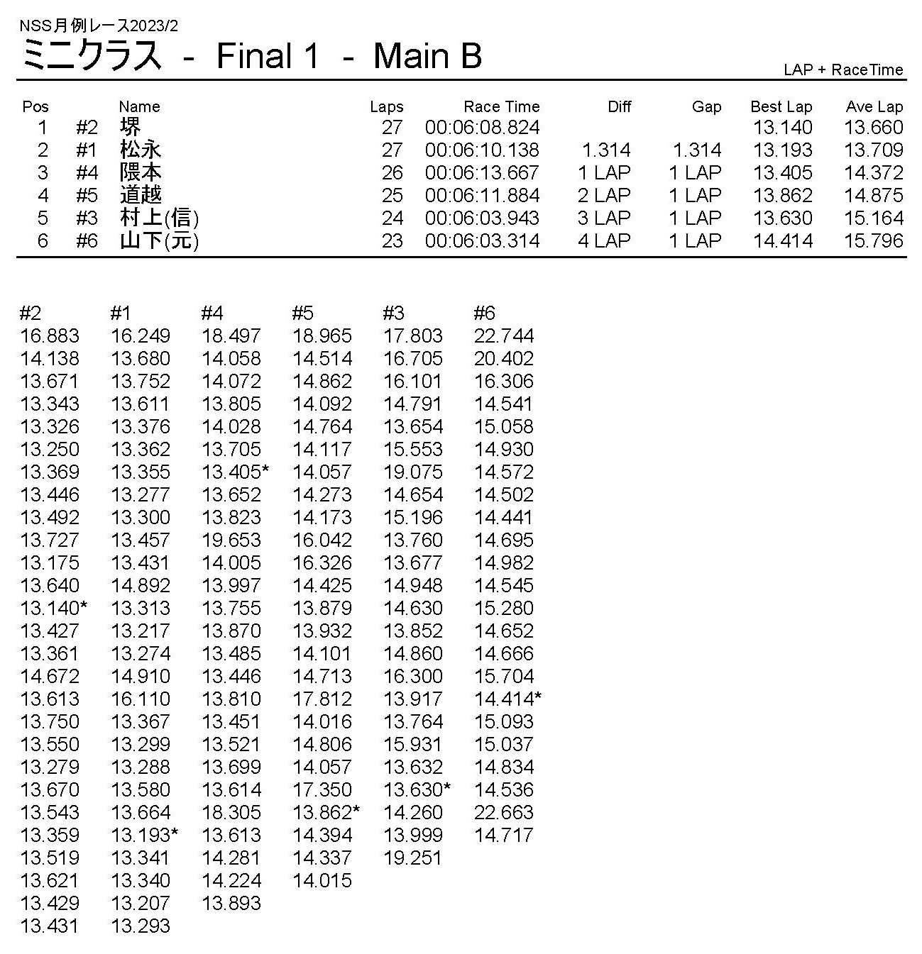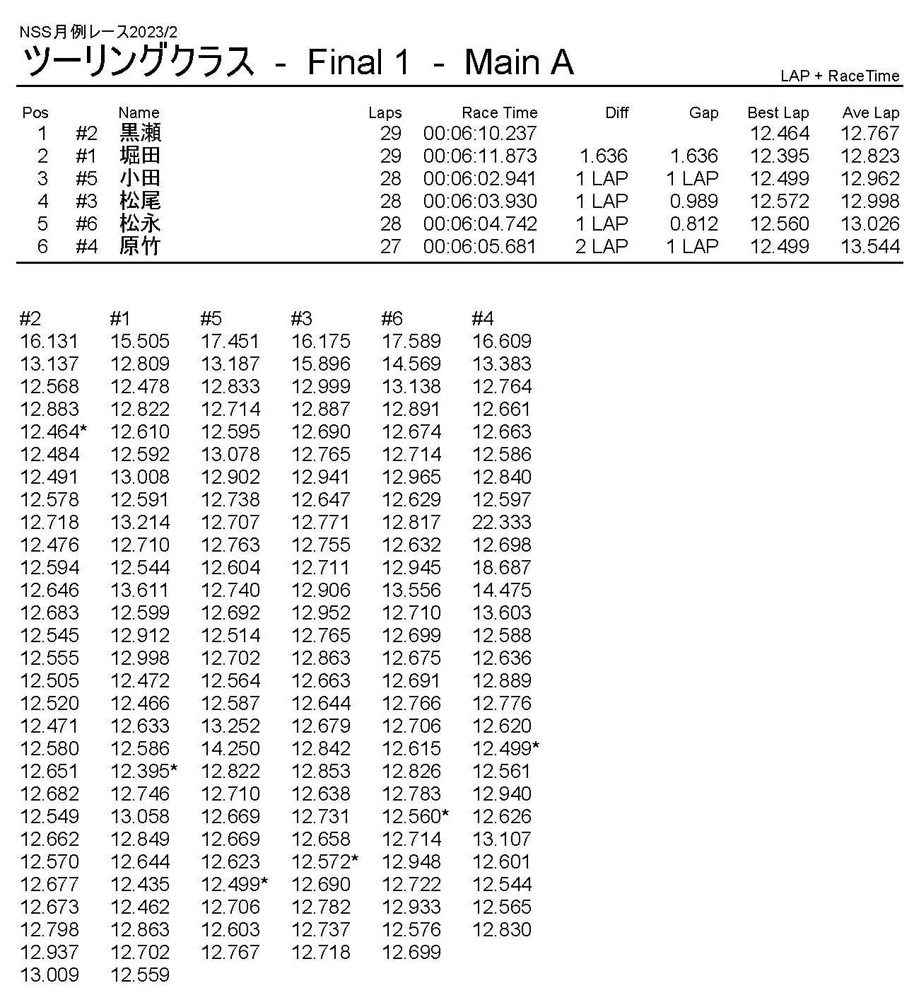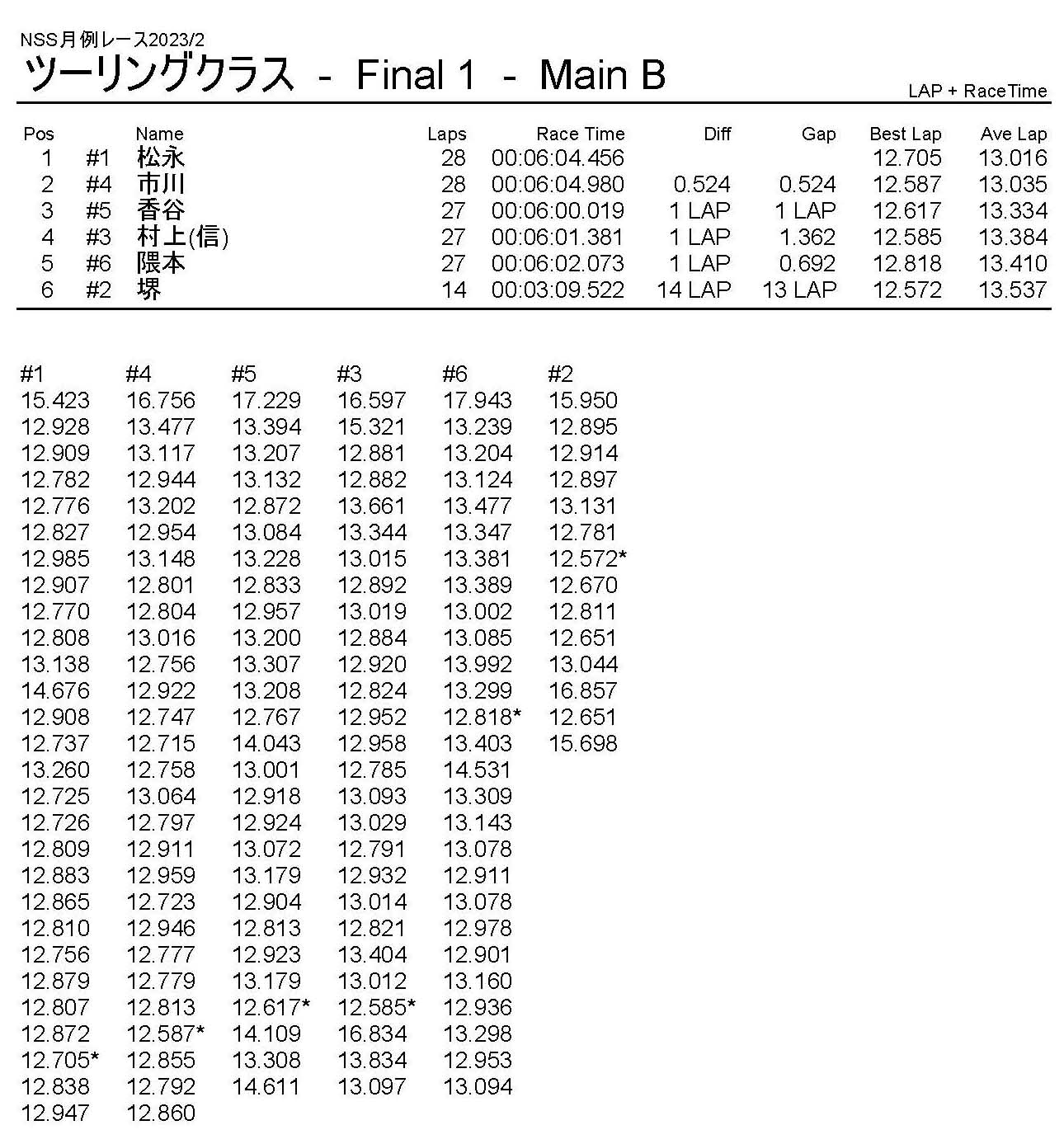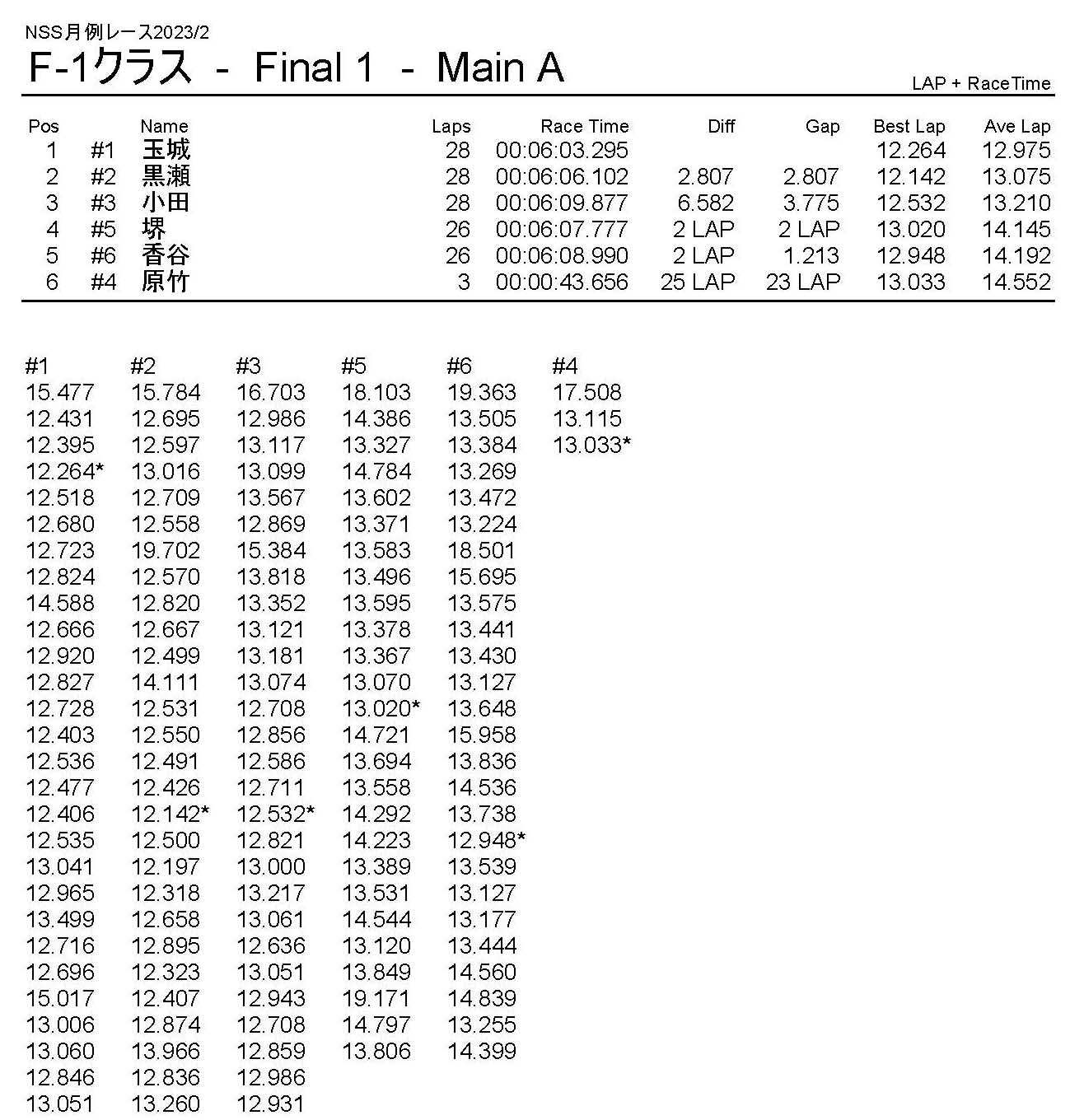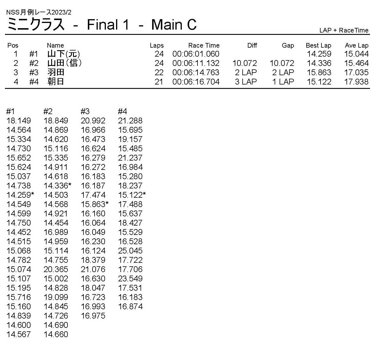 2月・月例レース結果・動画 公開日:2023年2月5日 レース結果 ミニクラス ミニクラスCメイン ミニクラスBメイン ミニクラスAメイン F-1クラスAメイン ツーリングクラス ツーリングクラスCメイン ツーリングクラスBメイン ツーリングクラスAメイン フォーミュラEクラス フォーミュラEクラスAメイン おまけ(予選リザルト) ミニクラス F-1クラス ツーリングクラス フォーミュラEクラス 関連記事 5月・月例レース結果&動画ラリークロスレース結果&動画2021/18月・月例レース結果&動画3月・月例レース結果・動画7月の月例レース結果・動画月例レース結果・動画 2024/10/06 投稿ナビゲーション 1月・月例レース結果・動画ラリークロスレース結果&動画 2023/3/5