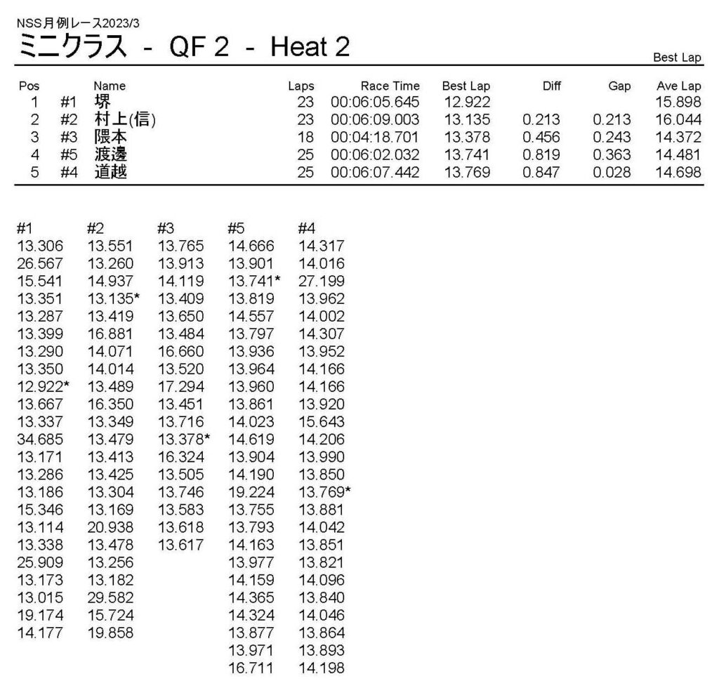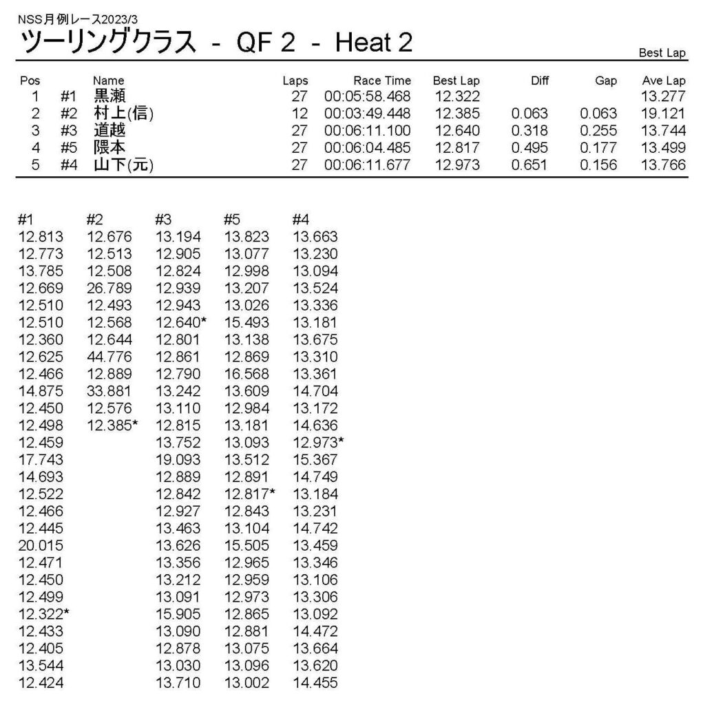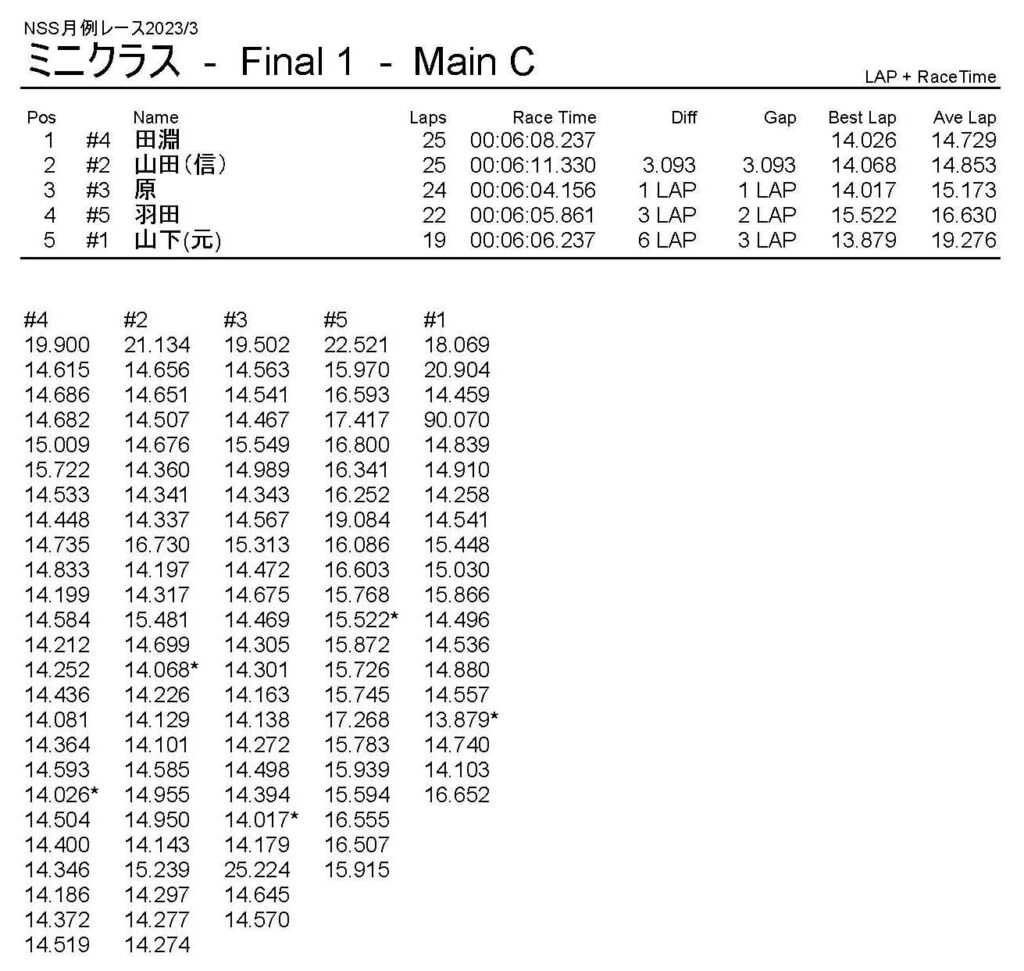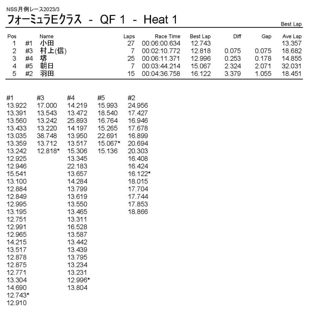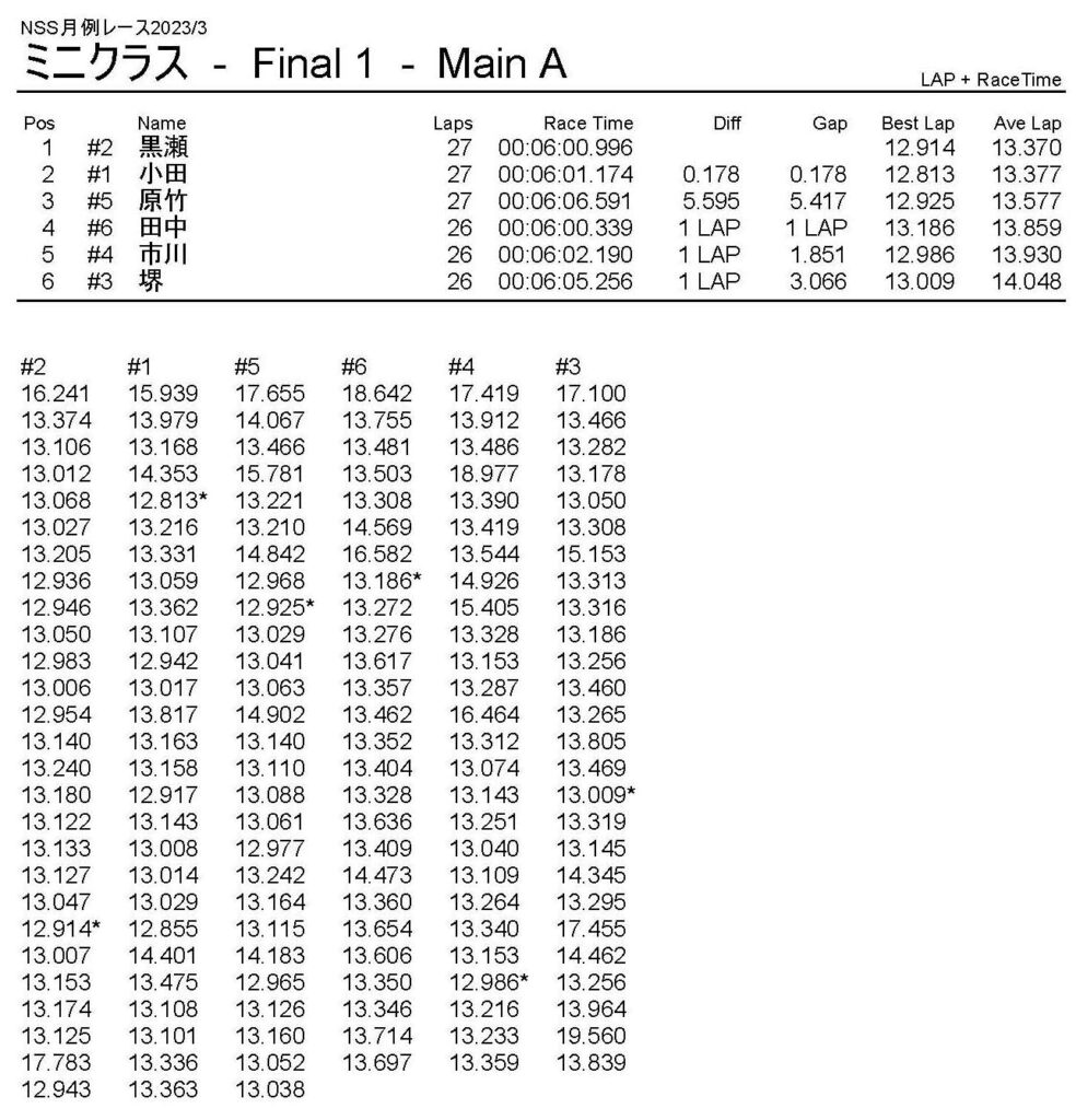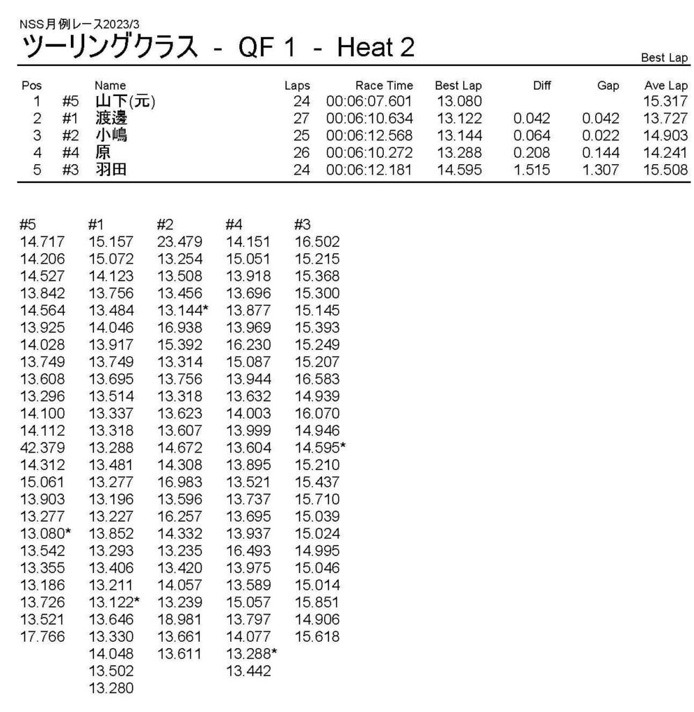 3月・月例レース結果・動画 公開日:2023年3月20日 レース結果 ミニクラス ミニクラスCメイン ミニクラスBメイン ミニクラスAメイン F-1クラスAメイン ツーリングクラス ツーリングクラスCメイン ツーリングクラスBメイン ツーリングクラスAメイン フォーミュラEクラス おまけ(予選リザルト) ミニクラス F-1クラス ツーリングクラス フォーミュラEクラス 関連記事 10月・月例レース結果&動画ラリークロスレース結果&動画 2022/2/27ラリークロス結果 2025.02.24月例レース結果・動画 2024/12/082021年11月ミニ3時間耐久レース結果ラリークロスレース結果&動画 2022/8/28 投稿ナビゲーション ラリークロスレース結果&動画 2023/3/54月・月例レース結果・動画