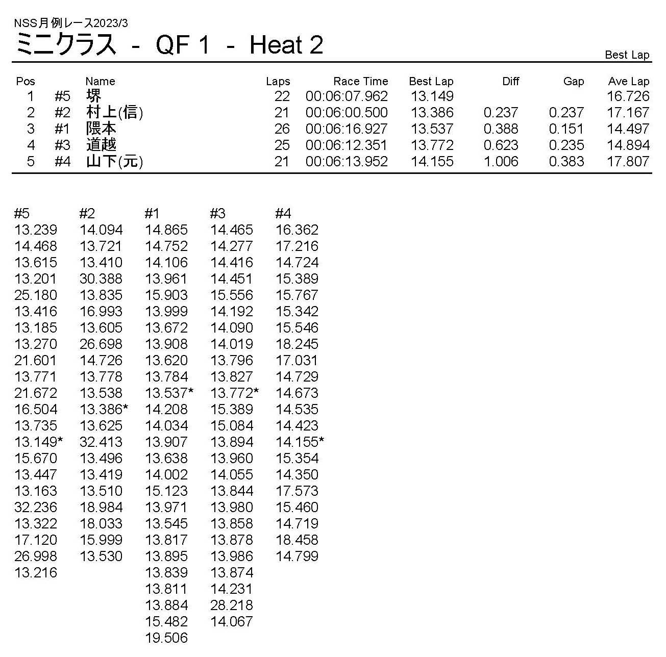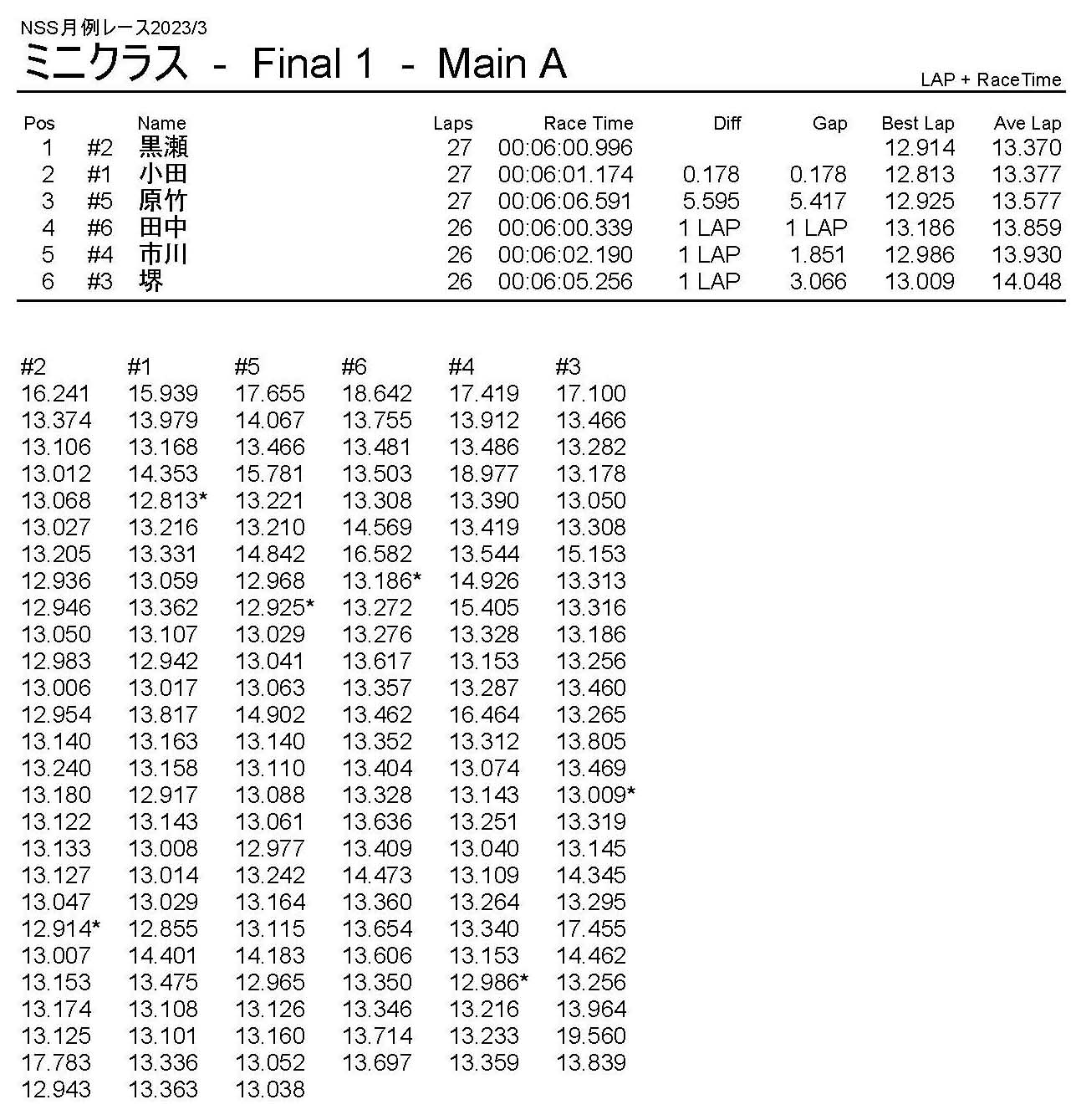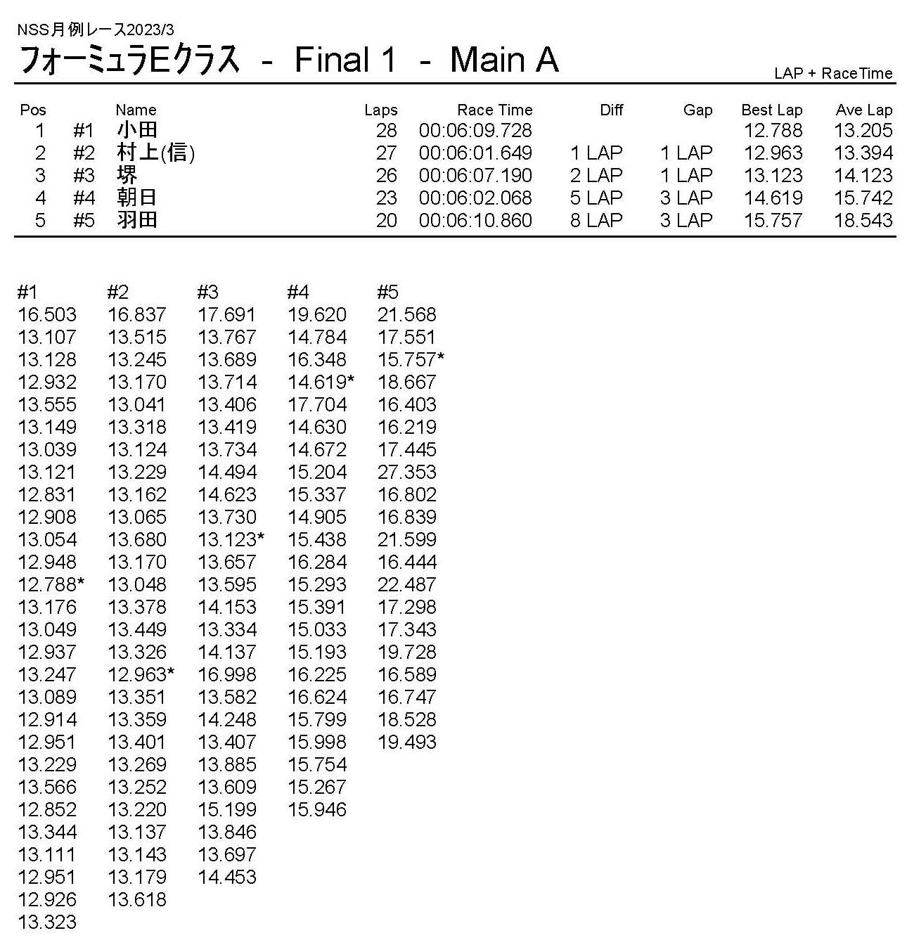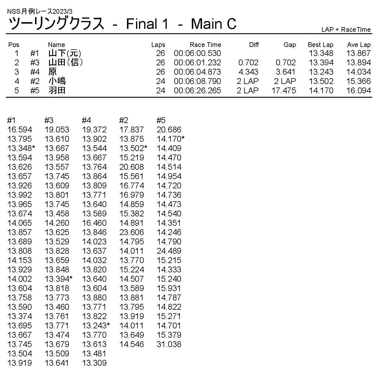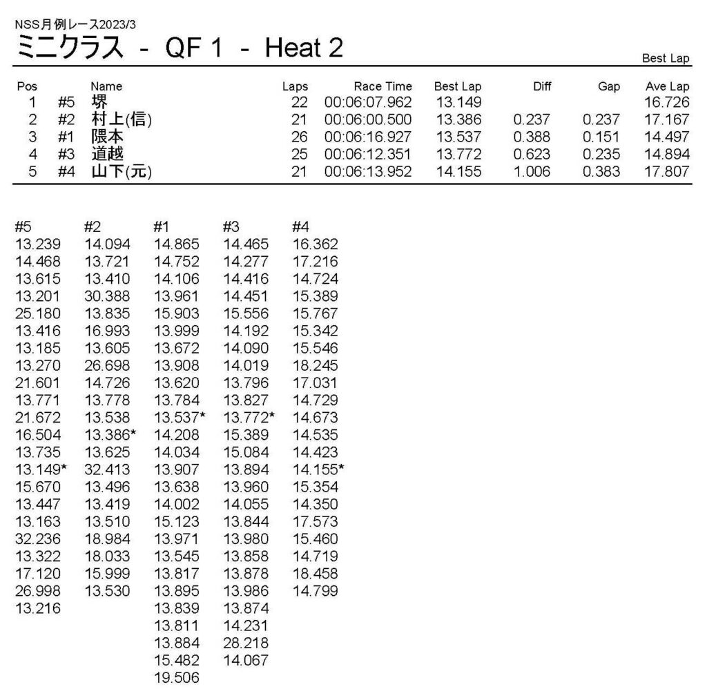 3月・月例レース結果・動画 公開日:2023年3月20日 レース結果 ミニクラス ミニクラスCメイン ミニクラスBメイン ミニクラスAメイン F-1クラスAメイン ツーリングクラス ツーリングクラスCメイン ツーリングクラスBメイン ツーリングクラスAメイン フォーミュラEクラス おまけ(予選リザルト) ミニクラス F-1クラス ツーリングクラス フォーミュラEクラス 関連記事 10月・月例レース結果&動画ラリークロスレース結果&動画 2022/2/27ラリークロス結果 2025.02.24月例レース結果・動画 2024/12/082021年11月ミニ3時間耐久レース結果ラリークロスレース結果&動画 2022/8/28 投稿ナビゲーション ラリークロスレース結果&動画 2023/3/54月・月例レース結果・動画