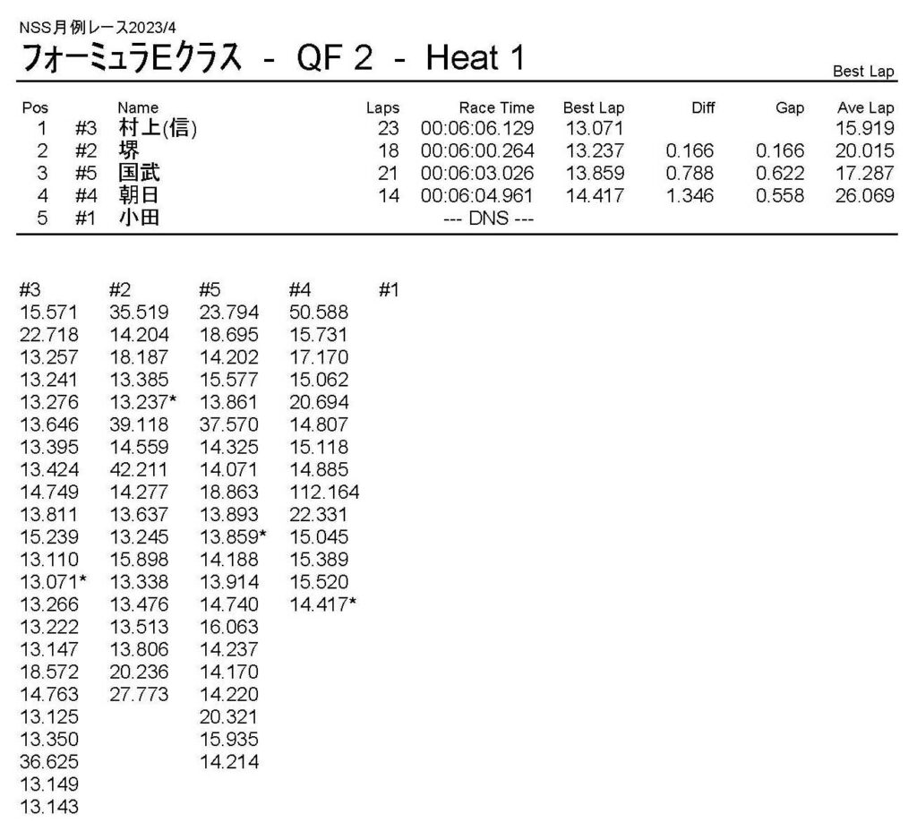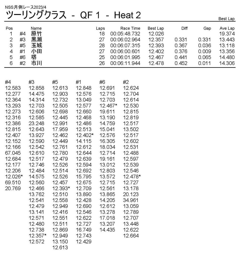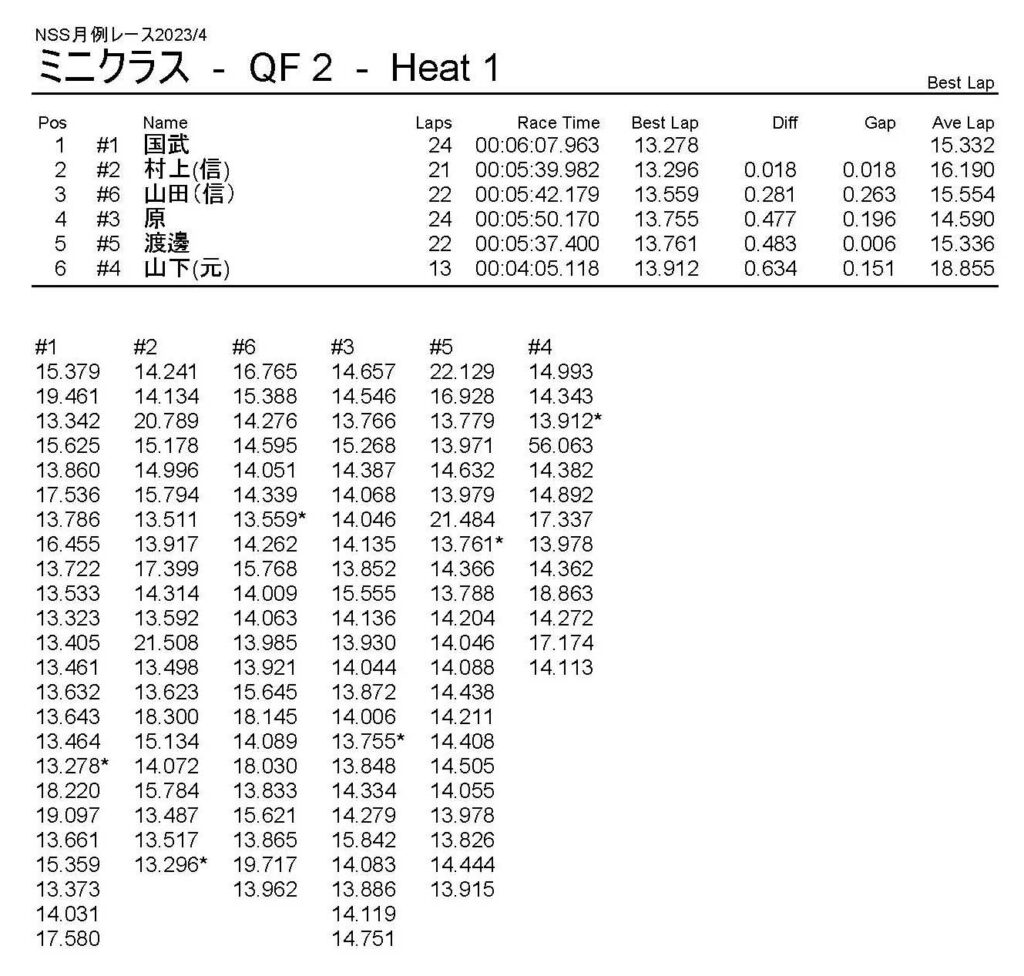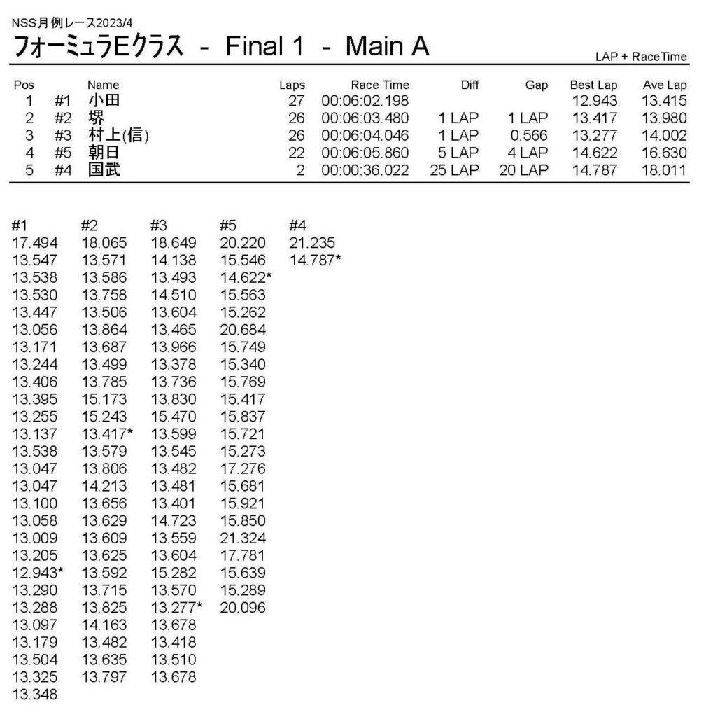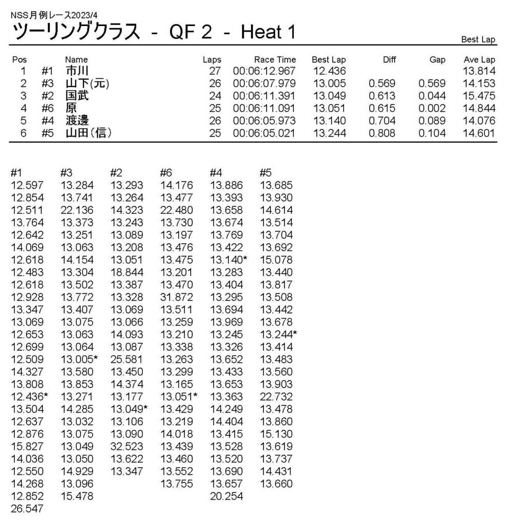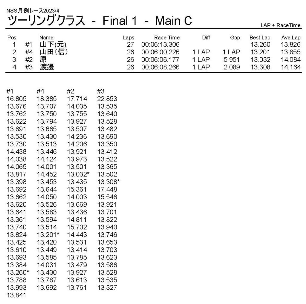 4月・月例レース結果・動画 公開日:2023年4月9日 レース結果 ミニクラス ミニクラスCメイン ミニクラスBメイン ミニクラスAメイン F-1クラスAメイン ツーリングクラス ツーリングクラスCメイン ツーリングクラスBメイン ツーリングクラスAメイン フォーミュラEクラス フォーミュラEクラスAメイン おまけ(予選リザルト) ミニクラス F-1クラス ツーリングクラス フォーミュラEクラス 関連記事 10月・月例レース結果&動画9月の月例レース結果&動画1月・月例レース結果&動画8月・月例レース結果・動画ラリークロス結果&動画-2024-02-25ラリークロスレース結果&動画-2023-10-22 投稿ナビゲーション 3月・月例レース結果・動画ラリークロスレース結果&動画 2023/4/23