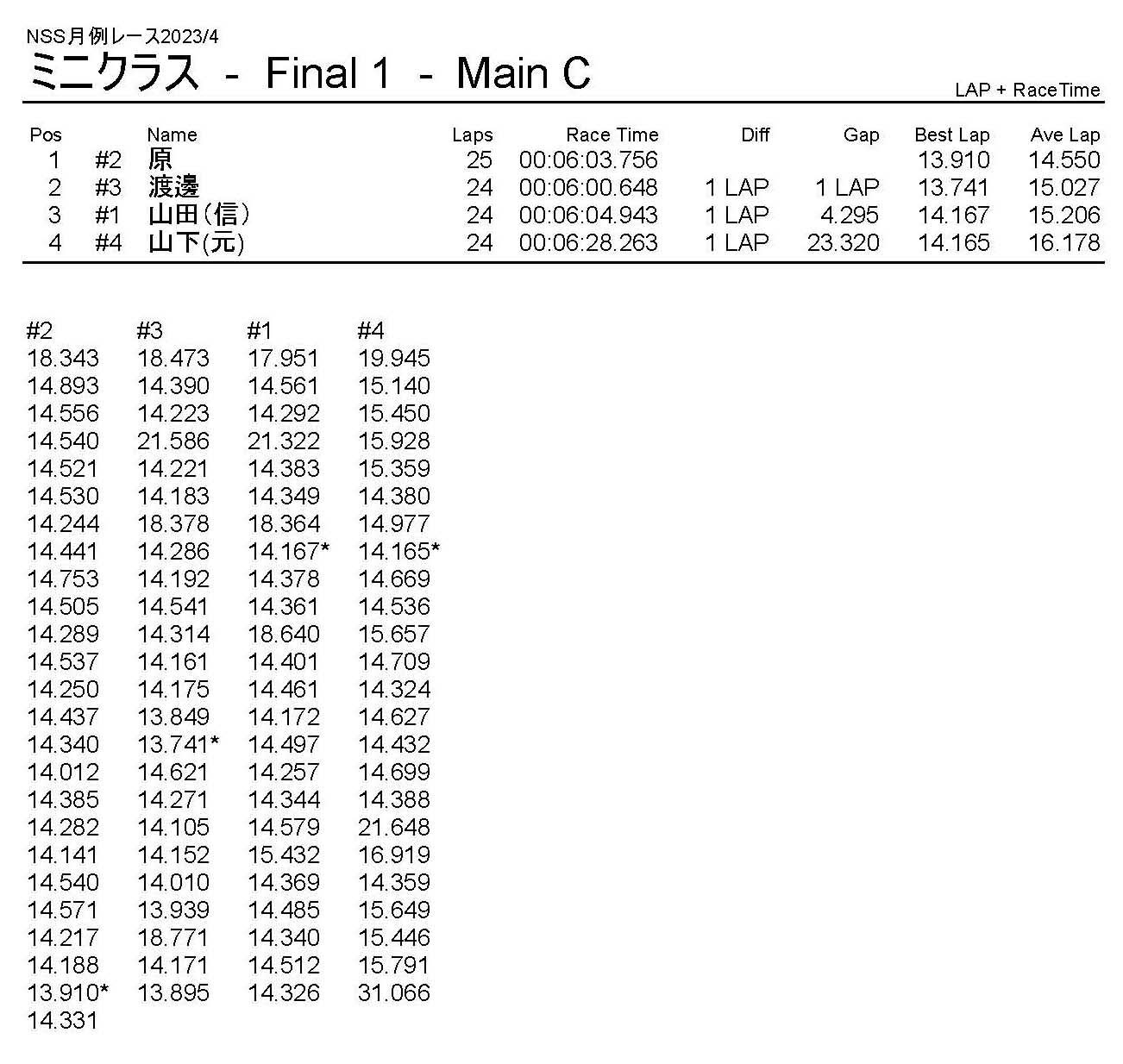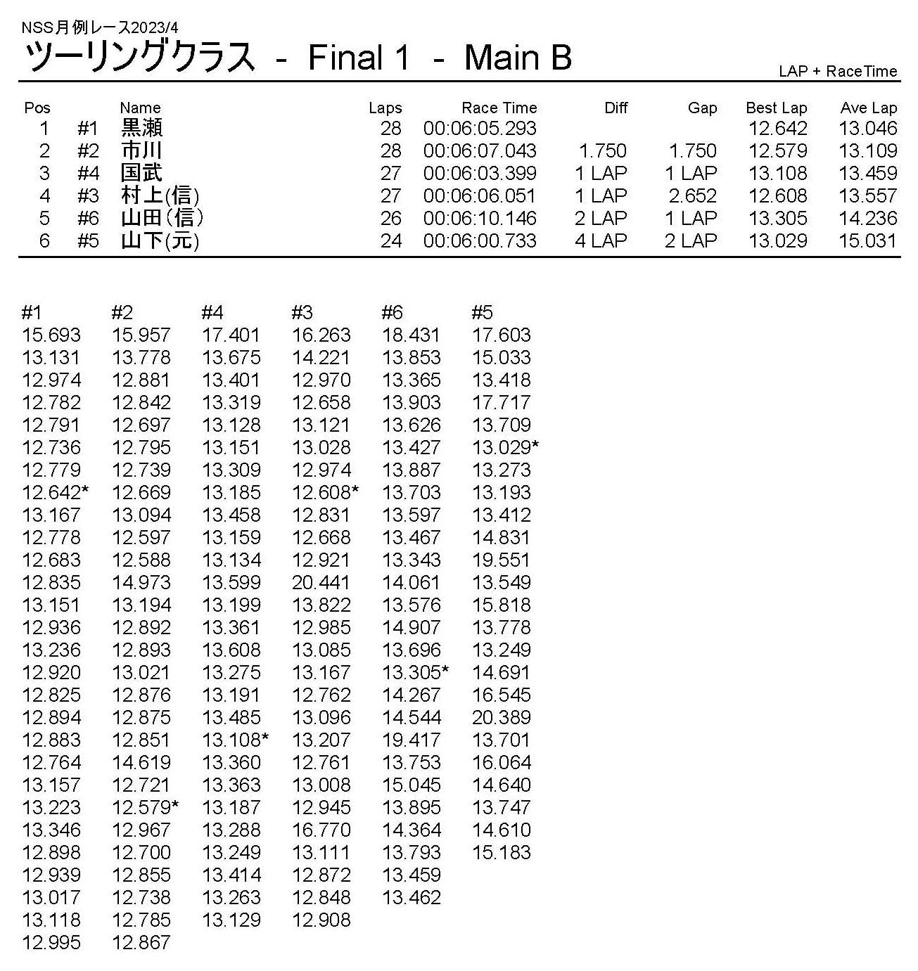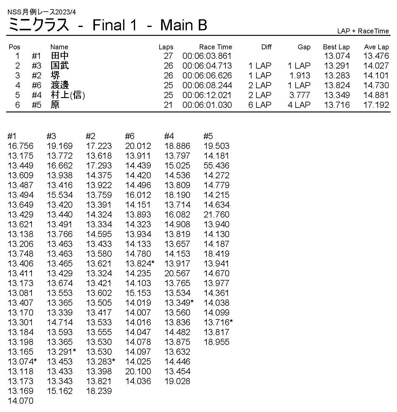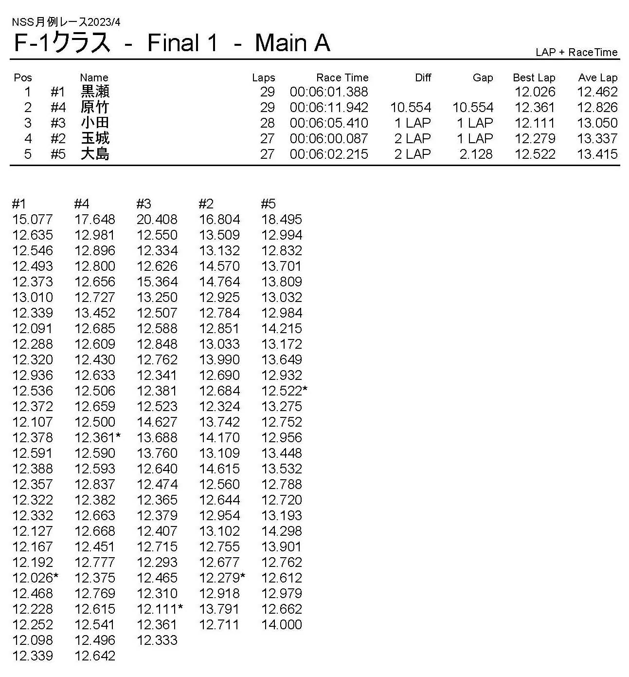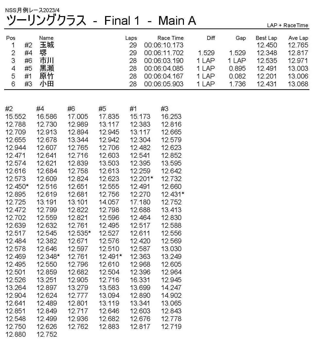 4月・月例レース結果・動画 公開日:2023年4月9日 レース結果 ミニクラス ミニクラスCメイン ミニクラスBメイン ミニクラスAメイン F-1クラスAメイン ツーリングクラス ツーリングクラスCメイン ツーリングクラスBメイン ツーリングクラスAメイン フォーミュラEクラス フォーミュラEクラスAメイン おまけ(予選リザルト) ミニクラス F-1クラス ツーリングクラス フォーミュラEクラス 関連記事 10月・月例レース結果&動画9月の月例レース結果&動画1月・月例レース結果&動画8月・月例レース結果・動画ラリークロス結果&動画-2024-02-25ラリークロスレース結果&動画-2023-10-22 投稿ナビゲーション 3月・月例レース結果・動画ラリークロスレース結果&動画 2023/4/23