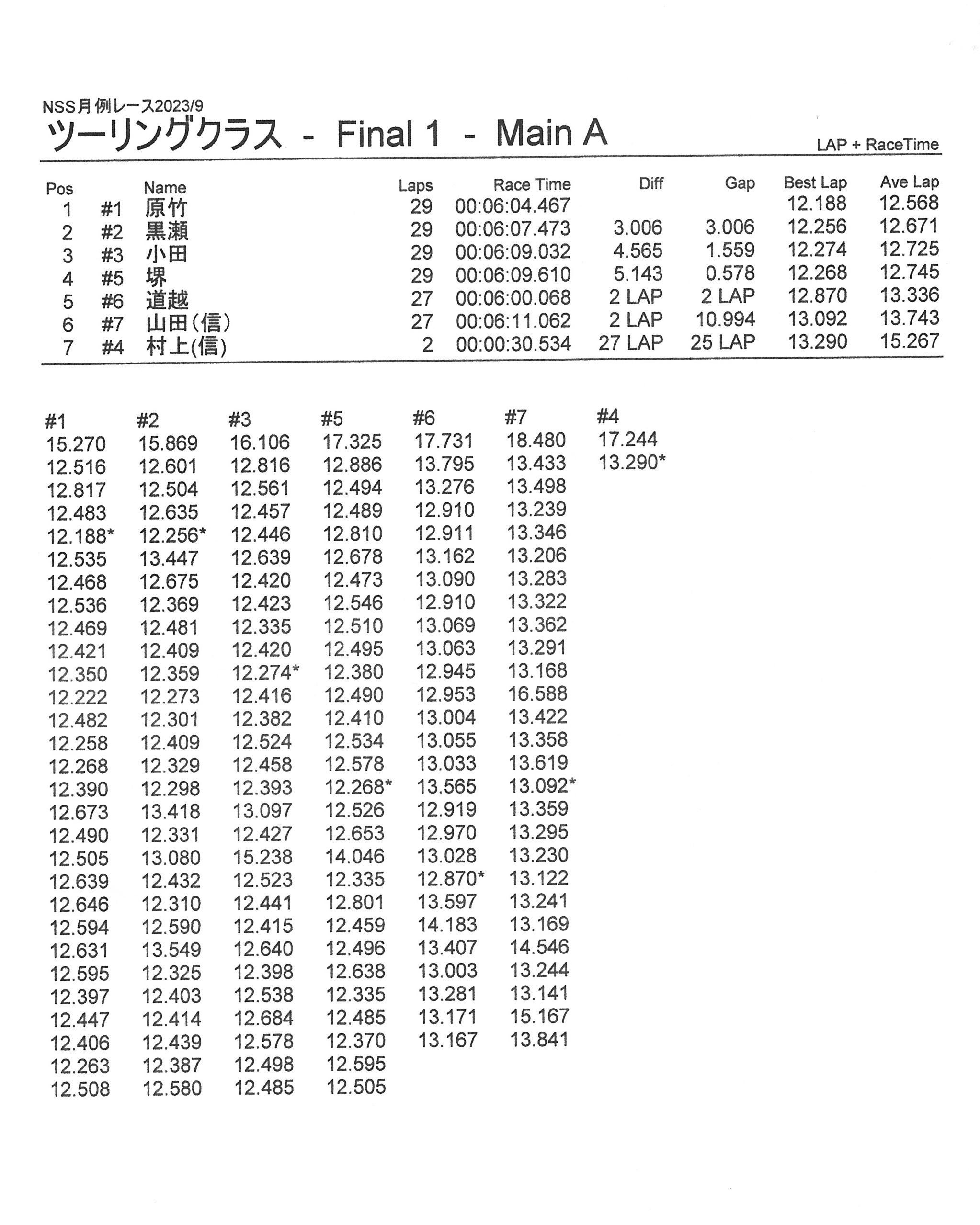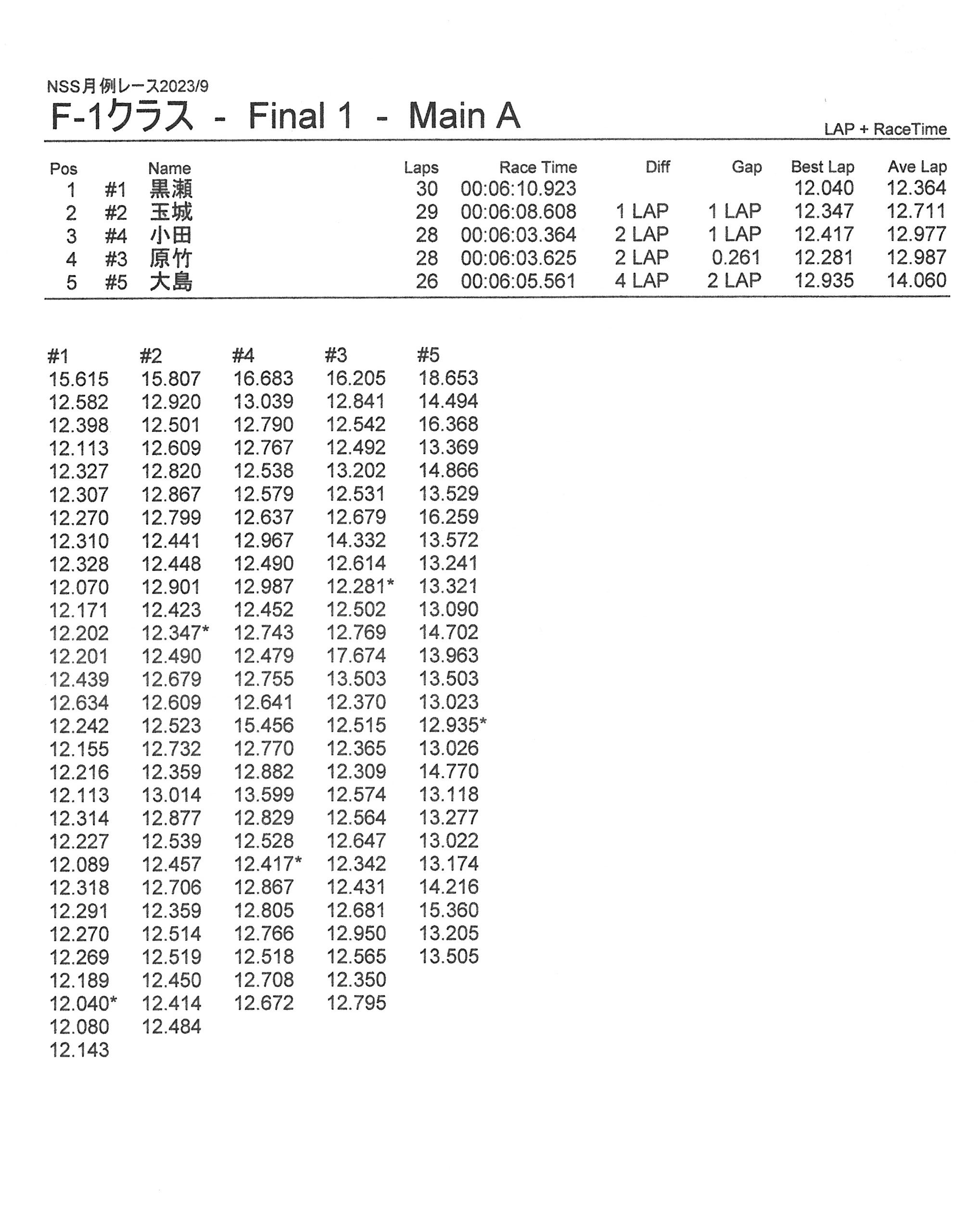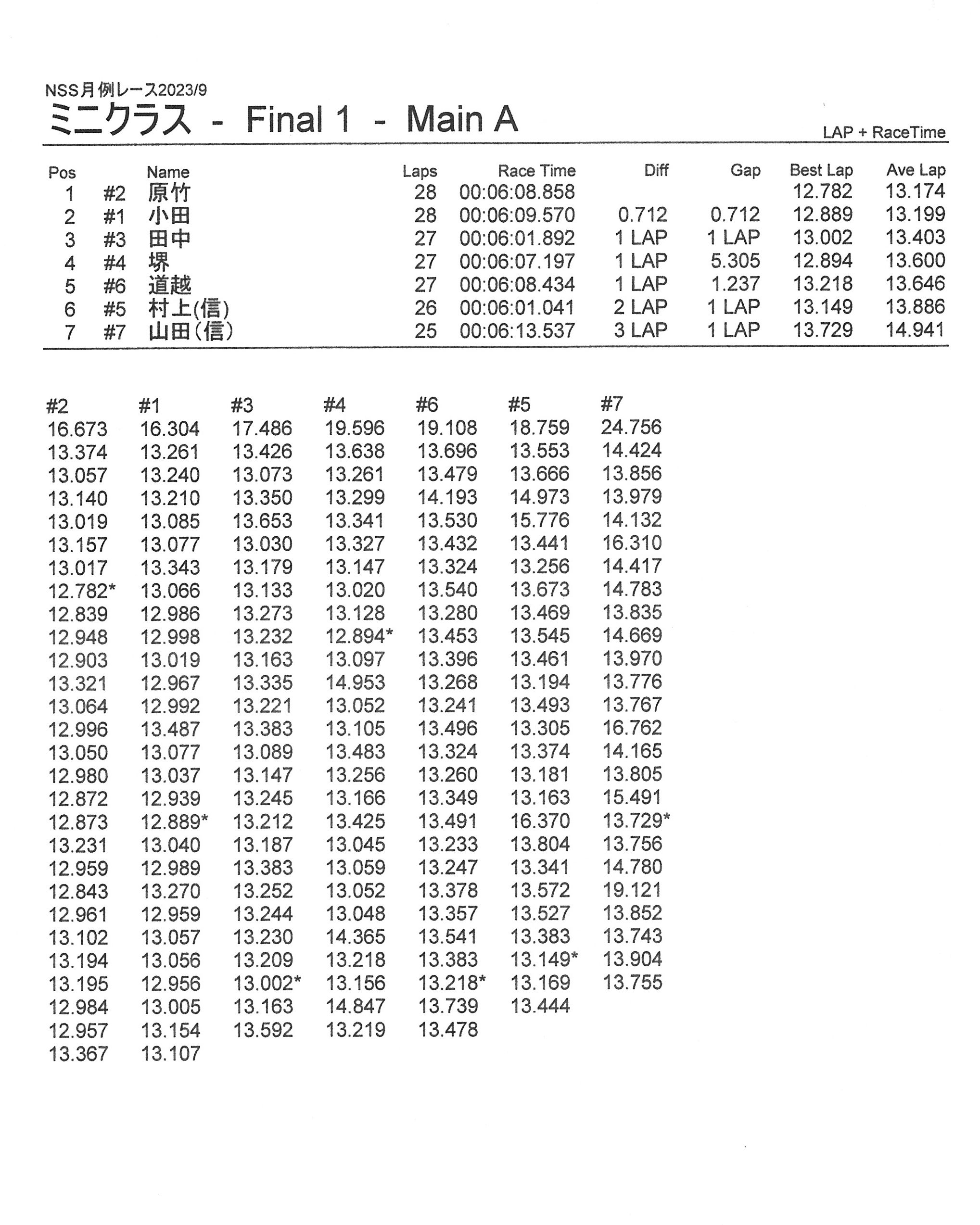 9月・月例レース結果 公開日:2023年9月11日 レース結果 ミニクラス ミニクラスAメイン F-1クラスAメイン F-1クラスAメイン ツーリングクラス ツーリングクラスAメイン フォーミュラEクラス フォーミュラEクラスAメイン 関連記事 2021年5月ミニ3時間耐久レース結果ラリークロスレース結果&動画 2022/10/2310月・月例レース結果&動画11月・月例レース結果&動画フォーミュラ・グランプリ 結果&動画12月の月例レースの結果 投稿ナビゲーション ラリークロスレース結果&動画-2023-8-2710月・月例レース結果