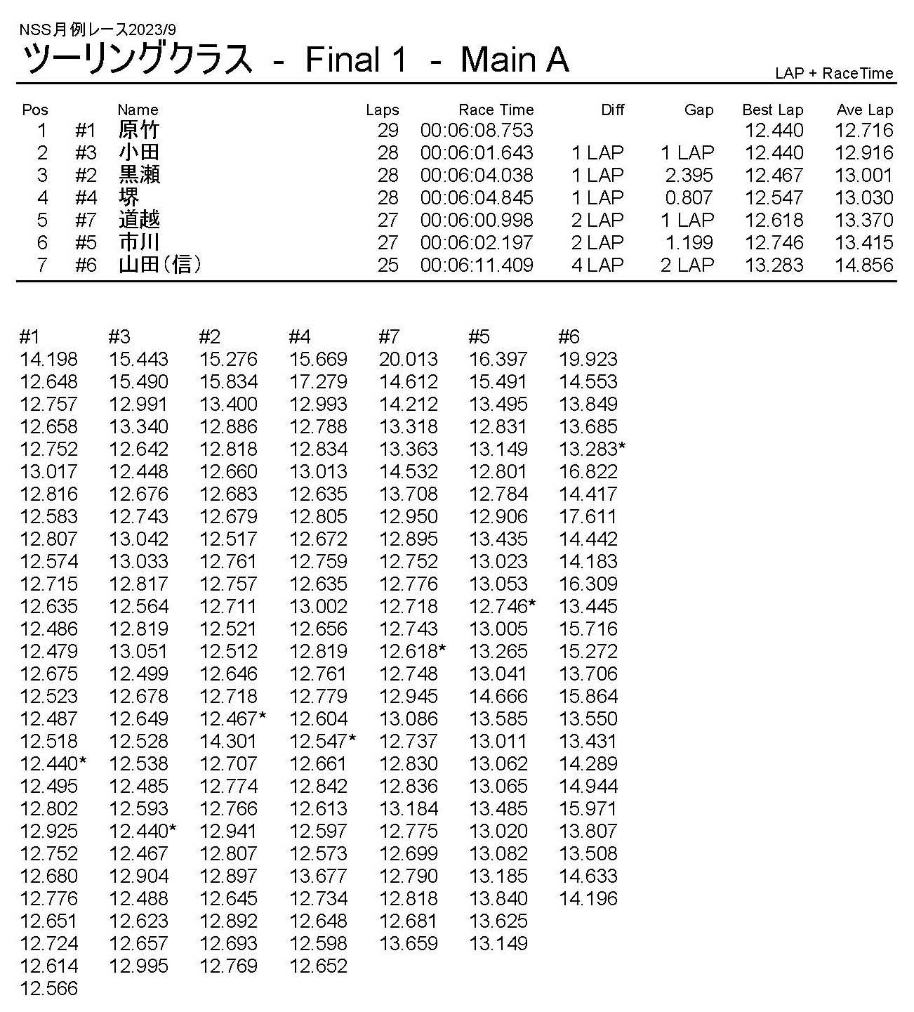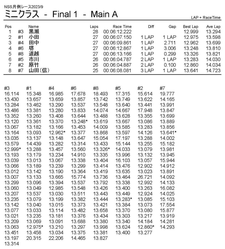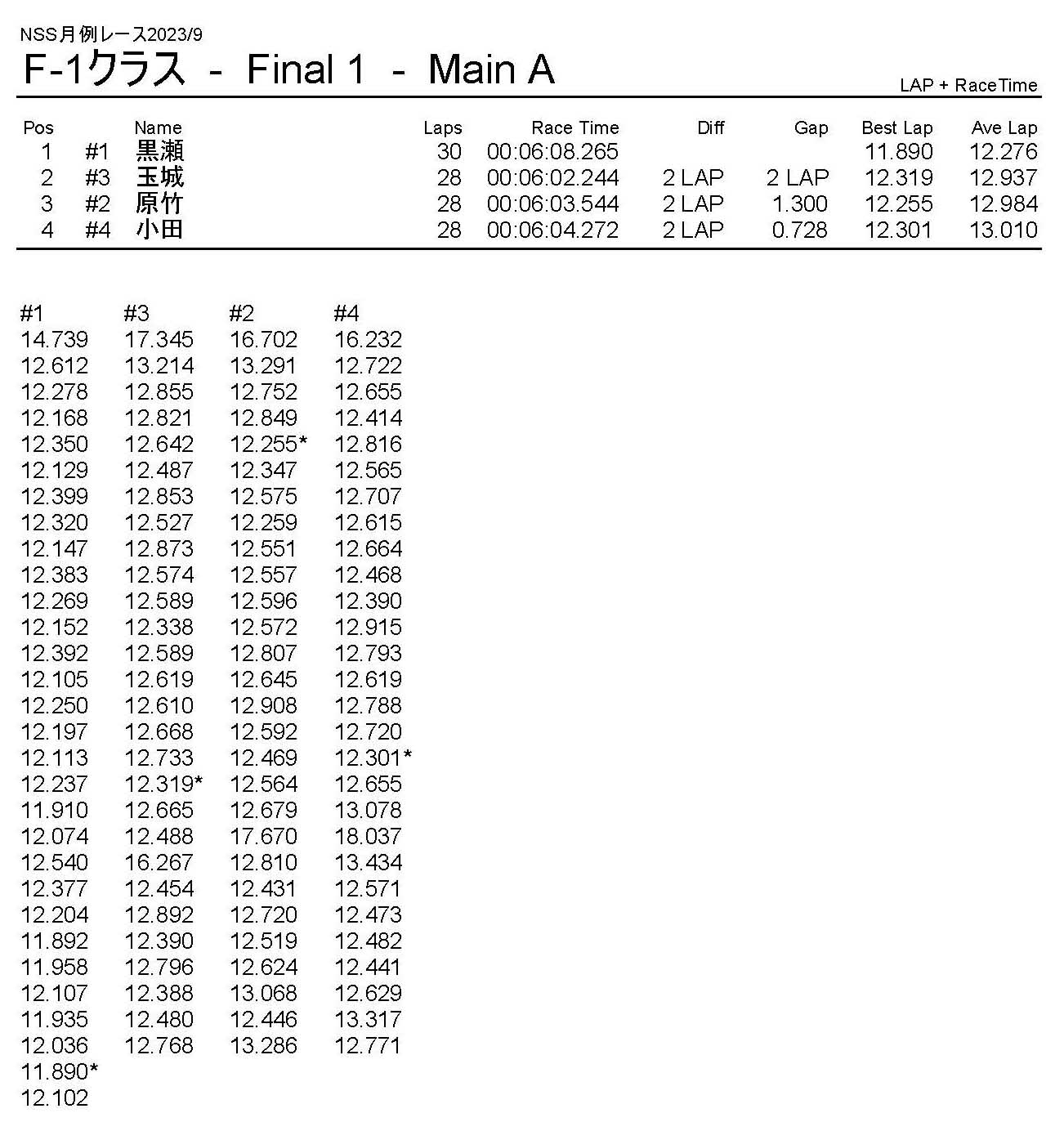 10月・月例レース結果 公開日:2023年10月1日 レース結果 ミニクラス ミニクラスAメイン F-1クラスAメイン ツーリングクラス ツーリングクラスAメイン フォーミュラEクラス フォーミュラEクラスAメイン おまけ(予選リザルト) ミニクラス F-1クラス ツーリングクラス フォーミュラEクラス 関連記事 2020年5月ミニ3時間耐久レース結果2021年11月ミニ3時間耐久レース結果ラリークロス結果&動画-2024-04-28ラリークロス結果 2025.04.292020年11月ミニ3時間耐久レース結果ラリークロス結果 2025.02.24 投稿ナビゲーション 9月・月例レース結果ラリークロスレース結果&動画-2023-10-22