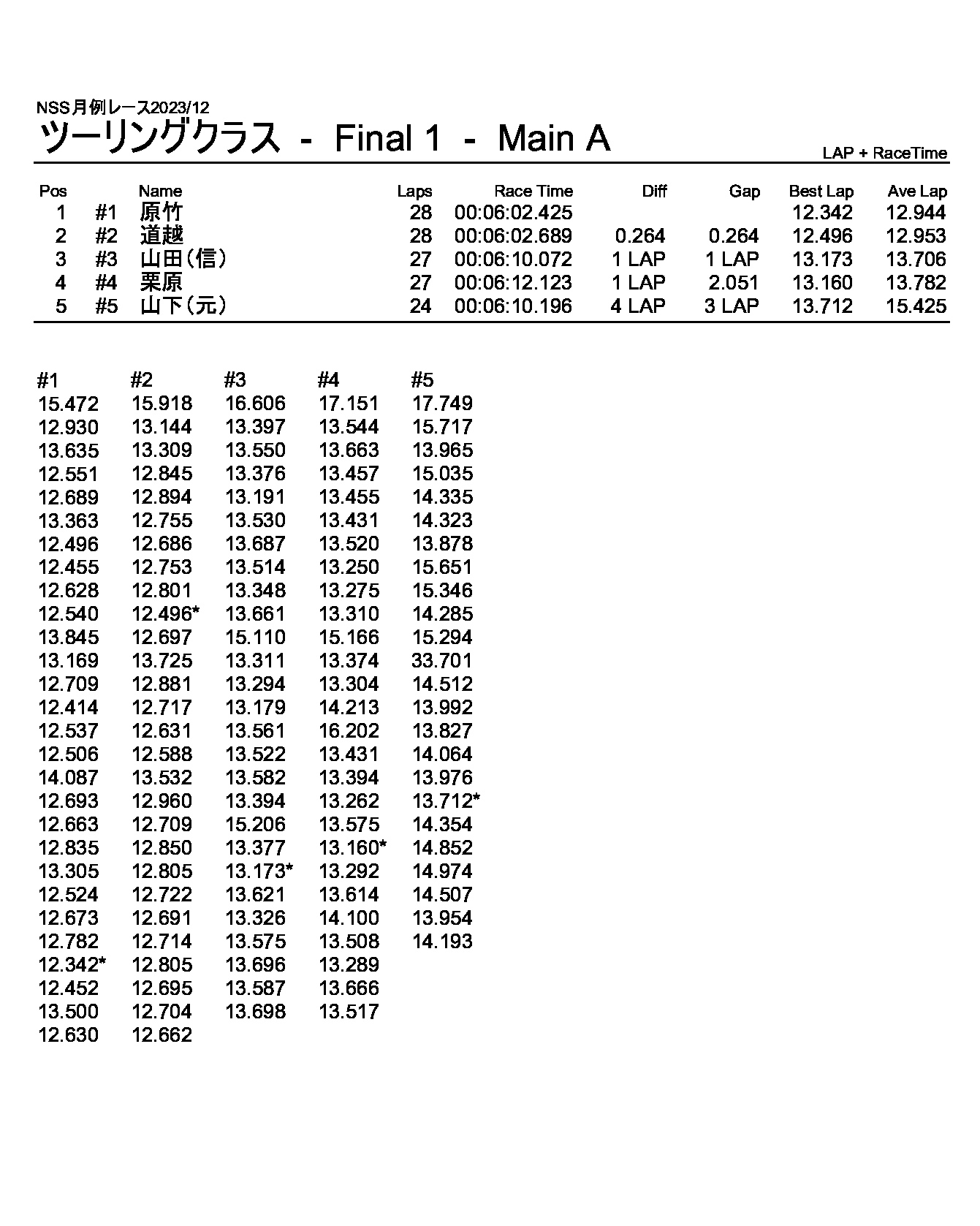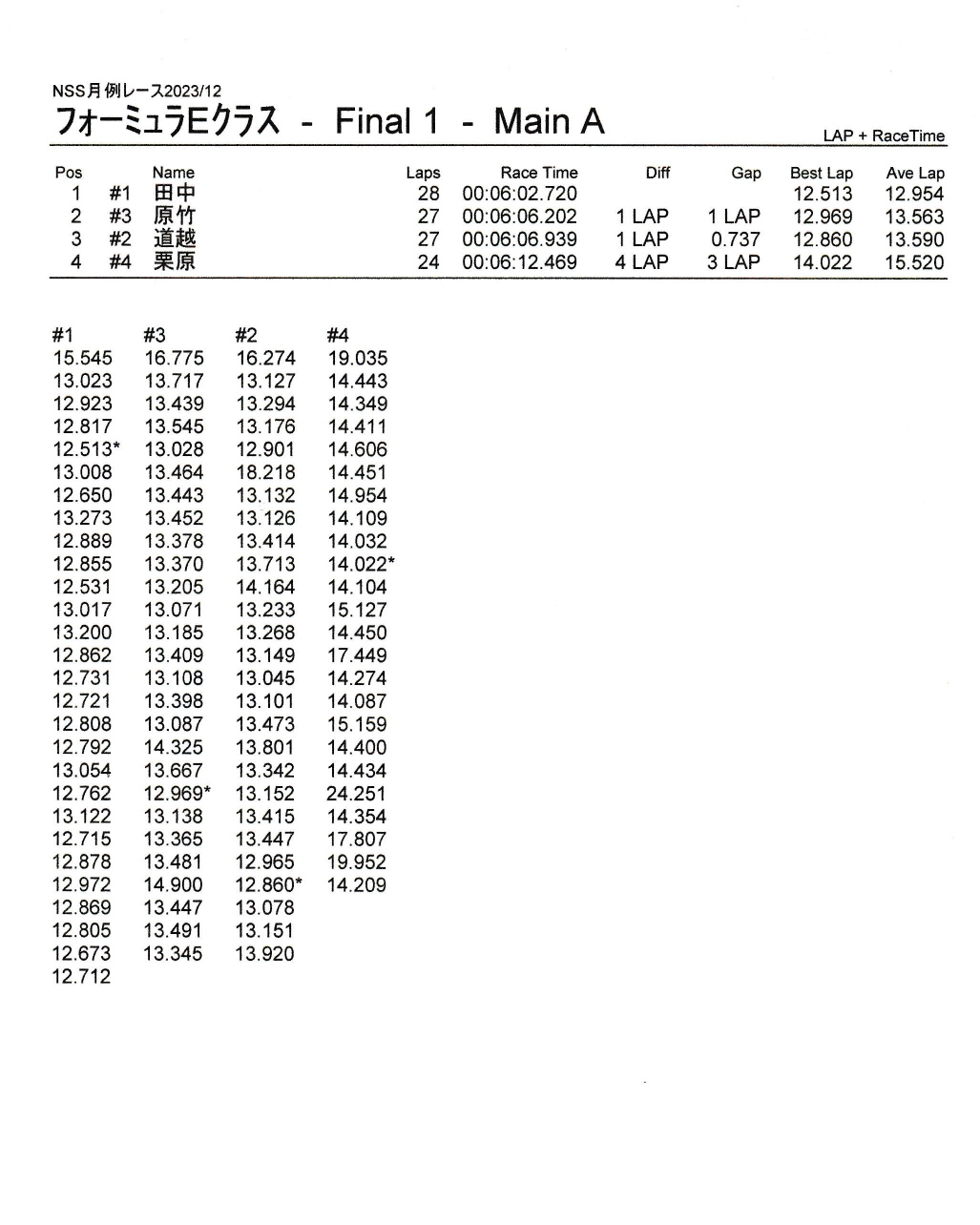 12月・月例レース結果 2023年12月10日 公開日:2023年12月11日 レース結果 ミニクラス ミニクラスAメイン F-1クラスAメイン F-1クラスAメイン ツーリングクラス ツーリングクラスBメイン ツーリングクラスAメイン フォーミュラEクラス フォーミュラEクラスAメイン チャレンジクラス チャレンジクラスAメイン 関連記事 2021年5月ミニ3時間耐久レース結果1月・月例レース結果&動画ラリークロス結果・動画5月の月例レース結果・動画 2020/5/10ラリークロスレース結果&動画 2022/2/27月例レース結果・動画 2025/04/13 投稿ナビゲーション ラリークロスレース結果&動画-2023-10-221月・月例レース結果