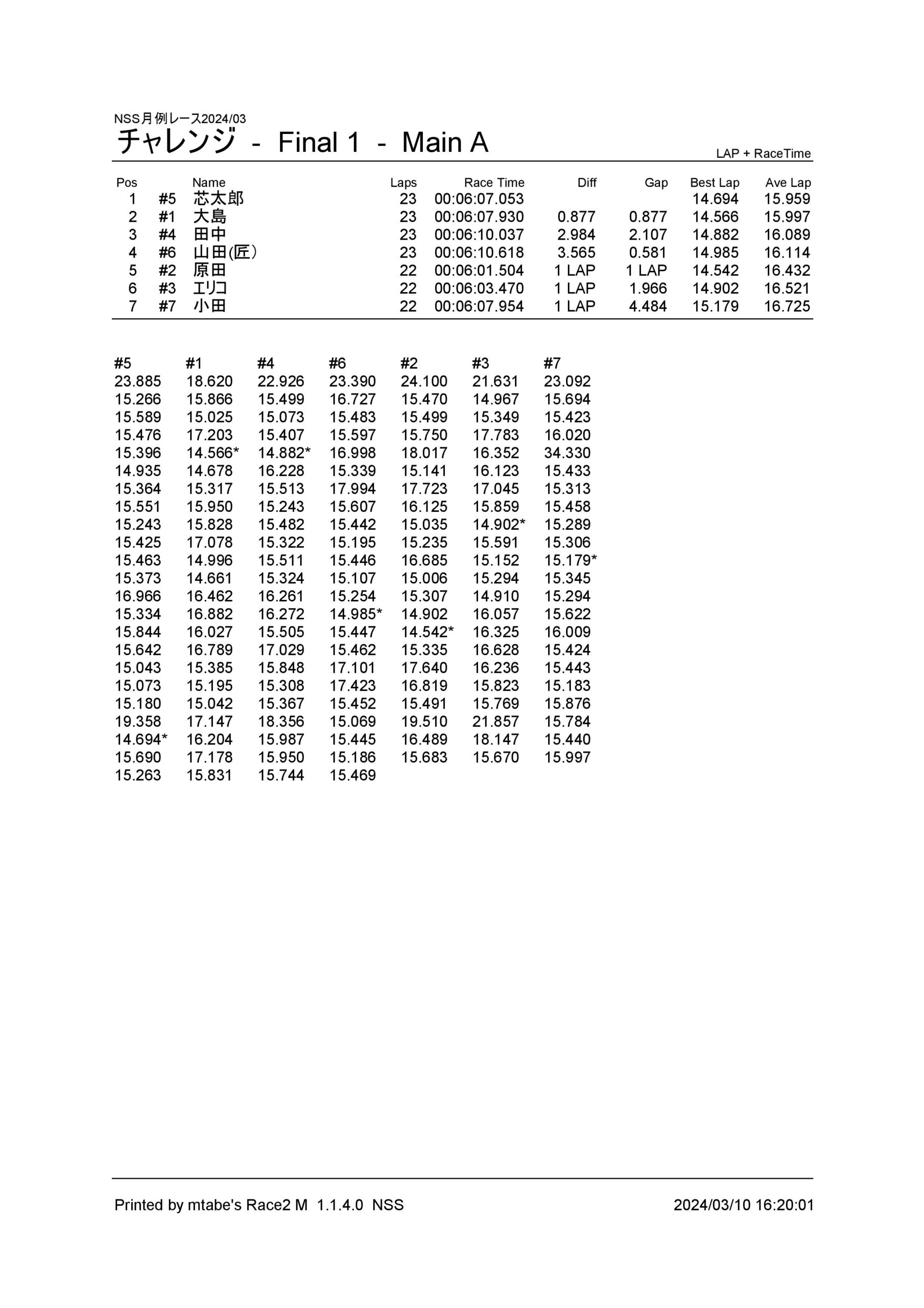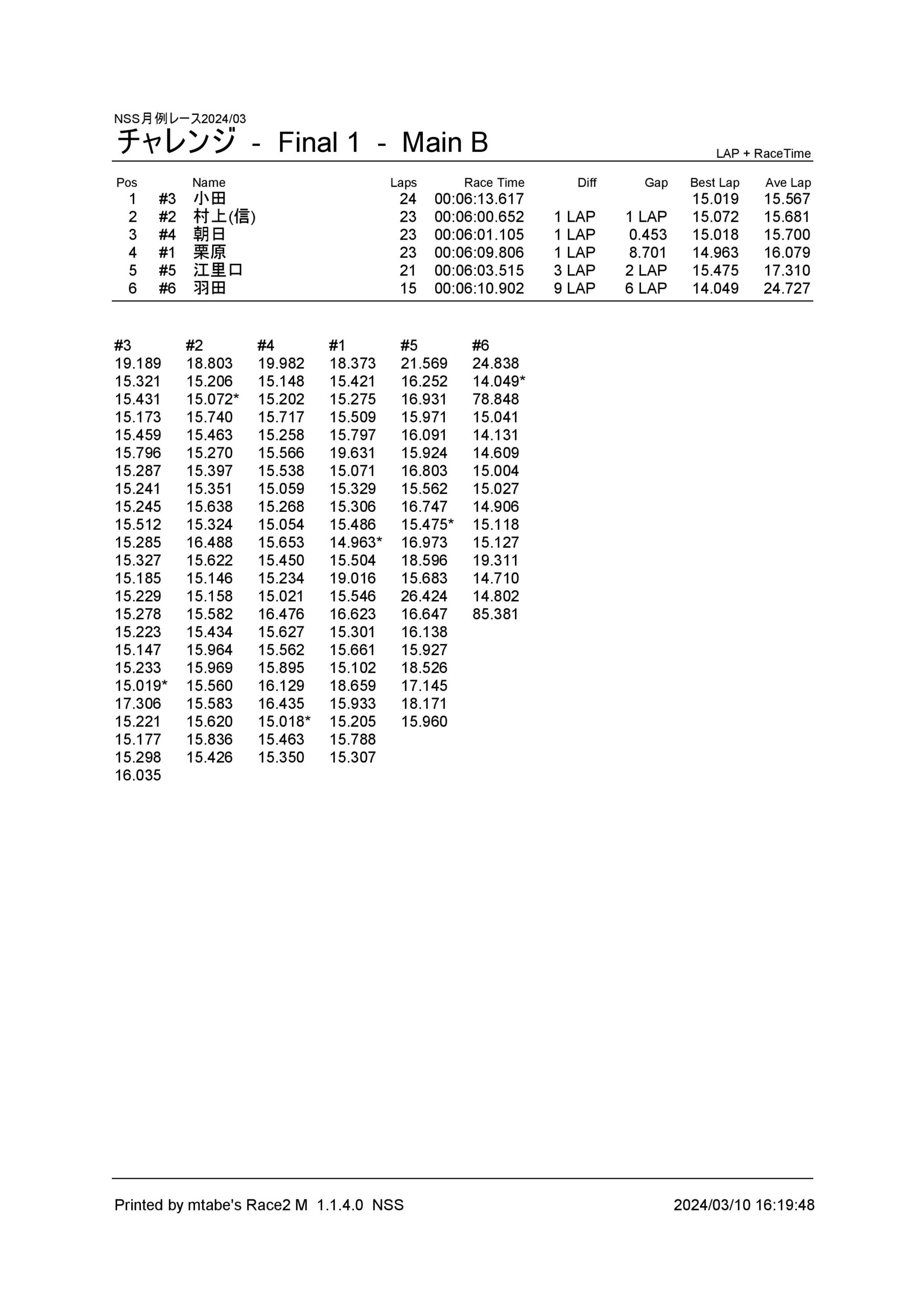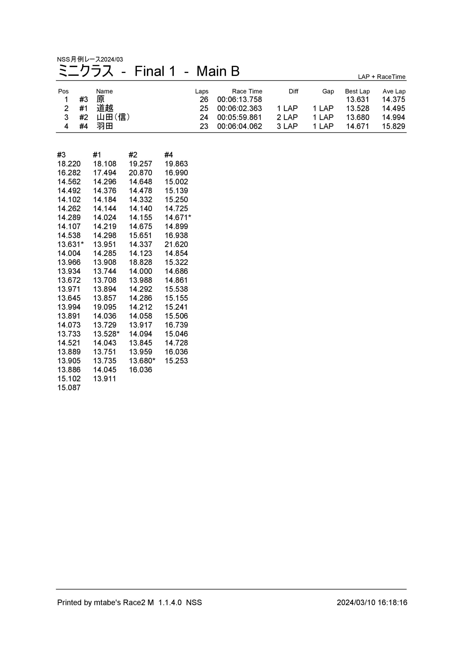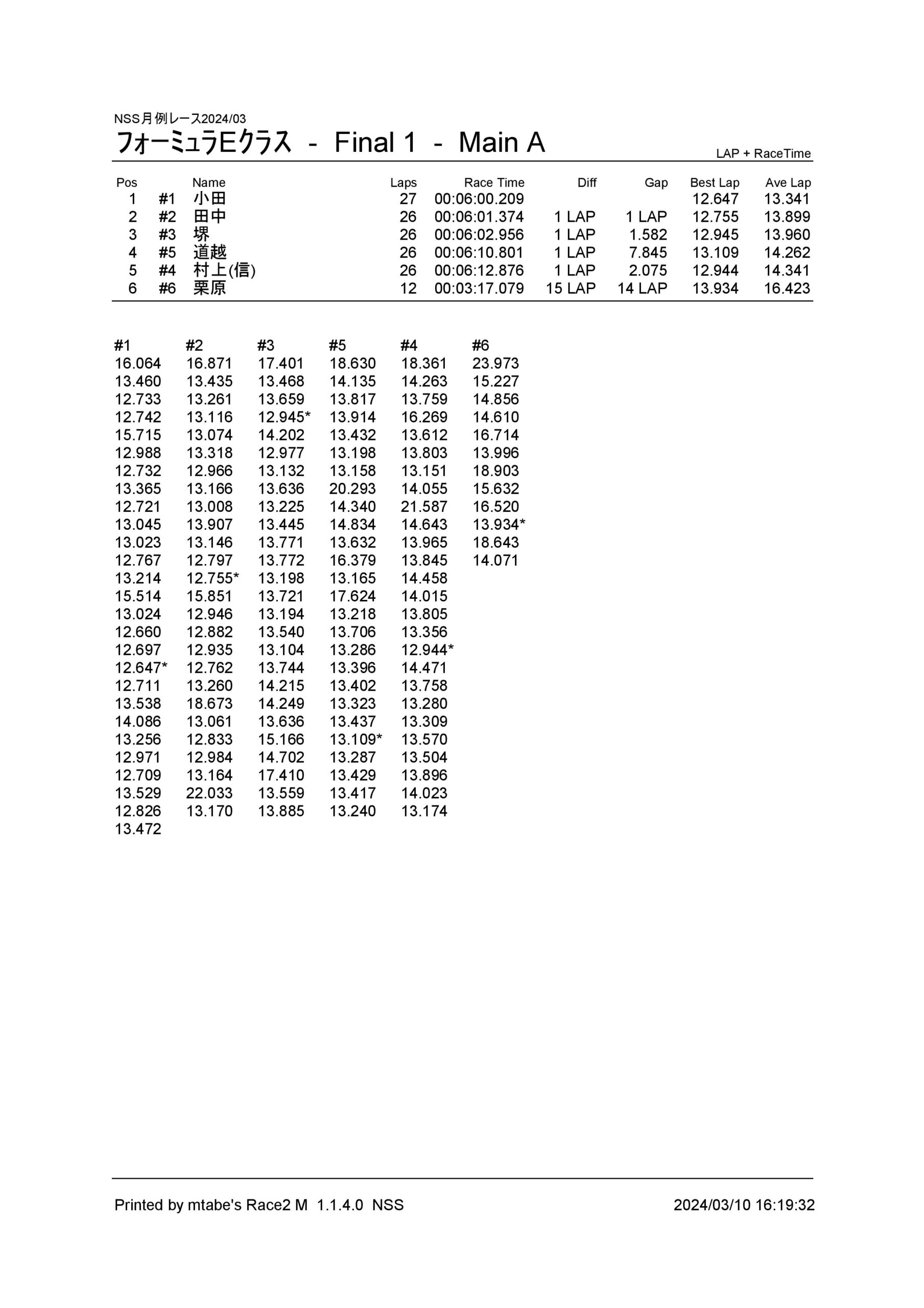 3月・月例レース結果 更新日:2024年3月11日 公開日:2024年3月10日 レース結果 ミニクラス ミニクラスBメイン ミニクラスAメイン F-1クラスAメイン F-1クラスAメイン ツーリングクラス ツーリングクラスBメイン 動画はありません。 ツーリングクラスAメイン フォーミュラEクラス フォーミュラEクラスAメイン チャレンジクラス チャレンジクラスBメイン チャレンジクラスAメイン 関連記事 ラリークロスレース結果&動画 2023/4/23ラリークロス結果・動画11月・月例レース結果&動画11月の月例レースの結果ラリークロスレース結果&動画 2022/10/235月・月例レース結果&動画 投稿ナビゲーション ラリークロス結果&動画-2024-02-25月例レース結果 ・動画 2024/04/14