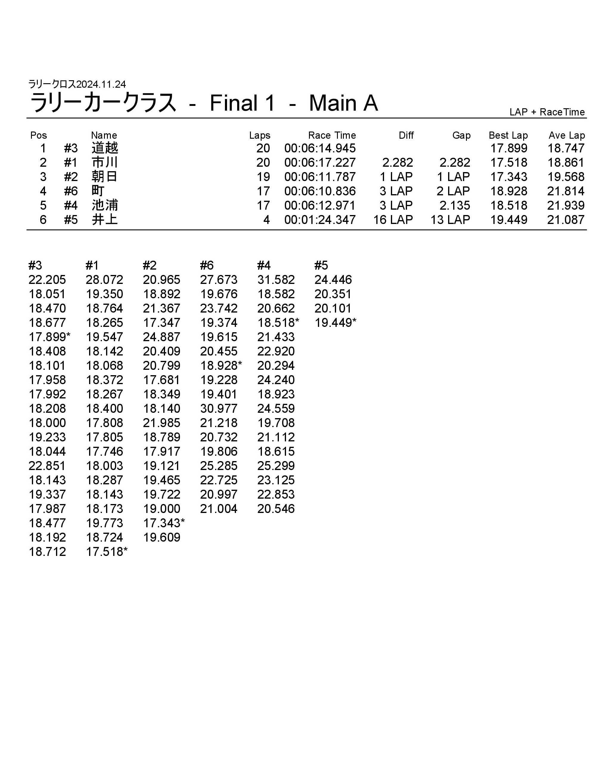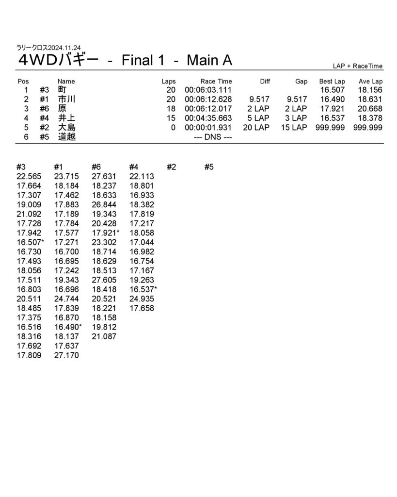 ラリークロス結果&動画-2024-11-24 更新日:2025年1月4日 公開日:2024年11月25日 レース結果 ラリークラス ラリークラスAメイン 2WDバギークラス 2WDバギークラスAメイン 4WDバギークラス 4WDバギークラスAメイン 関連記事 ラリークロスレースリザルト6月・月例レース結果&動画4月・月例レース結果&動画ラリークロス結果&動画-2025-01-03月例レース結果・動画 2025/01/137月・月例レース結果・動画 投稿ナビゲーション 月例レース結果・動画 2024/10/06月例レース結果・動画 2024/12/08