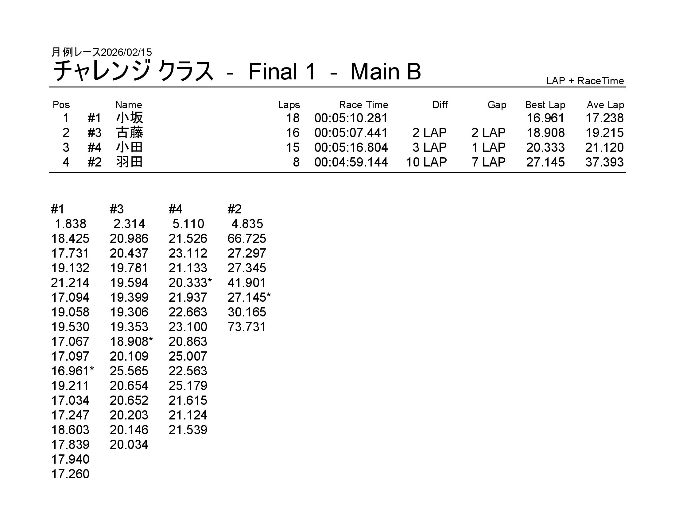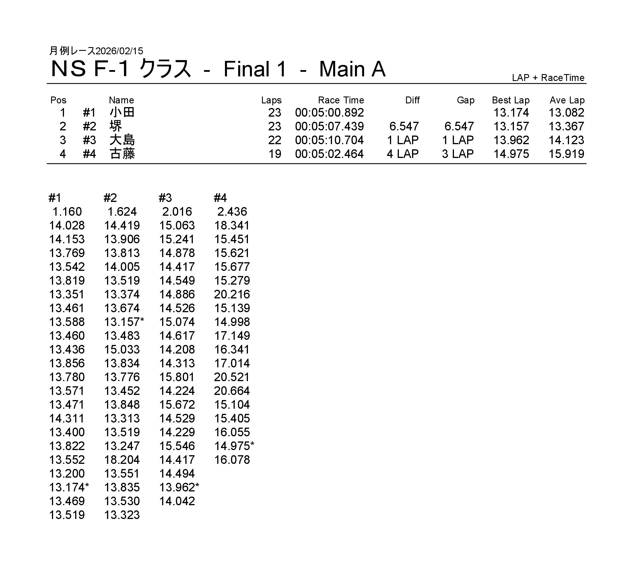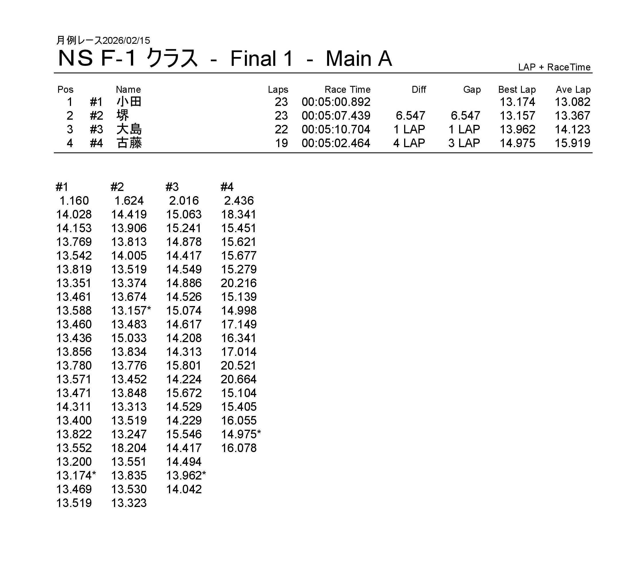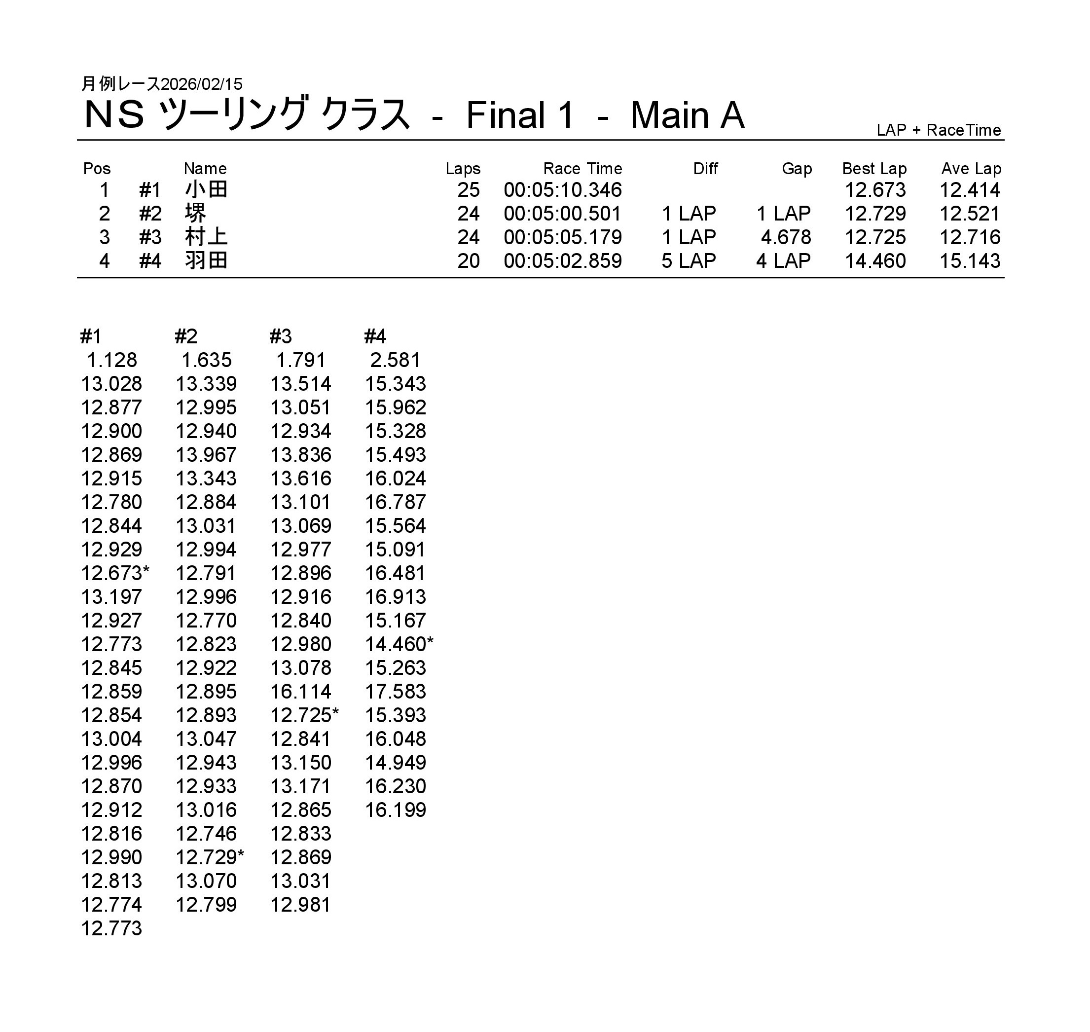 月例レース2026/02/15 公開日:2026年2月15日 レース結果 NSF-1クラス NSF-1クラスAメイン タミヤF1クラス タミヤF1クラスAメイン チャレンジクラス チャレンジクラスBメイン チャレンジクラスAメイン NSツーリングクラス NSツーリングクラスAメイン タミヤGTクラス タミヤGTクラスAメイン 関連記事 3月・月例レース結果&動画月例レース結果・動画 2025/01/1310月・月例レース結果&動画8月・月例レース結果&動画月例レース結果 ・動画 2024/04/14月例レース結果2025/05/18 投稿ナビゲーション NSS月例レース2026/1/3