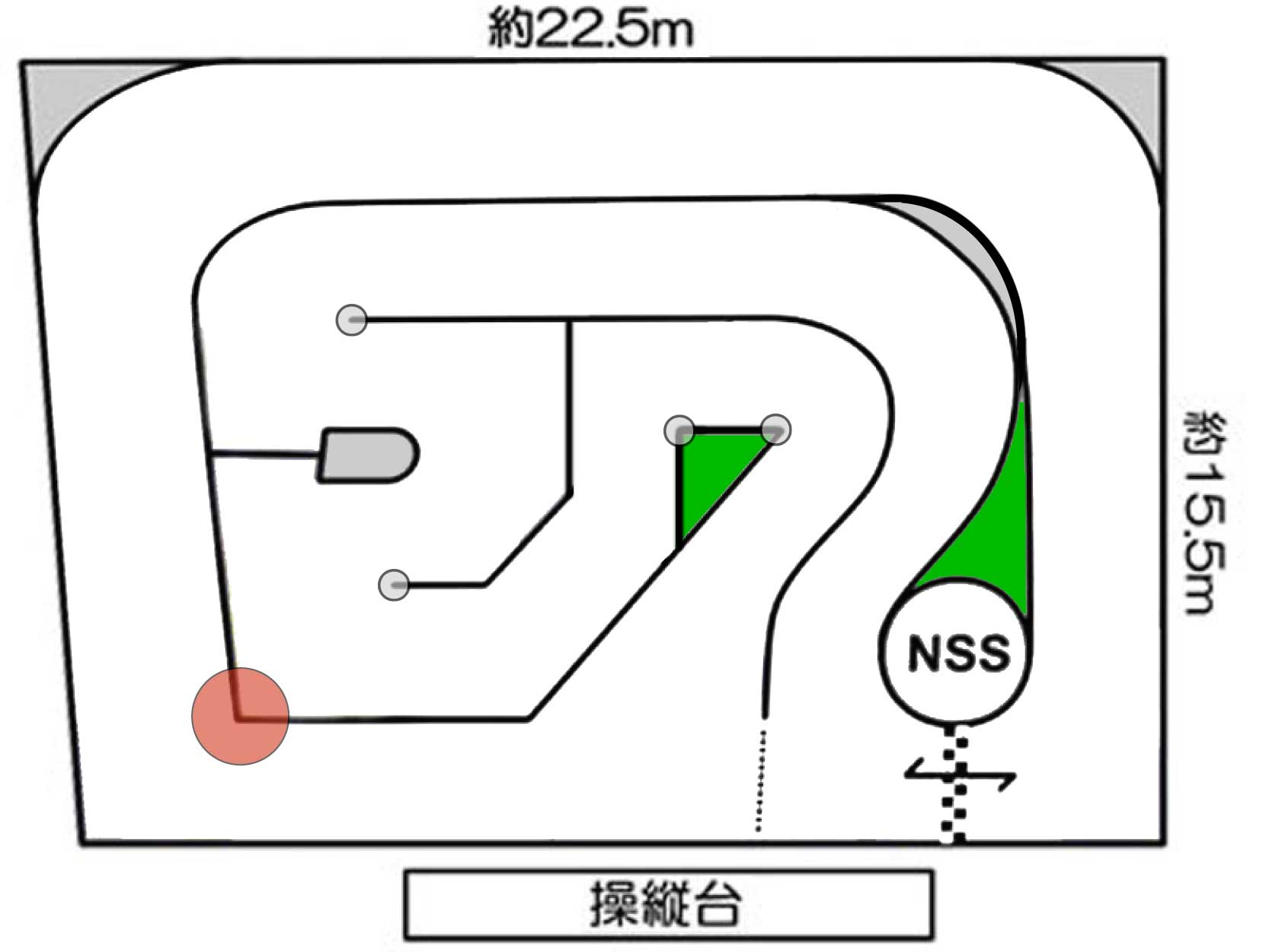 どうしても避けたい場合には下図の白い部分にマシンを止めると事故は避けられます。